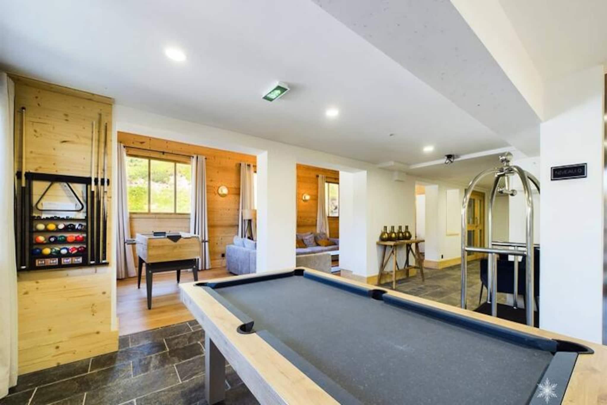 Højt over Tarentaise-dalen tilbyder dette elegante alpine tilflugtssted en harmonisk blanding af luksus og komfort i det berømte La Rosière 1850. Forestil dig at vågne op til en betagende udsigt over bjergene fra din private sydvendte terrasse, hvor den friske alpine luft sætter tonen for en dag med eventyr eller afslapning. Uanset om du er her for at stå på ski på de uberørte pister eller blot slappe af i rolige omgivelser, lover denne ejendom en uforglemmelig ferie. Boligens raffinerede indretning, kurateret af en indretningsarkitekt, komplementerer de fantastiske omgivelser og skaber en varm og indbydende atmosfære. \n\nDenne 4-værelses lejlighed med sovealkove, der strækker sig over to etager og er 87 m² stor, har plads til op til 8 gæster, inklusive 6 voksne. Hvert soveværelse er omhyggeligt designet til komfort med italienske møbler af høj kvalitet og eget badeværelse. Sovelkoven med køjesenge tilføjer et hyggeligt præg til de yngre gæster. Det fuldt udstyrede køkken kan prale af førsteklasses apparater, fra Miele til Smeg, hvilket sikrer ubesværet madlavning. Yderligere faciliteter såsom vaskemaskine, tørretumbler og sikker parkering forbedrer dit ophold, mens skiboksen og shuttlebusstoppestedet gør det nemt at komme til pisterne.\n\nDiamant des Cimes ligger kun 500 m fra skiløjperne og 300 m fra lokale butikker og tilbyder nem adgang til alt, hvad du behøver. Efter en dag med skiløb eller udforskning kan du slappe af i spa-området med sauna eller nyde et hyggeligt spil pool i loungen. Den nærliggende shuttlebus sikrer nem transport rundt i feriestedet, mens La Rosières charme og pulserende atmosfære giver uendelige muligheder for spisning, shopping og afterskiing.\n\nUanset om du søger spændende udendørs eventyr eller rolige øjeblikke i luksuriøse alpine omgivelser, leverer denne ejendom den perfekte balance. Book dit ophold i dag og oplev magien ved La Rosière 1850.