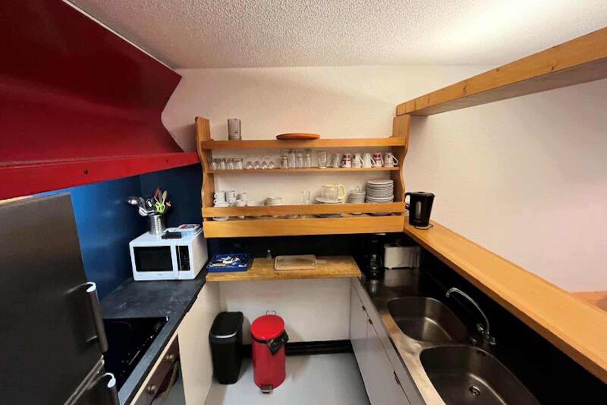 Højt over Tarentaise-dalen tilbyder denne charmerende 3-værelses lejlighed i Arc 1600 et varmt og indbydende tilflugtssted for dit næste alpine eventyr. Uanset om du besøger stedet i de sneklædte vintermåneder eller den pulserende sommersæson, placerer denne bolig dig i hjertet af begivenhederne, samtidig med at den tilbyder en rolig tilflugtssted med betagende udsigt over pisterne fra den sydvendte balkon. Forestil dig at nippe til din morgenkaffe, mens solen står op over bjergene, klar til en dag med udforskning og spænding. Denne lejlighed på anden sal er på 60 m² og har komfortabel plads til op til syv gæster. Stuen har to hyggelige enkeltsenge, mens det første soveværelse kan prale af en blød dobbeltseng til afslappende nætter. Det andet soveværelse er perfekt til familier med køjesenge og en ekstra overseng, der sikrer, at alle har deres egen plads. Det åbne køkken er fuldt udstyret med moderne apparater, herunder induktionskogeplade, ovn, mikrobølgeovn, opvaskemaskine og køleskab, hvilket gør madlavning til en leg. Et badeværelse med badekar og et separat toilet bidrager til bekvemmeligheden, mens et skiskab og et tv fuldender faciliteterne. Træd udenfor, og du vil befinder dig kun få øjeblikke fra feriestedets centrum, hvor butikker, restauranter og skiskole venter. Pisterne er lige uden for døren, hvilket gør det nemt at tage på de pudrede løjper eller nyde en afslappet vandretur i de varmere måneder. Familier vil sætte pris på den nærliggende børnehave, der sikrer, at selv de yngste gæster får en mindeværdig oplevelse. Uanset om du søger spændende skiløjper, naturskønne bjergvandringer eller blot et fredeligt tilflugtssted omgivet af natur, er denne lejlighed i Arc 1600 din perfekte base for en uforglemmelig ferie. Tag dine kære med, inklusive dine pelsede venner, og skab varige minder i hjertet af de franske alper.