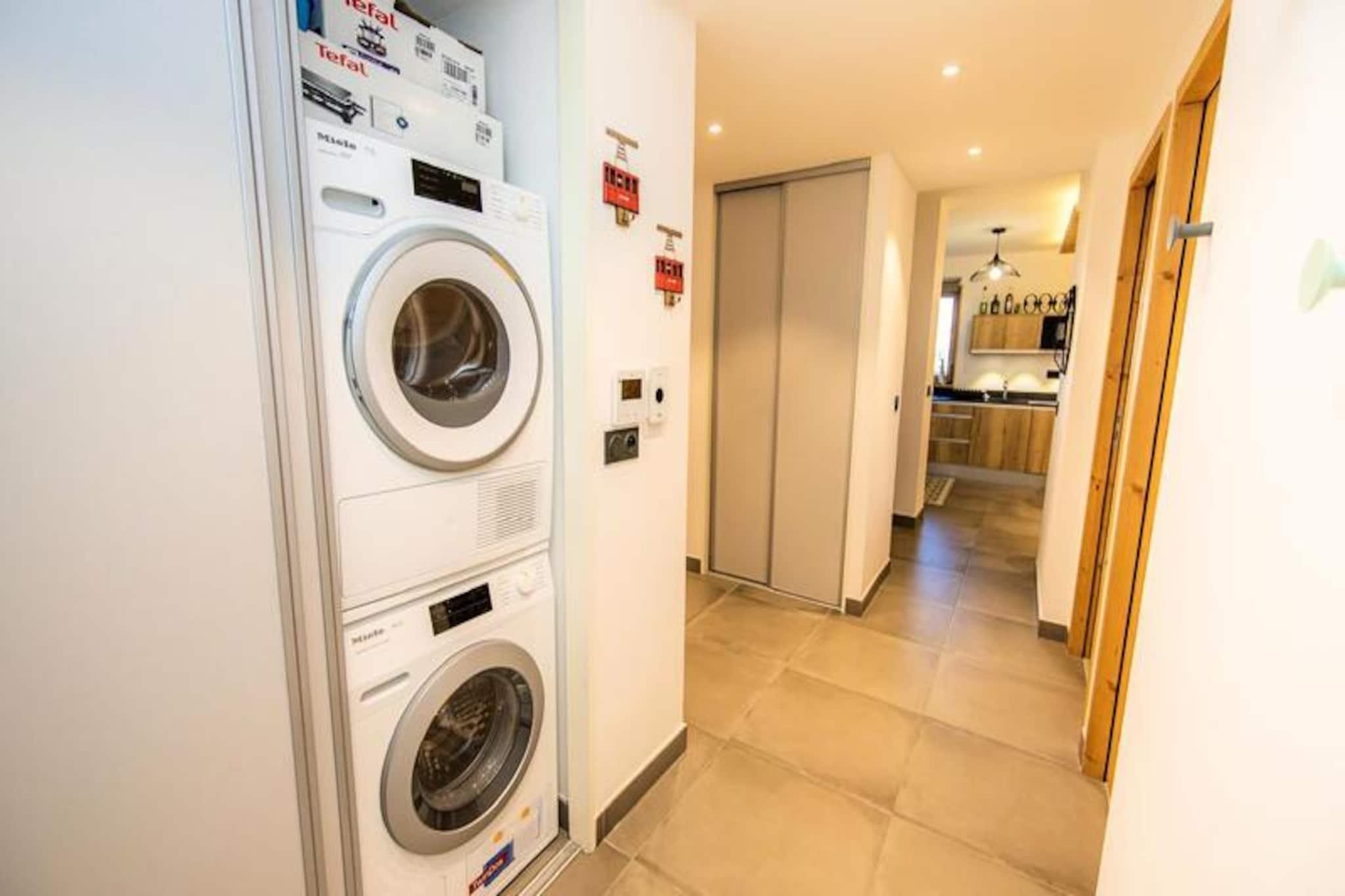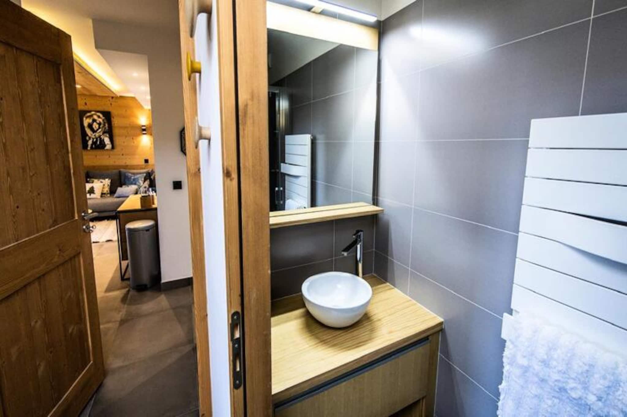I det pulserende hjerte af Villards-distriktet i Arc 1800 tilbyder dette luksuriøse alpine tilflugtssted en perfekt blanding af moderne komfort og bjergcharme. Kun 50 meter fra pisterne tilbyder boligen uovertruffen bekvemmelighed for skientusiaster, mens de nærliggende butikker og restauranter sikrer, at du altid er tæt på den livlige feriestedsatmosfære. Den vestvendte terrasse tilbyder en betagende udsigt over den ikoniske Pierra Menta, hvilket gør hvert øjeblik her til en fest for sanserne. Denne rummelige 4-værelses lejlighed på 75 m² er designet til nemt at rumme op til otte gæster. Den åbne opholdsstue har bløde sofaer, et fladskærms-tv og direkte adgang til terrassen, hvilket skaber et hyggeligt sted at slappe af efter en dag med alpine eventyr. Det fuldt udstyrede køkken kan prale af moderne apparater, herunder keramisk kogeplade, ovn, mikrobølgeovn, opvaskemaskine og et stort køleskab med fryser, hvilket gør det nemt at tilberede solide måltider. Sovepladserne omfatter tre veludstyrede soveværelser: to med store dobbeltsenge, hvoraf det ene har eget brusebad og terrasseadgang, og et tredje med køjesenge, perfekt til familier. Yderligere faciliteter inkluderer et badeværelse med badekar, et separat toilet og en vaskemaskine med tørretumbler for ekstra bekvemmelighed. Gæsterne kan nyde førsteklasses faciliteter såsom et opvarmet skirum, cykel- og barnevognsopbevaring samt et afslapningsområde med sauna, dampbad og fitnessrum. Ejendommen tilbyder også gratis Wi-Fi og overdækket parkering med en ladestation til elbiler. Under dit ophold vil du sætte pris på nærheden til shuttle-stoppestedet mellem feriestederne, hvilket gør det nemt at udforske det bredere Paradiski-område. Uanset om du er her for spændende vintersport eller rolige sommervandreture, lover denne ejendom en uforglemmelig alpin flugt. Med sin førsteklasses beliggenhed, moderne faciliteter og fantastiske udsigt er det den perfekte base for at skabe dyrebare minder i de franske alper.