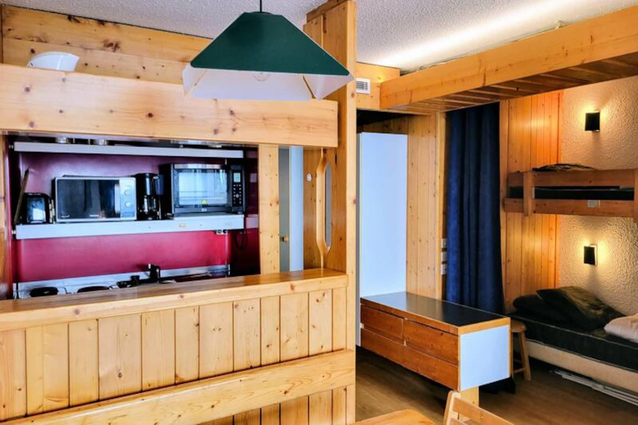 Højt over Tarentaise-dalen tilbyder denne indbydende lejlighed i Nova 3-residensen en perfekt blanding af alpin charme og moderne bekvemmeligheder. Beliggende i hjertet af Villards, Les Arcs 1800, kan den prale af ski-in/ski-out-adgang, hvilket gør den til et ideelt valg for vintersportsentusiaster. Uanset om du kigger på grantræerne fra de nordøstvendte vinduer eller nyder de betagende solnedgange i dalen fra den sydvestvendte balkon, føles hvert øjeblik her som et tilflugtssted i naturens skønhed. Residensen er bekvemt placeret i nærheden af ??butikker og shuttle-stoppesteder, hvilket sikrer nem adgang til alt, hvad feriestedet har at byde på. \n\nLejligheden er designet til op til seks gæster og har en hyggelig stue med to sovesofaer, et kahytområde med køjesenge og et separat soveværelse med to enkeltsenge. Det fuldt udstyrede køkken inkluderer elektriske kogeplader, mikrobølgeovn, miniovn, køleskab, opvaskemaskine og essentielle apparater som kaffemaskine og brødrister, så du kan tilberede solide måltider efter en dag på pisterne. Badeværelset og det separate toilet bidrager til komforten, mens miljøvenligt sengetøj og rengøringsservice er tilgængelig mod et ekstra gebyr. Gratis Wi-Fi sikrer, at du forbliver forbundet, og den overdækkede parkering, der er inkluderet i lejeprisen, gør dit ophold endnu mere behageligt. \n\nUd over boligen tilbyder Les Arcs 1800 en pulserende blanding af aktiviteter året rundt. Om vinteren kan du udforske det vidtstrakte Paradiski-område, der er kendt for sine pister i verdensklasse og fantastiske alpine udsigter. Sommeren forvandler regionen til et paradis for vandrere, cyklister og naturelskere med stier, der snor sig gennem frodige landskaber, og muligheder for paragliding over dalen. Det nærliggende indkøbscenter, restauranter og afterski-muligheder sikrer, at afslapning og underholdning altid er inden for rækkevidde. \n\nUanset om du søger spændende eventyr eller fredelige øjeblikke omgivet af natur, er denne lejlighed den perfekte base for at skabe uforglemmelige minder i de franske alper.