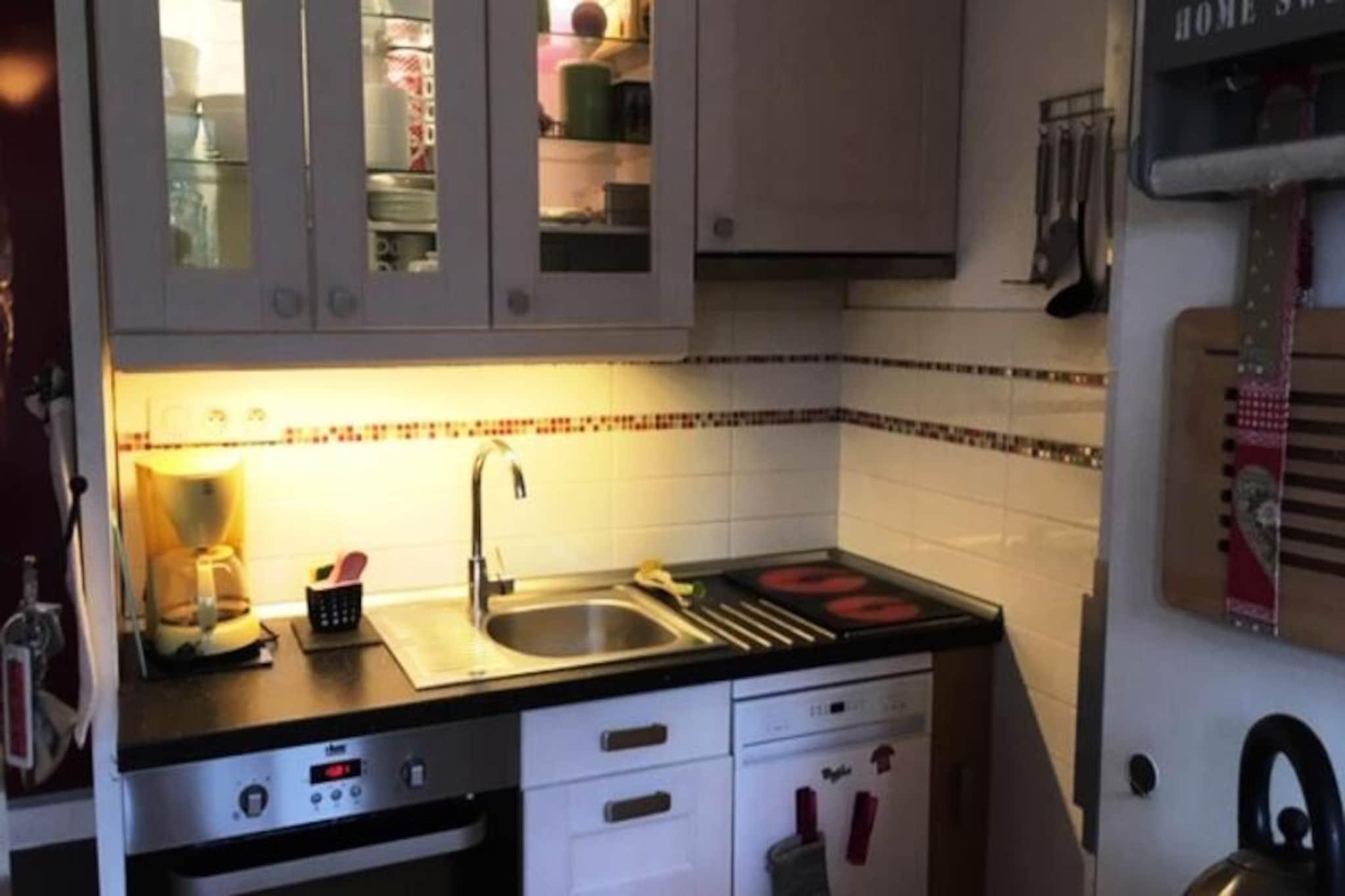 Højt over den travle dal tilbyder denne charmerende duplexlejlighed i Aiguille Grive 3-residensen et roligt alpint tilflugtssted med direkte adgang til pisterne fra 5. sal. Forestil dig at vågne op til det betagende syn af Mont Blanc fra din østvendte balkon, hvor den friske bjergluft og naturens fredelige lyd sætter tonen for din dag. Uanset om du er her for spændende vintersport eller rolige sommervandreture, lover denne beliggenhed et uforglemmeligt ophold i hjertet af Alperne. Den nyrenoverede duplex på 38 m² har komfortabel plads til op til seks gæster, hvilket gør den ideel til familier eller små grupper. Stuen har en hyggelig sovesofa og en udtræksseng, suppleret med et fladskærms-tv til afslappede aftener. Ovenpå tilbyder mezzaninen en sovealkove med køjesenge og et delvist lukket soveværelse med to enkeltsenge, der giver både privatliv og fleksibilitet. Det veludstyrede køkken har keramiske kogeplader, køleskab, opvaskemaskine og alt det nødvendige til at tilberede solide måltider efter en dag med eventyr. Med et badeværelse ovenpå, et separat toilet i stueetagen og gratis Wi-Fi er hver eneste detalje tænkt over for din komfort. Ejendommen har en bekvem beliggenhed og tilbyder adgang til shuttlebusser mellem feriestederne fra Charmettoger, mens parkeringsmulighederne inkluderer overdækkede og overdækkede parkeringspladser i nærheden. En købmand i ejendommen sikrer, at du har alt, hvad du behøver, lige ved hånden. Om vinteren kan du stå på ski direkte ud på pisterne, og om sommeren kan du udforske de frodige stier og panoramaudsigten over de omkringliggende tinder. Mont Blancs charme og den pulserende alpine atmosfære gør denne lejlighed til et perfekt valg til din næste bjergferie.
