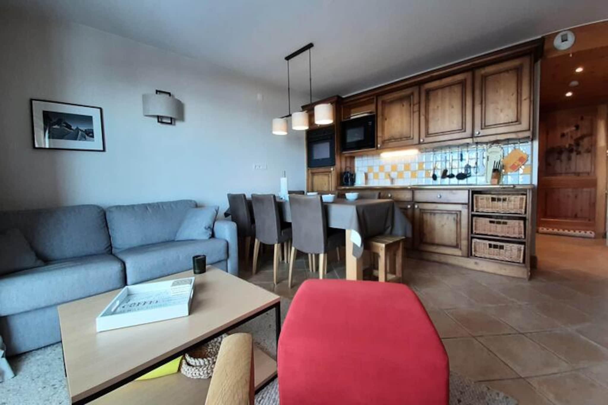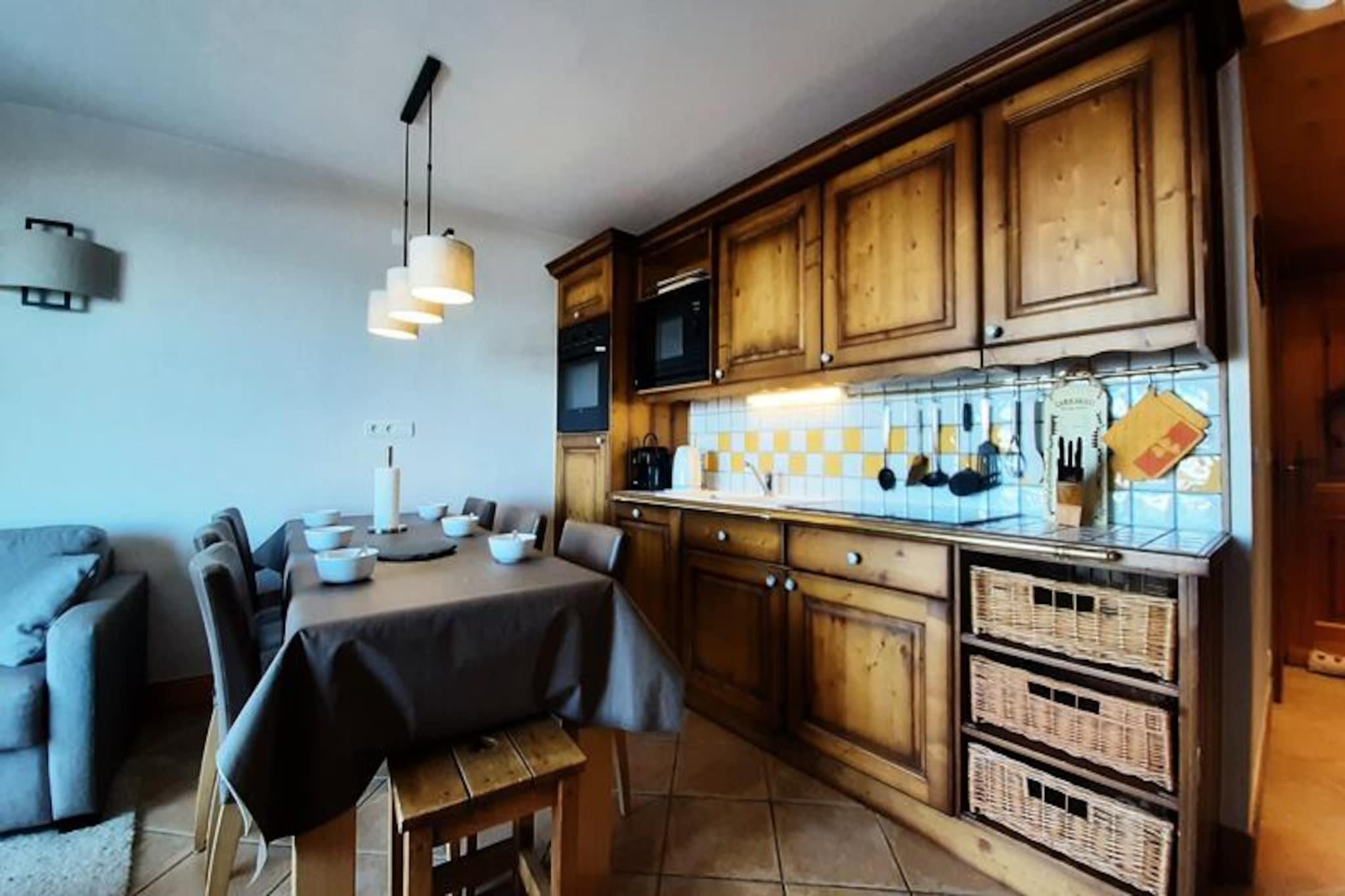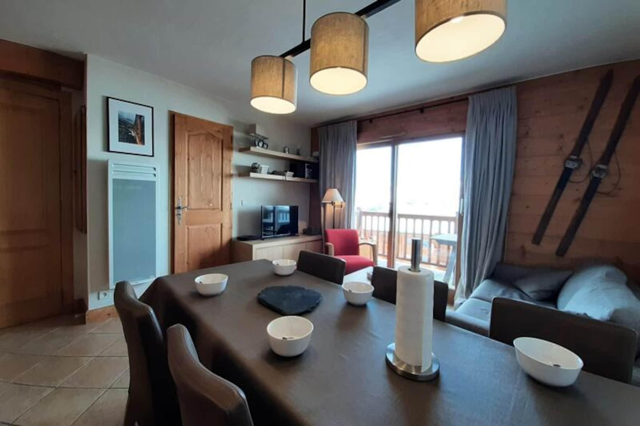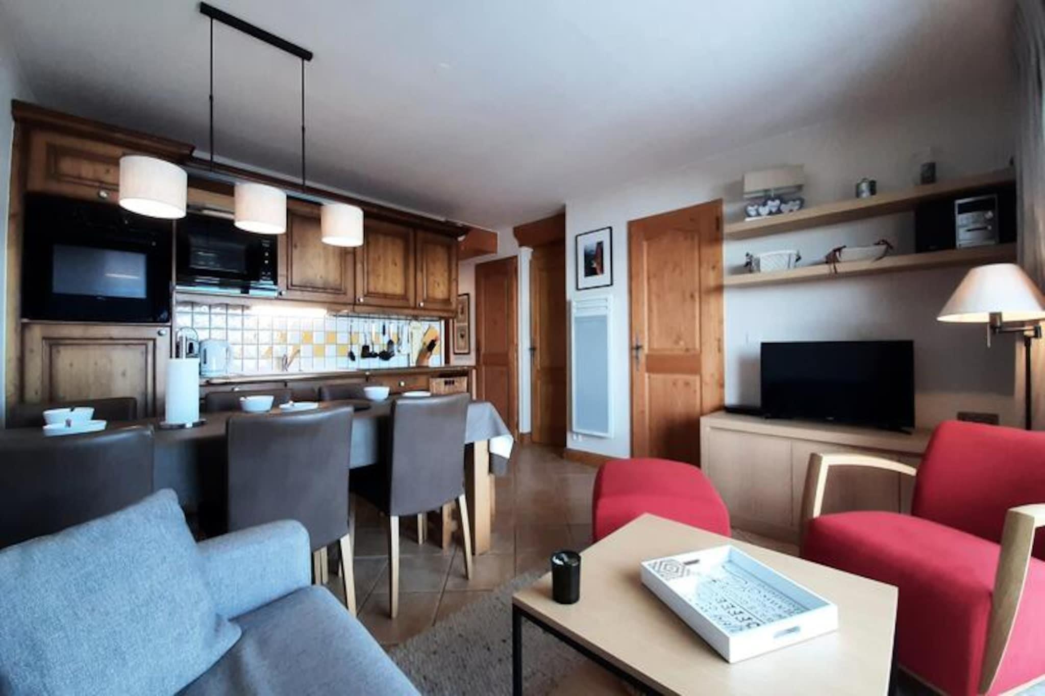 Forestil dig at vågne op til den friske bjergluft og træde ud på din private sydvestvendte balkon, hvor den betagende udsigt over dalen og pisterne byder dig velkommen hver morgen. Denne charmerende 3-værelses lejlighed, beliggende i St. Bernard-residensen, tilbyder et hyggeligt alpint tilflugtssted, perfekt til familier eller små grupper, der søger både komfort og bekvemmelighed. Med sin førsteklasses beliggenhed ved foden af ??pisterne begynder dine skiløbseventyr i det øjeblik, du træder udenfor. Residensen giver også adgang til en indendørs swimmingpool, der sikrer afslapning efter en aktiv dag i bjergene. Indenfor er lejligheden omhyggeligt designet til at rumme op til seks gæster. Opholds- og spisestuen har en komfortabel 140 cm sovesofa og et tv, hvilket skaber et varmt og indbydende rum at slappe af. Soveværelset kan prale af en blød dobbeltseng (160 cm) og et eget brusebad, mens et andet soveværelse tilbyder en dobbeltseng (160 cm). Det fuldt udstyrede køkken inkluderer moderne apparater såsom induktionskogeplader, ovn, mikrobølgeovn, køleskab, opvaskemaskine og meget mere - alt hvad du behøver for at tilberede solide måltider efter en dag på pisterne. Yderligere faciliteter inkluderer et skirum, overdækket parkering og sengelinned for din bekvemmelighed. Ud over boligen er det omkringliggende område et paradis for friluftsentusiaster. Uanset om du står på ski om vinteren eller udforsker naturskønne stier om sommeren, byder beliggenheden på uendelige muligheder for eventyr. Den nærliggende Dahu-svævebane giver nem adgang til shuttle-service mellem feriestederne, hvilket gør det nemt at udforske den bredere region. Med sin blanding af moderne komfort og alpin charme er denne lejlighed den perfekte base for at skabe uforglemmelige bjergminder.