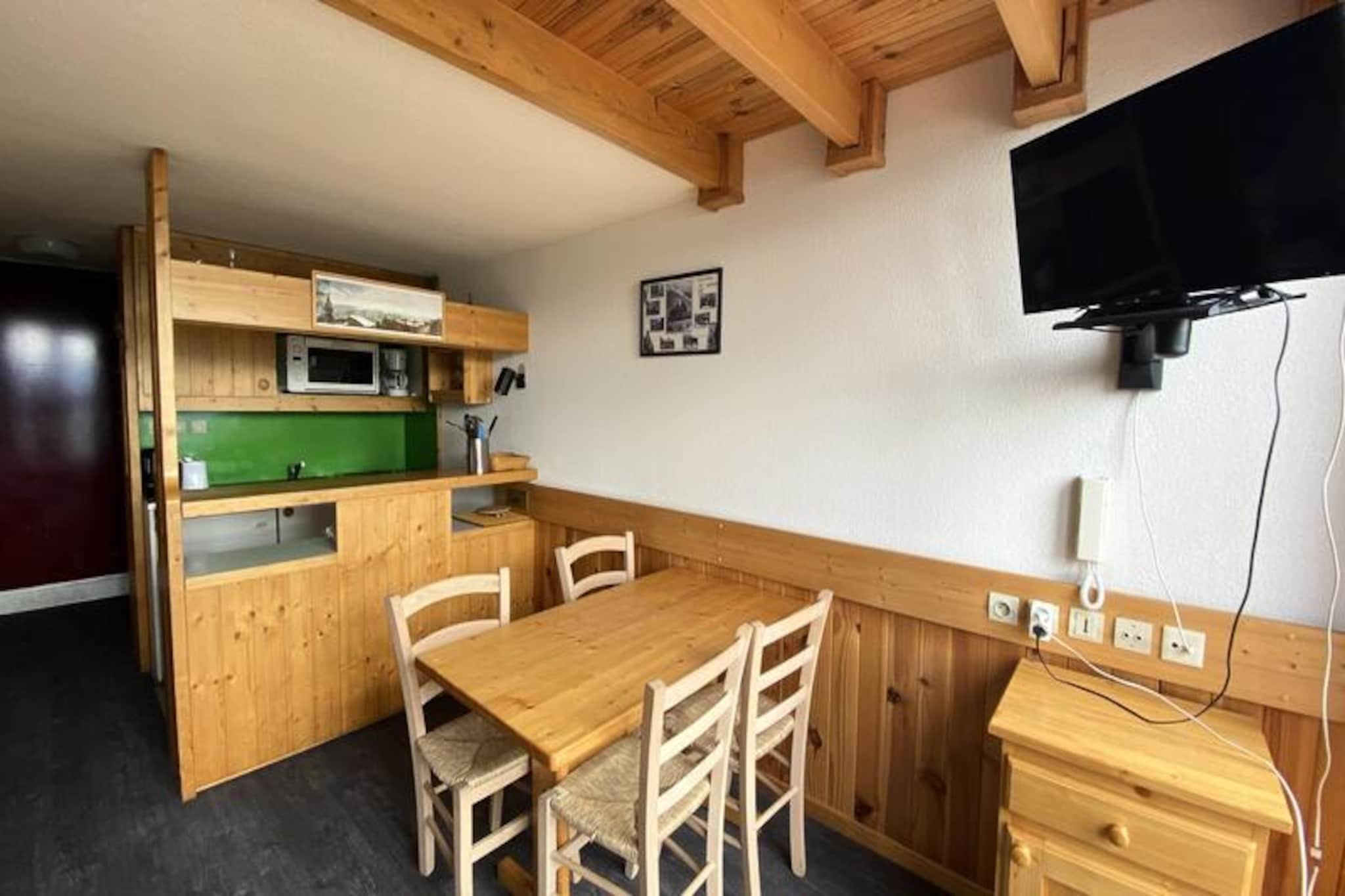 Højt over Tarentaise-dalen tilbyder denne charmerende duplexlejlighed i det fredfyldte Charmettoger-område et roligt alpint tilflugtssted med direkte adgang til pisterne. Forestil dig at træde ud fra 5. sal i boligen direkte på Aiguille Grive 3-pisterne, hvor den friske bjergluft og den betagende udsigt sætter tonen for din dag. Med sin vestvendte balkon kan du slappe af hver aften med et glas vin, mens du ser solen synke ned bag bjergtoppene og male dalen i varme farver. Denne 35 m² store duplexlejlighed er designet til komfortabelt at rumme 4-5 gæster og kombinerer praktisk anvendelighed med hyggelig charme. Hovedplanen har en indbydende opholdsstue med en 140 cm sovesofa, et tv og et fuldt udstyret køkken med elektriske kogeplader, en miniovn, mikrobølgeovn, køleskab, opvaskemaskine og alt det nødvendige for at tilberede solide måltider. Ovenpå tilbyder mezzaninen et fredeligt soveområde med en dobbeltseng, to køjesenge og et badeværelse med badekar og toilet. Indretningen sikrer både privatliv og komfort, hvilket gør den ideel til familier eller små grupper. Selve boligen er udstyret med elevatorer og tilbyder forskellige parkeringsmuligheder, herunder overdækket parkering ved Charmettoger og gratis parkering langs vejen (mod betaling om vinteren). En købmand i boligen sikrer bekvemmelighed, mens de rolige omgivelser giver en perfekt flugt fra de travle skisportssteder. For ekstra bekvemmelighed ligger der et shuttle-stoppested mellem skisportsstederne kun få skridt væk, der forbinder dig med de pulserende faciliteter i Les Arcs. Uanset om du er her for spændingen ved at stå på ski direkte fra din dør, bjergenes ro eller charmen ved alpint liv, lover denne lejlighed et uforglemmeligt ophold. Lad de franske alpers skønhed inspirere dit næste eventyr.