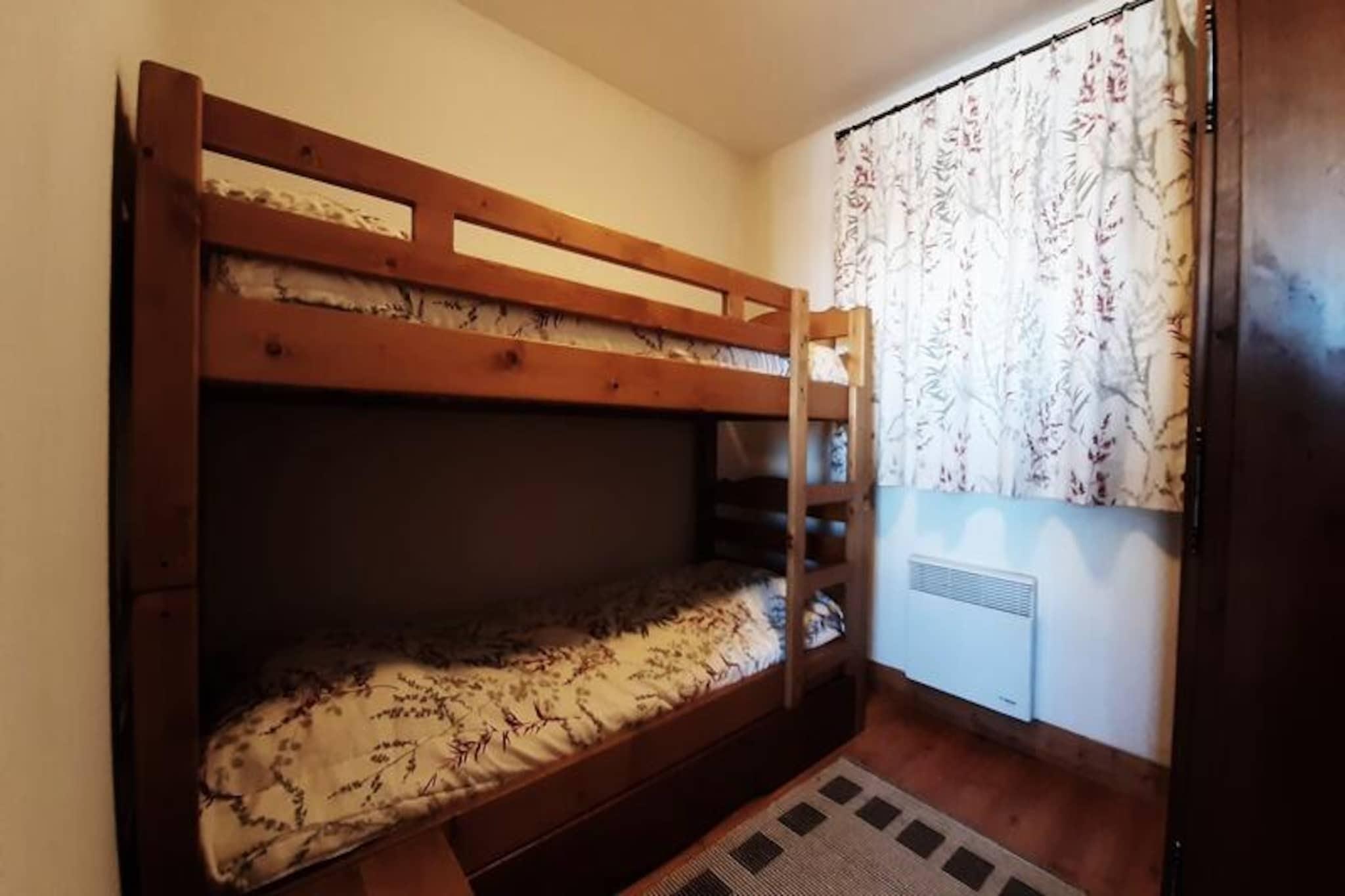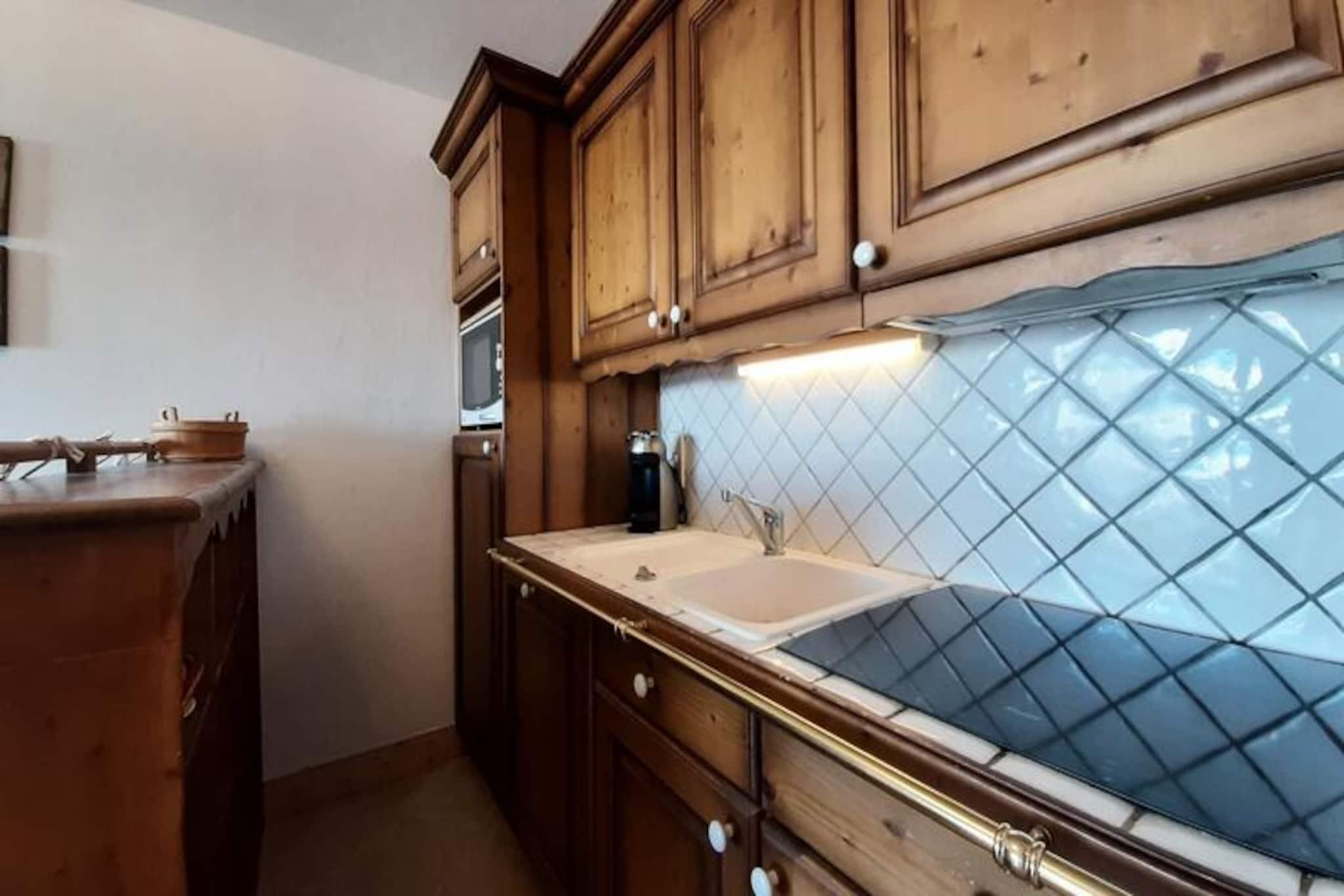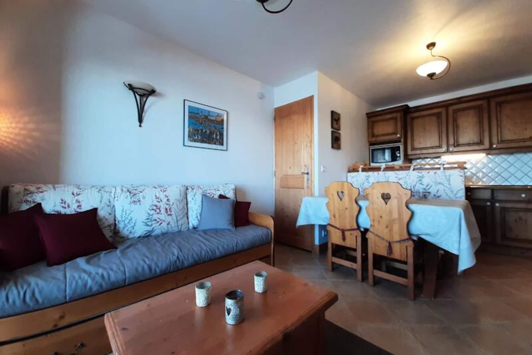 Højt over den maleriske Tarentaise-dal tilbyder denne charmerende alpine lejlighed et roligt tilflugtssted ved foden af ??pisterne i Saint Bernard-residensen. Med sin sydvestvendte balkon kan du nyde den betagende udsigt over de omkringliggende tinder og dale, hvilket gør hvert øjeblik til en fest for sanserne. Uanset om du er her for at grave dig gennem uberørt sne om vinteren eller udforske frodige bjergstier om sommeren, lover denne beliggenhed uforglemmelige eventyr lige uden for døren. Denne 40 m² store lejlighed er designet til at rumme op til seks gæster og kombinerer komfort og funktionalitet. Den hyggelige stue har en udtrækssovesofa og et tv, hvilket skaber et indbydende rum til at slappe af efter en dag med aktiviteter. Soveværelset kan prale af en blød dobbeltseng (160 cm) og et eget brusebad, mens det andet soveværelse tilbyder køjesenge, der er perfekte til børn eller ekstra gæster. Det fuldt udstyrede køkken inkluderer moderne apparater såsom induktionskogeplader, en kombinationsovn, en opvaskemaskine og endda en Dolce Gusto-kaffemaskine til din morgenkaffe. Yderligere faciliteter som en vaskemaskine, Wi-Fi og et skiskab sikrer et bekvemt og stressfrit ophold. Gæsterne vil sætte pris på boligens eksklusive faciliteter, herunder adgang til en indendørs swimmingpool og overdækket parkering. Den nærliggende Dahu-svævebane giver nem adgang til shuttle-services mellem feriestederne, der forbinder dig med det bredere Paradiski-område. For dem, der søger afslapning, er de fredelige omgivelser og den fantastiske alpine udsigt den perfekte baggrund for en foryngende ferie. Uanset om du er tiltrukket af spændingen ved pisterne, charmen i alpelandsbyerne eller roen i bjergene, er denne lejlighed din ideelle base for en uforglemmelig ferie i de franske alper.