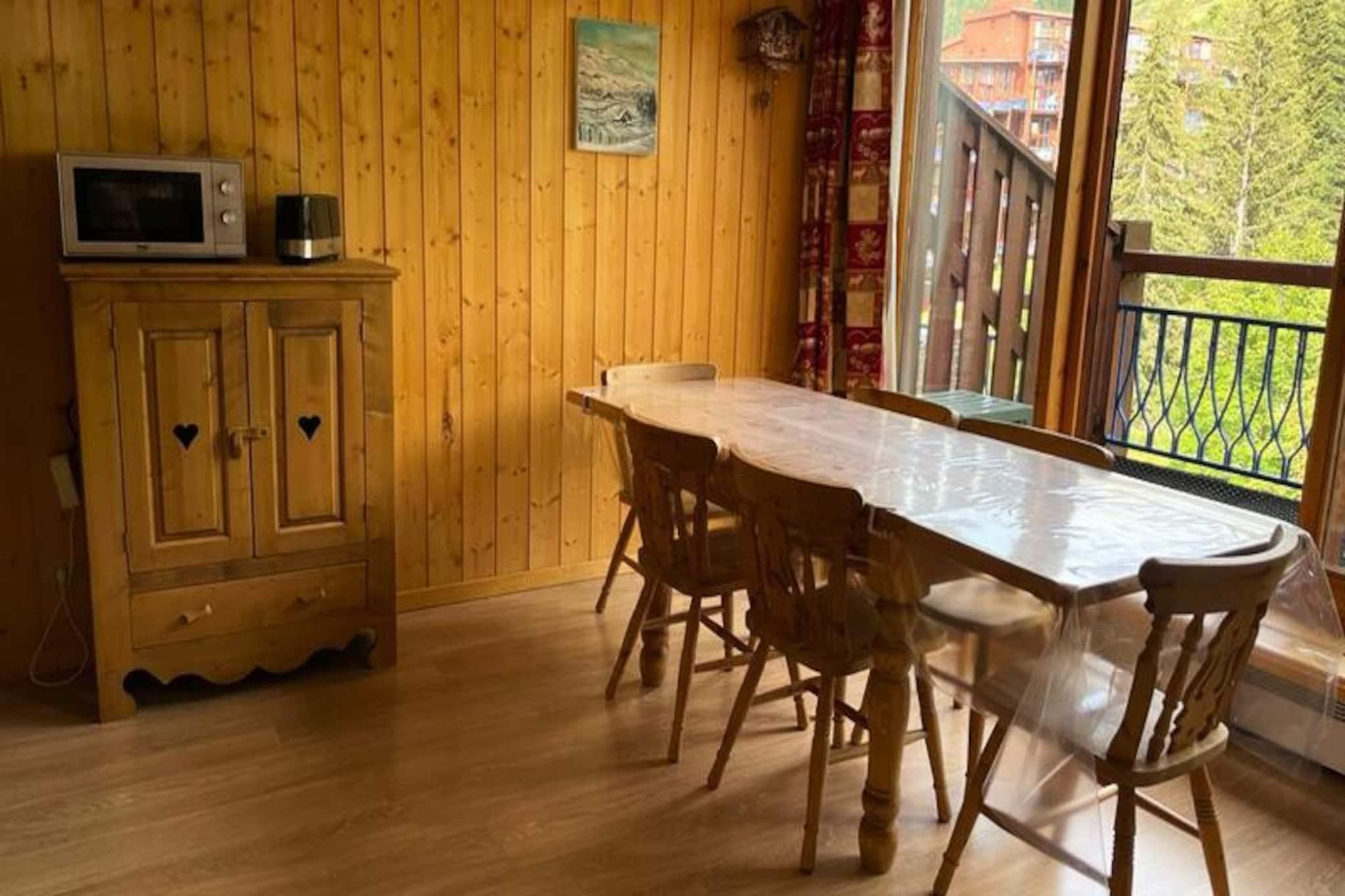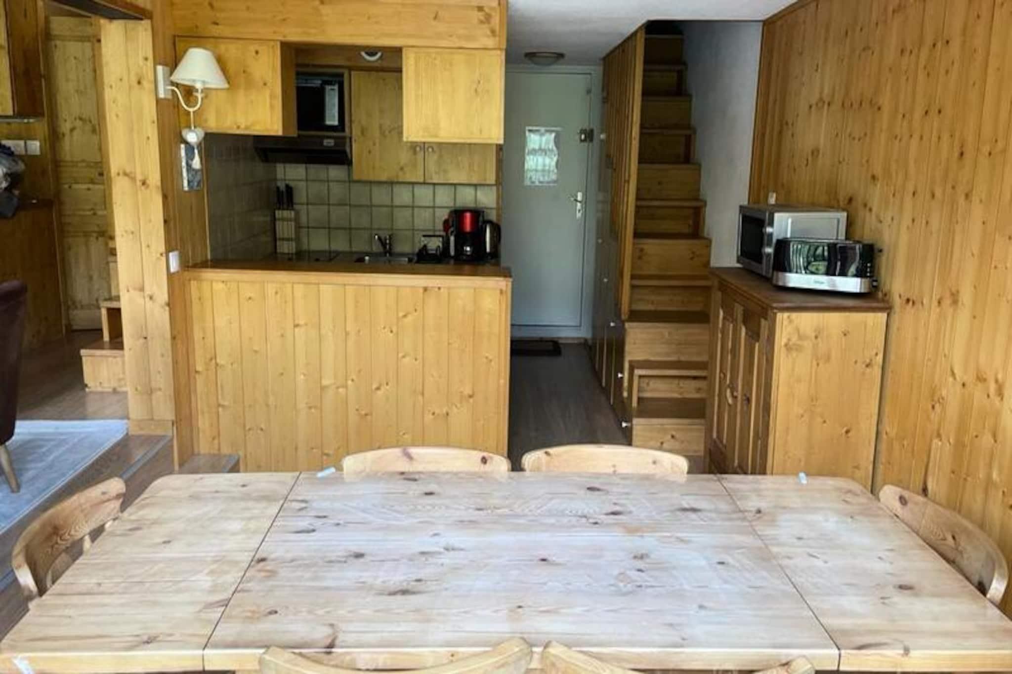 I den fredfyldte landsby Charmettoger, beliggende i Aiguille Grive 3-residensen, tilbyder denne rummelige duplexlejlighed et roligt alpint tilflugtssted ved foden af ??pisterne. Forestil dig at vågne op til det bløde morgenlys, der strømmer gennem den østvendte balkon, indånde den friske bjergluft og træde direkte ud på de snedækkede stier fra gangen lige uden for din dør. Denne bolig er perfekt placeret for skientusiaster og kombinerer bekvemmelighed med charmen ved et fredeligt bjergmiljø. \n\nLejligheden er på 80 kvadratmeter og har komfortabel plads til op til otte gæster. Den lyse og indbydende stue har et dobbeltområde med en hyggelig sovesofa og en spiseplads, ideel til fælles måltider og afslapning efter en dag med eventyr. Det fuldt udstyrede åbne køkken inkluderer moderne apparater såsom elektrisk komfur, ovn, mikrobølgeovn, to køleskabe, opvaskemaskine, kaffemaskine, elkedel, brødrister og endda en vaskemaskine for ekstra bekvemmelighed. Ovenpå finder du to private soveværelser med dobbeltsenge, to gange med køjesenge og rigelig opbevaringsplads. Lejligheden kan også prale af et brusebad, et badeværelse og to separate toiletter, hvilket sikrer komfort og praktisk anvendelighed for alle gæster.\n\nCharmettoger tilbyder en rolig oase fra den travle skisportsby, men er stadig godt forbundet med en shuttlebusstation i nærheden. Selvom området er frit for butikker, tilbyder et købmandsforretning i boligen de nødvendige ting til dit ophold. Overdækket parkering ved Charmettoger og gratis parkering langs vejen bidrager til bekvemmeligheden. Om vinteren er den overdækkede parkering ved Chante Mouche også tilgængelig mod et ekstra gebyr.\n\nUanset om du søger spændende dage på pisterne eller rolige aftener, hvor du nyder den alpine atmosfære, er denne duplexlejlighed den perfekte base for at skabe uforglemmelige minder i hjertet af de franske alper.