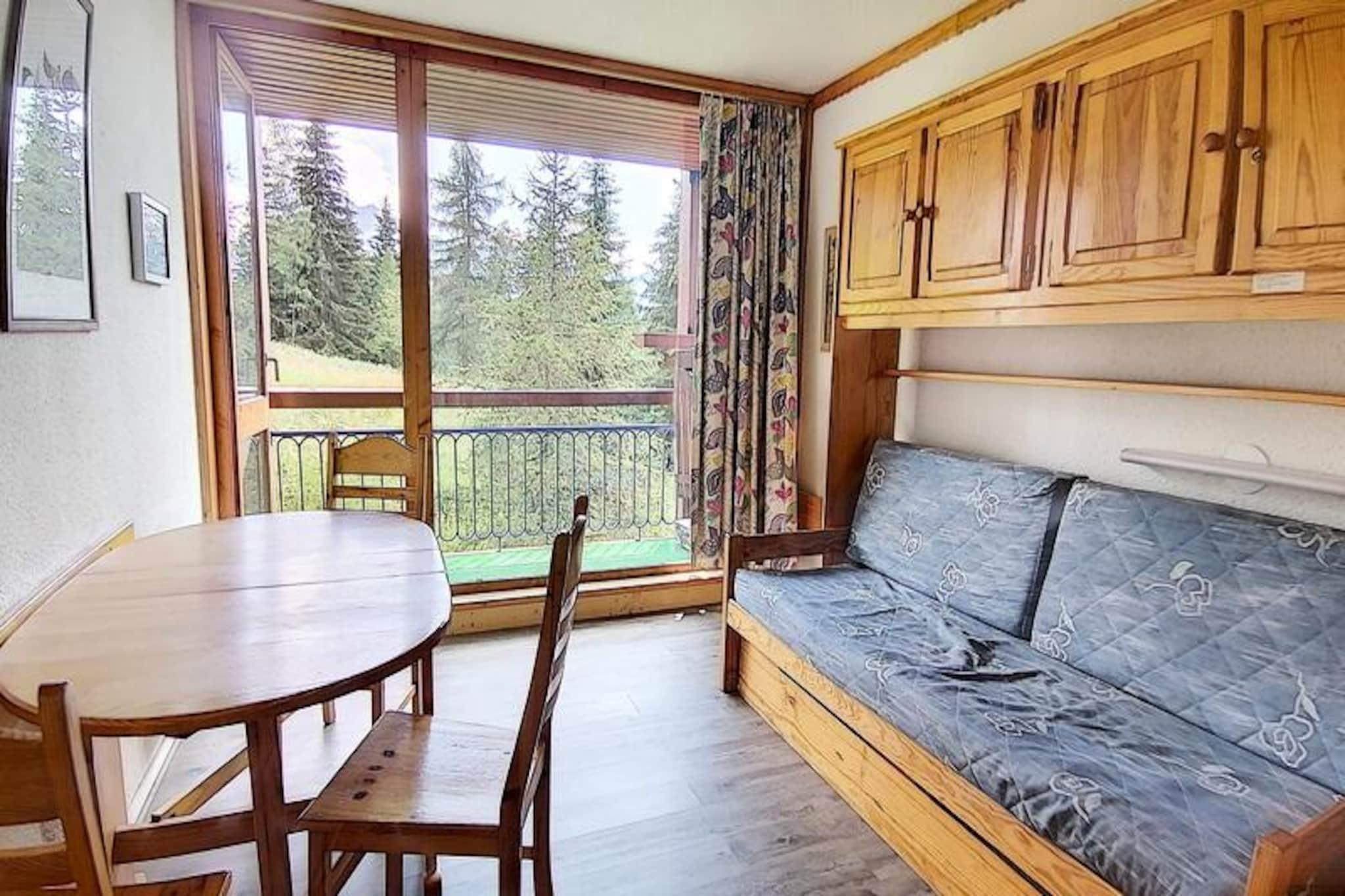 Højt over den charmerende Village des Villards tilbyder denne hyggelige studiohytte et dejligt tilflugtssted for rejsende, der søger både komfort og en betagende udsigt over alperne. Beliggende på 4. sal i Grand Arbois-residensen er dette nyrenoverede rum perfekt til op til fire gæster og giver intime, men funktionelle rammer for din bjergferie. Uanset om du besøger den for de snedækkede pister eller de solrige sommerstier, placerer denne bolig dig i hjertet af begivenhederne. Indenfor er studioet omhyggeligt designet med køjesenge i entréen og to enkeltsenge i opholdsstuen, hvilket sikrer et afslappende ophold for alle. Tekøkkenet er fuldt udstyret med moderne apparater, herunder komfur, ovn, mikrobølgeovn, opvaskemaskine og køleskab, hvilket gør det nemt at tilberede måltider efter en dag med eventyr. Et fladskærms-tv tilbyder underholdning, mens badeværelset har badekar og toilet for din bekvemmelighed. Den syd-/sydvestvendte balkon er et sandt højdepunkt med panoramaudsigt over dalen og uforglemmelige solnedgange. Boligen er ideelt placeret lige under indkøbscentret på den øverste plads i Village des Villards, med nem adgang til shuttle-stoppestedet mellem stationerne ved Villards togstation. Parkeringsmulighederne inkluderer overdækket parkering ved Villards, udendørs parkering ved Chante Mouche og gratis parkering langs vejen (mod betaling om vinteren). I nærheden finder du et udvalg af butikker, restauranter og aktiviteter, der vil forbedre dit ophold. Uanset om du er her for at stå på ski, vandre eller blot slappe af midt i de fredfyldte bjerglandskaber, er denne studiohytte den perfekte base for en uforglemmelig alpeflugt. Lad de franske alpers skønhed og bekvemmeligheden ved denne veludstyrede bolig skabe minder, du vil værdsætte for evigt.