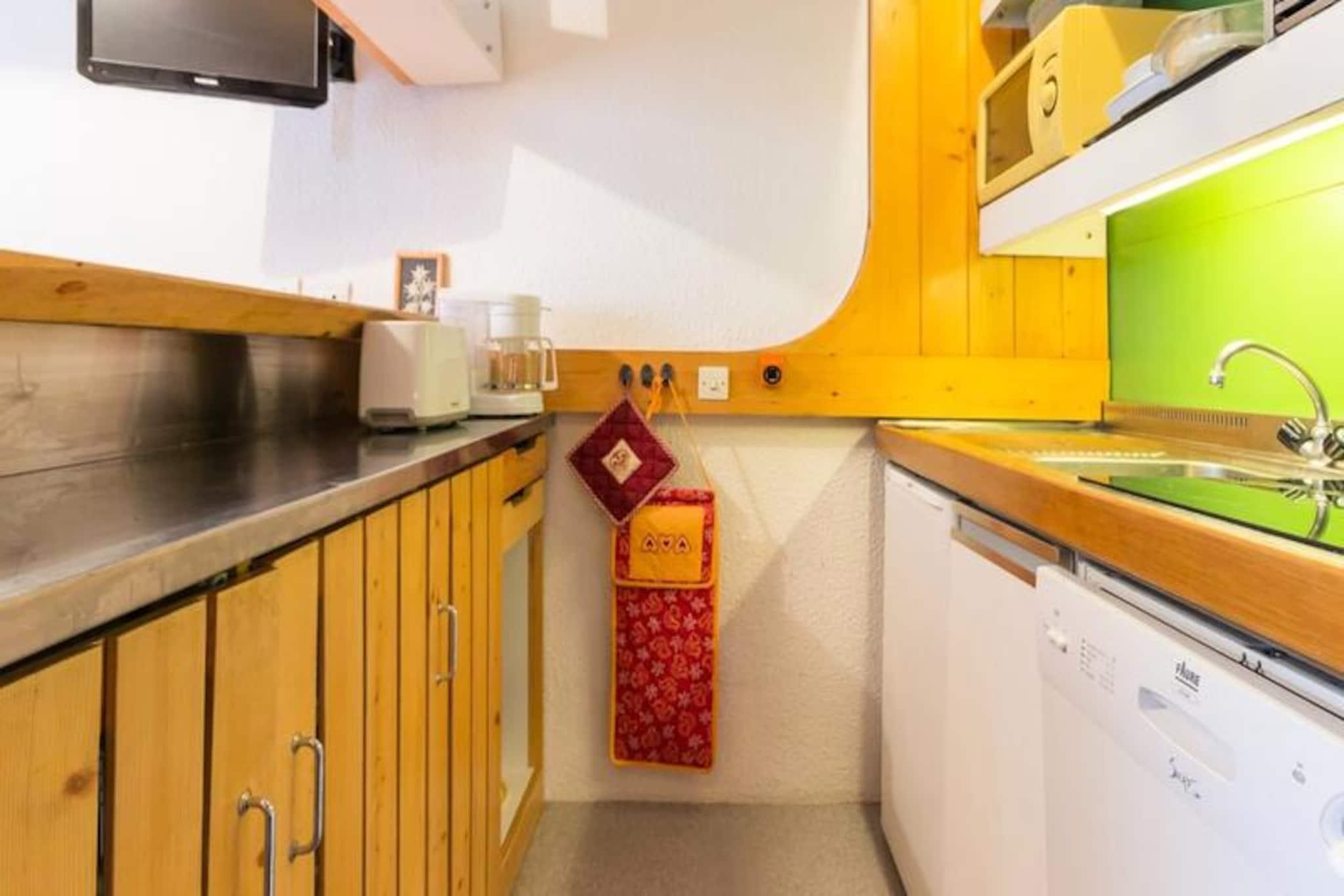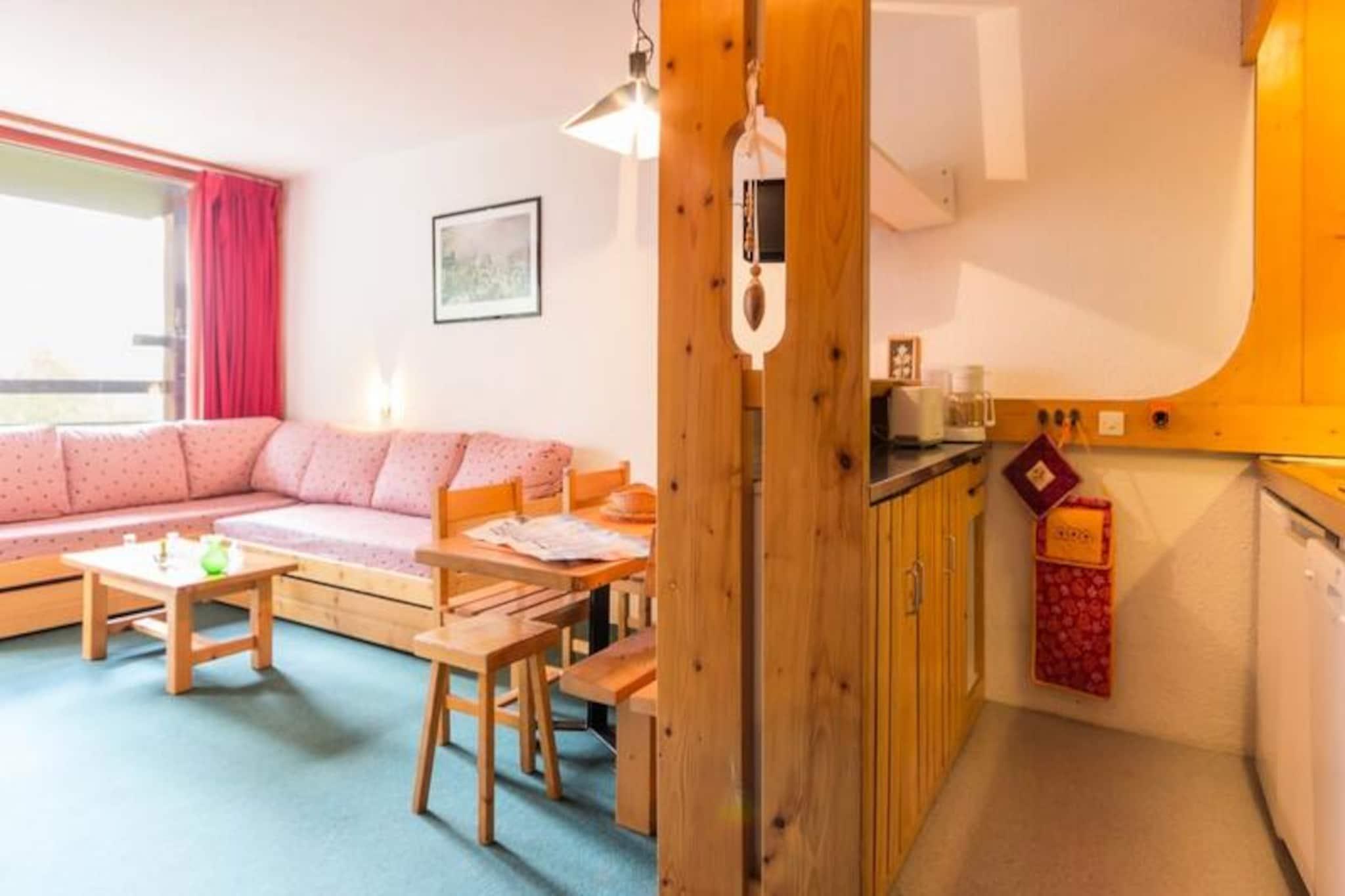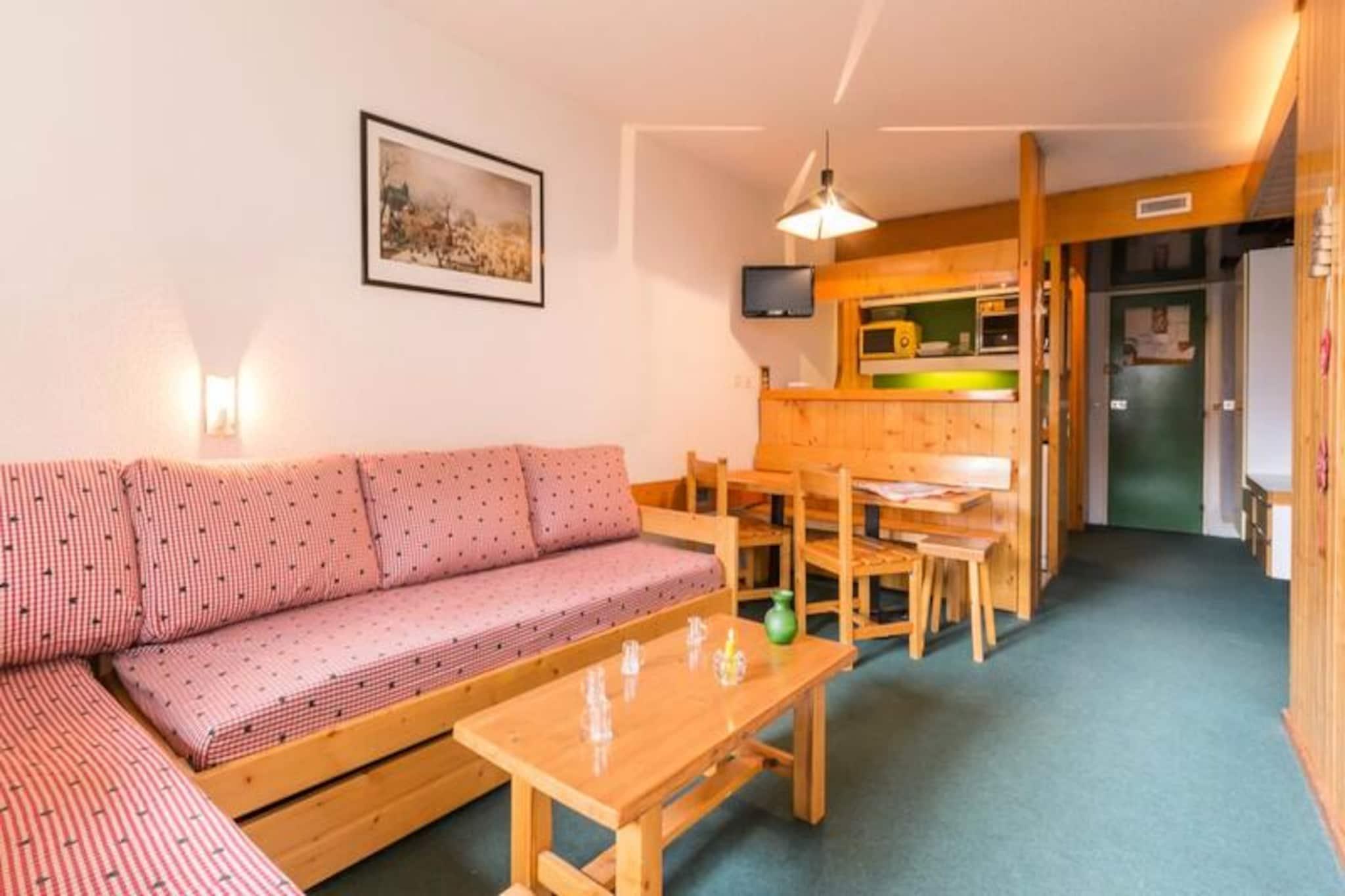 Højt over det travle hjerte af Villards i Les Arcs 1800 tilbyder denne indbydende alpine lejlighed et roligt tilflugtssted med direkte adgang til pisterne. Forestil dig at vågne op til de gyldne nuancer af en dalsolnedgang fra din sydvestvendte balkon eller den fredfyldte udsigt over grantræer fra nordøstsiden. Uanset om du er her for vintereventyr eller sommerlige eskapader, placerer denne bolig dig i centrum af alpin charme og bekvemmelighed. Nova 1-bygningen, med sine fem indgange, er perfekt placeret under snefronten, hvilket gør den ideel for dem, der er ivrige efter at komme ud på pisterne eller udforske landsbyens pulserende atmosfære. \n\nLejligheden er designet til op til seks gæster og har en hyggelig stue med to sovesofaer, et soveværelse med to enkeltsenge og en sovealkove med køjesenge. Alle madrasser er helt nye fra 2023, hvilket sikrer en afslappende nat efter en dag med eventyr. Det fuldt udstyrede køkken inkluderer keramiske kogeplader, en miniovn, mikrobølgeovn, køleskab, opvaskemaskine og mere - perfekt til at tilberede solide måltider, som vi kan nyde sammen. Moderne bekvemmeligheder som gratis Wi-Fi, tv og miljøvenligt sengetøj øger komforten, mens muligheden for slutrengøring sikrer en problemfri afrejse. \n\nTræd udenfor og oplev bekvemmeligheden ved overdækket parkering, nærliggende shuttle-stoppesteder og nem adgang til Villards indkøbscenter. Om vinteren lokker pisterne med uendelige skiløbsmuligheder, mens sommeren forvandler området til et paradis for vandreture, cykling og naturudforskning. Den nærliggende Tarentaise-dal og majestætiske fyrretræsdækkede landskaber tilbyder betagende udsigter og uforglemmelige minder. \n\nUanset om du jagter puddersne pister eller solbeskinnede stier, er denne lejlighed din port til det bedste af Les Arcs 1800. Gør den til din base for en ferie fyldt med eventyr, afslapning og alpin skønhed.