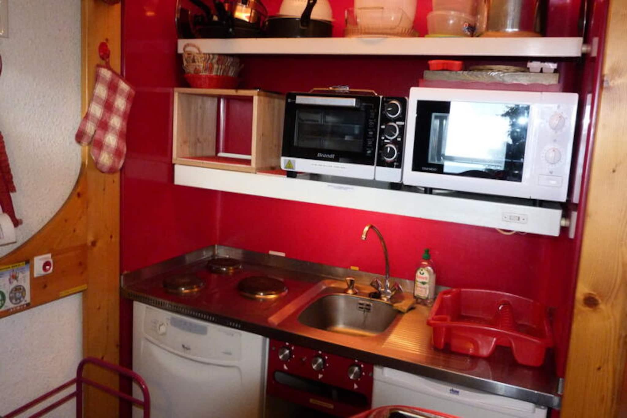 Hvor charmen ved alpint liv møder moderne bekvemmeligheder, tilbyder denne hyggelige 2-værelses lejlighed i Nova Residence et uforglemmeligt tilflugtssted i hjertet af Les Arcs 1800. Beliggende ved krydset mellem Villards og Charvet, tilbyder den en betagende sydvestvendt udsigt over bjergene og dalen, der fordyber dig i de franske alpers fredfyldte skønhed. Uanset om du er her for at grave dig gennem Paradiskis verdensklasse pister eller udforske de livlige sommerstier, er denne lejlighed din port til eventyr. Træd ind i dette 40 m² store paradis i stueetagen, der er omhyggeligt designet til at rumme op til seks gæster. Stuen har en udtrækssovesofa, mens soveværelset tilbyder en udtræksseng med plads til en tremmeseng. En hyggelig sovealkove med køjesenge giver fleksibilitet, hvilket gør den perfekt til familier eller vennegrupper. Det fuldt udstyrede køkken med ovn, køleskab, opvaskemaskine og kaffemaskine åbner ud til opholdsstuen og skaber et varmt og indbydende rum til fælles måltider og afslapning. Moderne faciliteter såsom Wi-Fi, et tv og et skiskab sikrer et behageligt og bekvemt ophold. Beliggende kun få skridt fra Vagère-stoleliften og Villards-gondolen, har du nem adgang til det vidtstrakte Paradiski-skiområde. ESF-skiskolen ligger kun 20 meter væk, hvilket gør det ideelt for familier med spirende skiløbere. Der ligger et supermarked, barer og restauranter inden for 100 meter, mens turistkontoret og et lægecenter kun ligger en kort 7-minutters gåtur derfra. Gratis shuttlebusser kører regelmæssigt og forbinder dig ubesværet med det omkringliggende område. Uanset om du søger spændende vintersport eller rolige sommerferier, kombinerer Nova Residence uovertruffen beliggenhed, komfort og alpin charme. Gør dette til din base for en uforglemmelig ferie i hjertet af de franske alper.