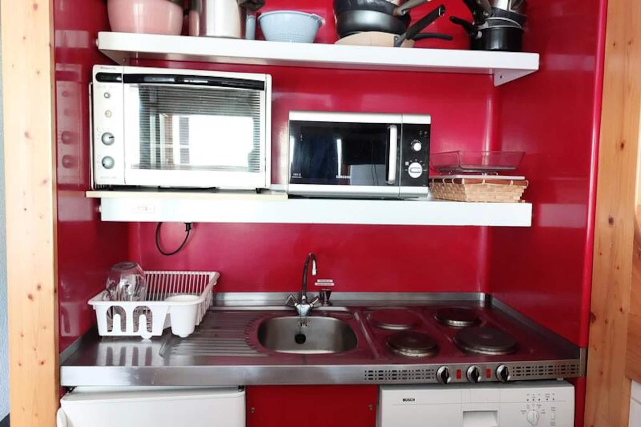 Forestil dig at vågne op til den fredfyldte skønhed af snedækkede pister lige uden for dit vindue. Denne hyggelige 2-værelses lejlighed i Tournavelles 2 tilbyder en uovertruffen ski-in, ski-out oplevelse i hjertet af Les Arcs 1800. Beliggende på snefronten i den pulserende landsby Villards, er du kun få skridt fra Transarc-gondolen og Vagère-stoleliften, hvilket gør det nemt at komme til det verdensberømte Paradiski-skiområde. Uanset om du er her for vintereventyr eller sommerlige bjergture, lover dette charmerende tilflugtssted uforglemmelige øjeblikke i Alperne. Lejligheden er designet til at rumme op til fem gæster og har en indbydende stue med to enkeltsenge og et separat soveværelse med tre køjesenge, perfekt til familier eller små grupper. Det fuldt udstyrede køkken indeholder alt, hvad du behøver for at tilberede solide måltider efter en dag på pisterne, fra et elektrisk komfur til en mikrobølgeovn og kaffemaskine. Slap af i stuen med et fladskærms-tv og Wi-Fi, eller gå ud på den østvendte balkon for at nyde den betagende udsigt over pisterne og snefronten. Et badeværelse med badekar og et separat toilet bidrager til bekvemmeligheden og sikrer et behageligt ophold for alle. Beliggenheden kunne ikke være mere ideel. For foden af ??boligen finder du en dagligvarebutik, mens ESF-skiskolen kun ligger 30 meter væk. Villards indkøbscenter med barer og natklub giver et livligt præg til dine aftener, og den overdækkede parkeringsplads og shuttlebusstoppestedet ligger kun en kort gåtur væk. Om sommeren forvandles området til et paradis for vandrere og cyklister med stier, der snor sig gennem fantastiske alpine landskaber. Uanset om du søger spændende skidage, fredelige bjergmorgener eller livlige afterski-aftener, tilbyder denne lejlighed den perfekte base for din alpine ferie. Book nu, og lad magien i Les Arcs 1800 skabe minder, der vil vare hele livet.