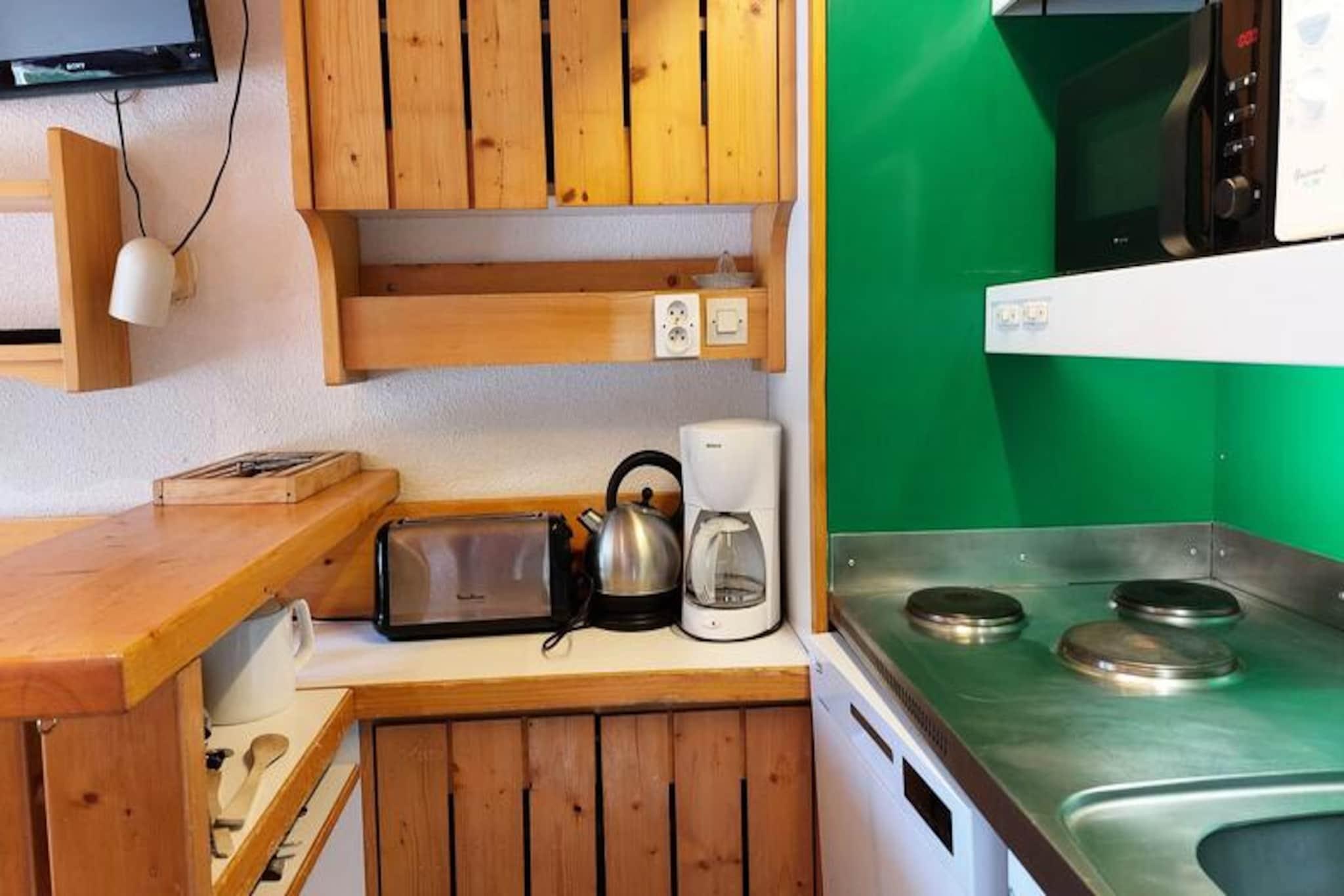 I den fredfyldte landsby Charmettoger, hvor alpin charme møder moderne bekvemmeligheder, tilbyder denne dejlige duplexlejlighed et idyllisk tilflugtssted for dine bjergeventyr. Kun to minutters svævebane fra Charmettoger blå piste og tre minutters gang fra Transarc-skiliften, placerer denne bolig dig i hjertet af Les Arcs 1800, hvilket sikrer ubesværet adgang til det vidtstrakte Paradiski-område. Uanset om du er her for spændingen ved skiløb eller roen ved sommervandreture, inviterer den sydvestvendte balkon dig til at nyde den betagende bjergudsigt og den friske alpine luft. Indenfor er den 30 m² store lejlighed omhyggeligt designet til at rumme op til seks gæster. Soveværelset på mezzaninen har en hyggelig dobbeltseng, mens sovealkoven har en dobbelt sovesofa og en udtrækssovesofa, perfekt til familier eller vennegrupper. Det åbne køkken, udstyret med moderne apparater, herunder ovn, mikrobølgeovn og opvaskemaskine, gør madlavning til en leg. Efter en dag med eventyr kan du slappe af i stuen med en varm drink, nyde dine yndlingsprogrammer på fjernsynet eller holde kontakten med dine kære via Wi-Fi. Badeværelset, komplet med badekar, tilbyder et afslappende sted at forfriske sig og genoplade. Bekvemmelighed er nøglen på Archeboc-residensen. En overdækket parkeringsplads ligger kun 50 meter væk, og gratis shuttlebusser kører året rundt og forbinder dig med nærliggende faciliteter som bageriet, supermarkedet og ESF-skiskolen, alt sammen inden for kort gåafstand. Om vinteren summer den pulserende landsby Villards af afterskiing-aktiviteter, mens sommeren forvandler området til et paradis for friluftsentusiaster med sine naturskønne stier og frodige landskaber. Uanset om du søger en hyggelig vinterferie eller en foryngende sommerferie, lover denne charmerende lejlighed i Archeboc-residensen en uforglemmelig alpin oplevelse. Med sin førsteklasses beliggenhed, komfortable faciliteter og skønheden i Les Arcs 1800 lige uden for døren venter din perfekte bjergferie.