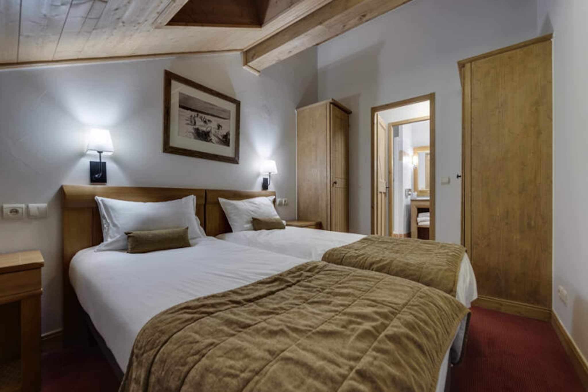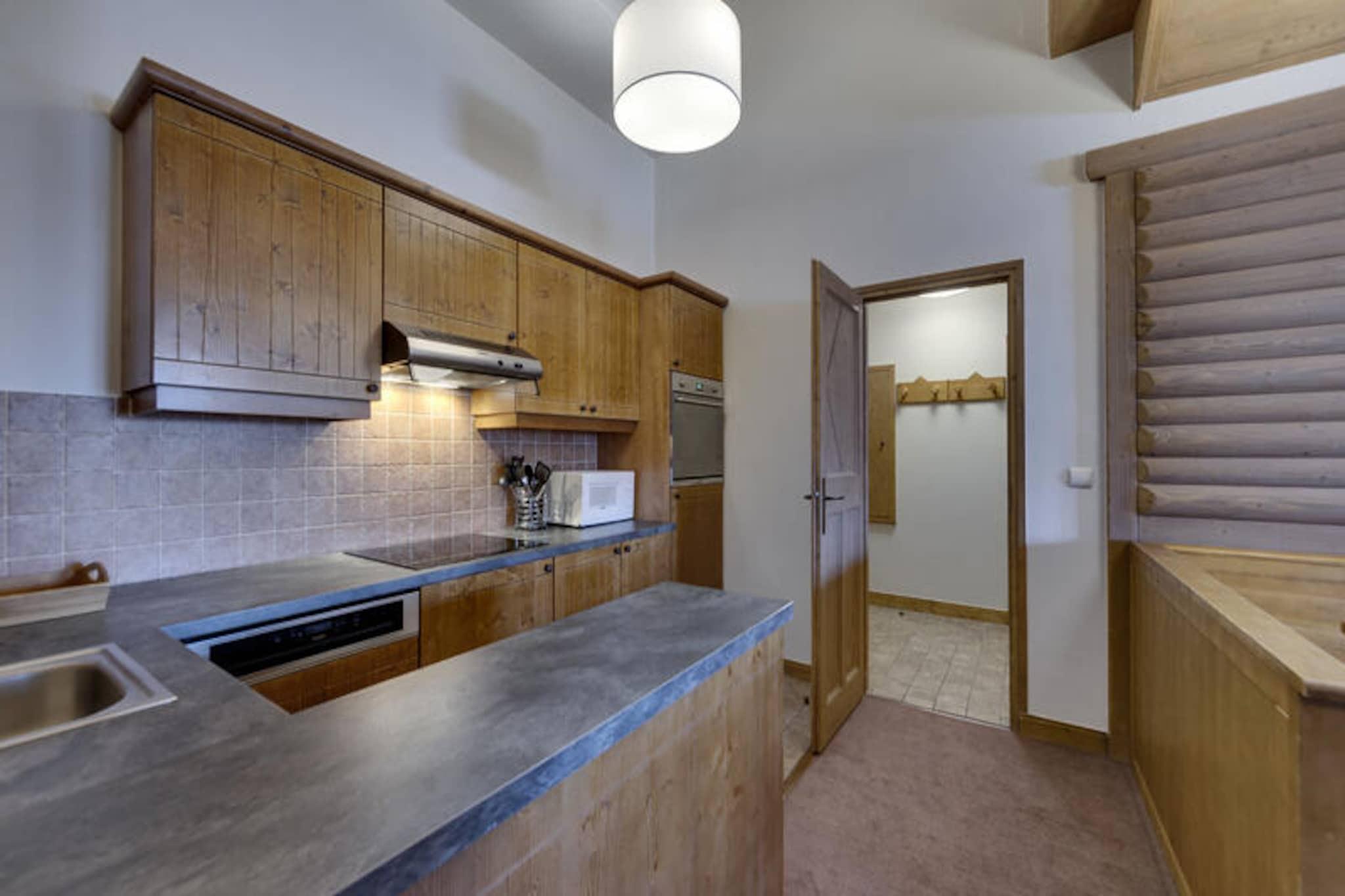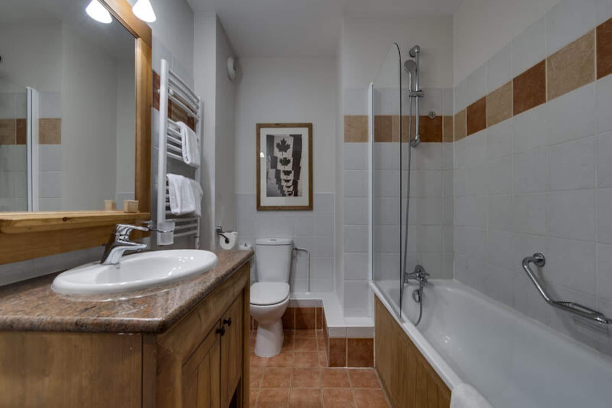 I det fortryllende Arc 1950-resort, hvor charmen fra en alpelandsby møder moderne luksus, tilbyder denne exceptionelle lejlighed med 2 soveværelser en uforglemmelig ski-in/ski-out-oplevelse. Omgivet af de majestætiske tinder i skiområdet Paradiski, med 425 km uberørte pister lige uden for døren, er denne bolig et paradis for både vintersportsentusiaster og naturelskere. Forestil dig selv at træde ud på din østvendte balkon, indånde den friske bjergluft og nyde den fredfyldte skønhed i det snedækkede landskab. \n\nLejligheden er på 67 m² og er omhyggeligt designet til at rumme op til seks gæster. Planløsningen inkluderer en indbydende entré, en hyggelig stue med pejs og et åbent køkken med spiseplads, perfekt til at dele måltider efter en dag på pisterne. Dobbeltværelset med en queensize-seng og et andet soveværelse med to enkeltsenge tilbyder afslappende tilflugtssteder, suppleret af et badeværelse med toilet og et ekstra brusebad. Sengelinned, badekåber og tøfler af høj kvalitet er inkluderet, hvilket sikrer et problemfrit og behageligt ophold. Gæster på Prince des Cimes Residence har eksklusiv adgang til et wellness-område med udendørs swimmingpool, indendørs og udendørs jacuzzi, sauna, dampbad og fitnesscenter. Den gågadelignende landsby Arc 1950 tilbyder en livlig atmosfære med butikker, restauranter og afterski-muligheder kun få skridt væk. Om sommeren forvandles regionen til et paradis for vandrere og mountainbikere med stier, der fører til betagende udsigter. Uanset om du søger spændende eventyr eller rolig afslapning, er denne lejlighed i Arc 1950 din indgang til en ekstraordinær alpin flugt, der lover uforglemmelige minder i enhver sæson.