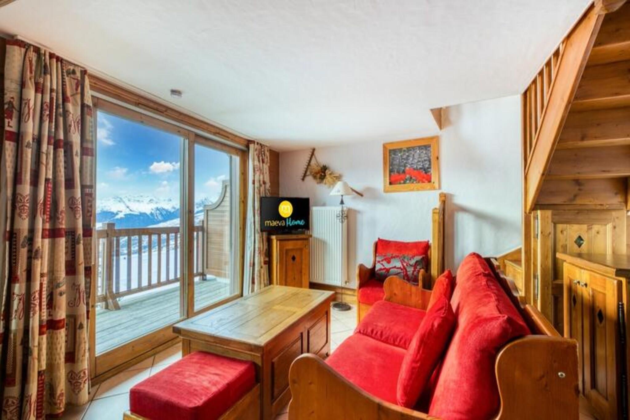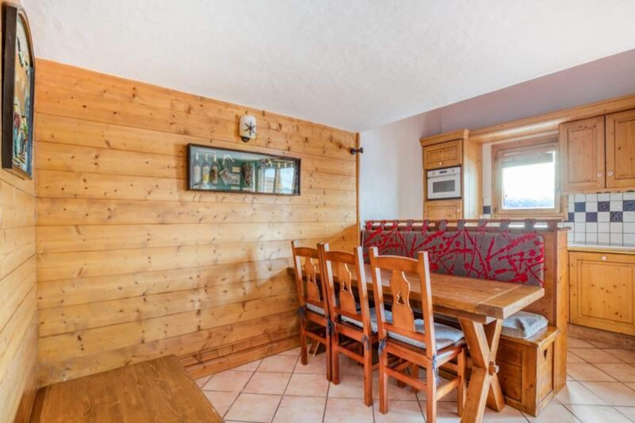 Denne hyggelige duplex-lejlighed kan komfortabelt rumme op til 6 gæster. Det har to soveværelser (et med en dobbeltseng, det andet med to enkeltsenge), en mezzanin med to enkeltsenge og en stue med en sofa. Lejligheden inkluderer Wi-Fi, sengetøj, håndklæder og slutrengøring (undtagen køkkenet). Et depositum på EURO 600 er påkrævet, og kæledyr er tilladt mod et ekstra gebyr. Parkering er tilgængelig mod et ekstra gebyr. Beliggende i Chantel-distriktet i Arc 1800, tilbyder boligen en fantastisk udsigt over Mont Blanc. Gæsterne er i gåafstand fra butikker, en fødevarebutik og to sæsonbestemte restauranter. Dahu-svævebanen ligger kun 10 minutter væk og giver nem adgang til feriestedets skiløjper. Området er perfekt til skiløb, mens boligen også har en indendørs opvarmet pool, sauna, hammam og et cardio-træningsrum. Lejligheden indeholder et fuldt udstyret køkken, to badeværelser (et med badekar og et med bruser) og et separat toilet. Gæsterne kan nyde en balkon, og der tilbydes yderligere parkering. Den indendørs pool er åben fra december til april og tilbyder en fantastisk måde at slappe af efter en dag med udendørs aktiviteter.