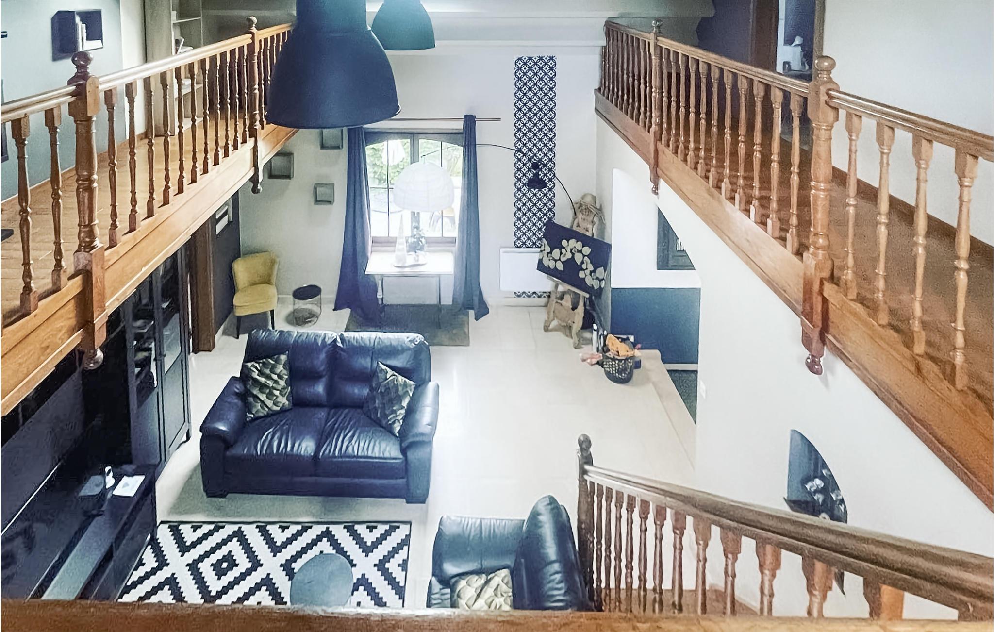 I grønne omgivelser med udsigt til en dam ligger dette skønne, store feriehus, som er meget indbydende. I kan fiske 200 meter fra huset. Der er god plads til den store familie eller en større vennegruppe, og der er gode faciliteter, så I kommer ikke til at mangle noget. Læn jer tilbage i den åbne stue eller nyd varmen fra pejsen i spisestuen, hvor I også kan samles om hyggelige aftener med brætspil.
