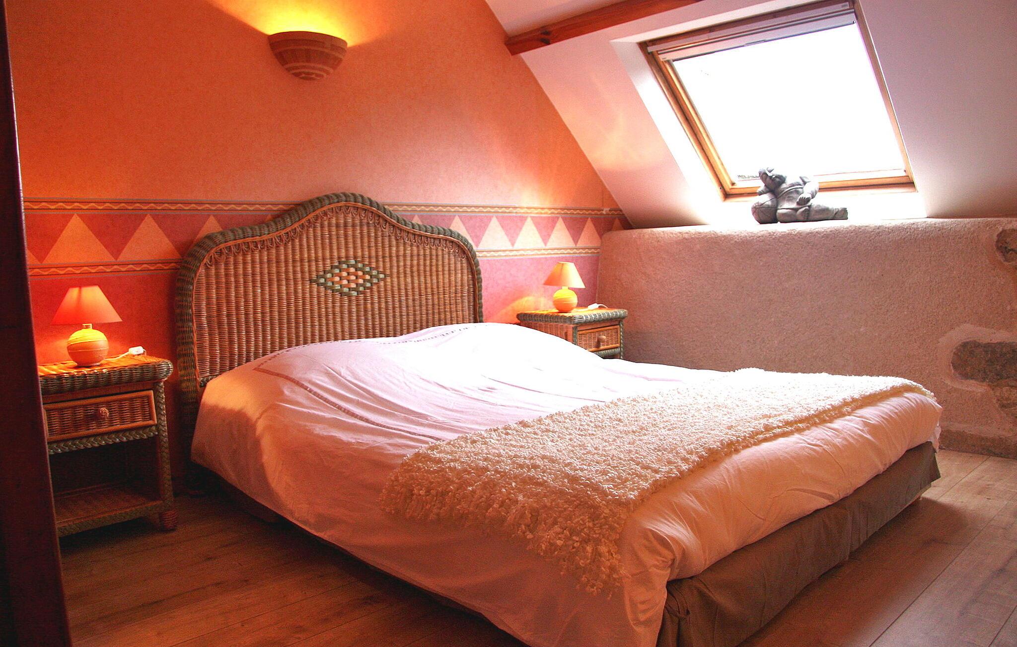 Beliggende i en skovklædt ejendom i Brech, Morbihan, tilbyder dette charmerende hus et dejligt ophold i Pays d'Auray nær Golfe of Morbihan. Huset fremviser en stueetage med en spisestue, et åbent køkken med nødvendige faciliteter, et hyggeligt opholdsområde med en stor pejs og et separat opholdsområde. Et praktisk brusebad fuldender dette niveau. Ovenpå finder gæsterne de komfortable soveværelser og en ekstra enkeltseng på mezzaninen med adgang via en stige. Udendørs kan ejendommen prale af en vidtstrakt skovklædt park, komplet med gynger og liggestole, en terrasse møbleret med udendørs havemøbler og en grill. Feriehuset ligger i ejernes ejendom og består af flere karakteristiske bygninger, herunder en lille herregård fra det 16. århundrede og ruinerne af en gammel befæstning fra det 13. århundrede, en lade omdannet til et lille teater, en park, enge og en lille træ. Ejendommen er beliggende i Brech kommune, mellem Vannes og Lorient, i det meget turistede Pays d'Auray. Bemærk venligst, at ejerne bor på stedet i et selvstændigt hus, hvilket sikrer gæsternes privatliv. Derudover er der et teater installeret i en nærliggende lade, cirka 50 meter fra husene, der opererer fra september til maj, og tilbyder koncerter, workshops og teaterarrangementer. Der er også en afdelingsvej ca. 80 meter fra ejendommen.