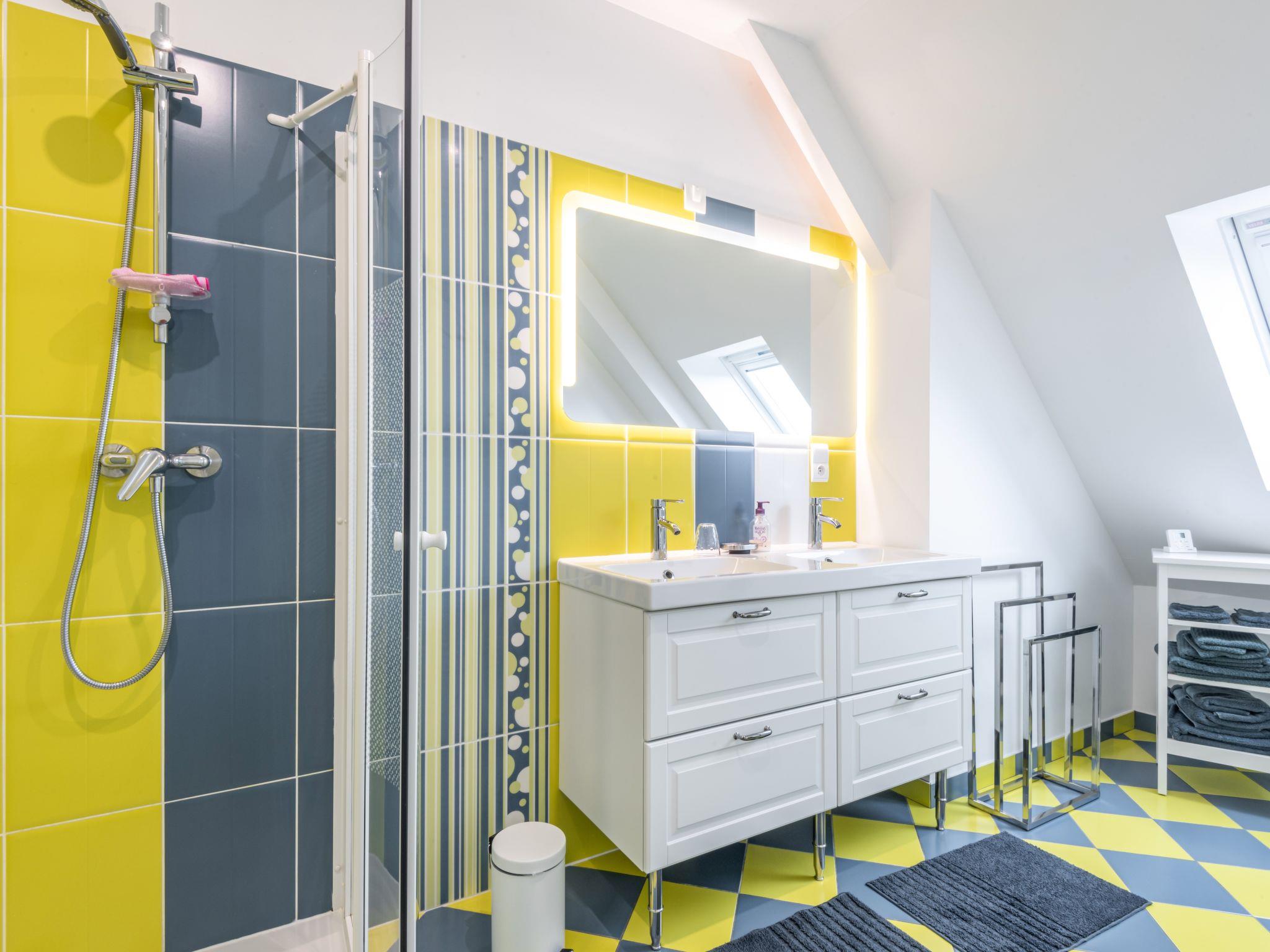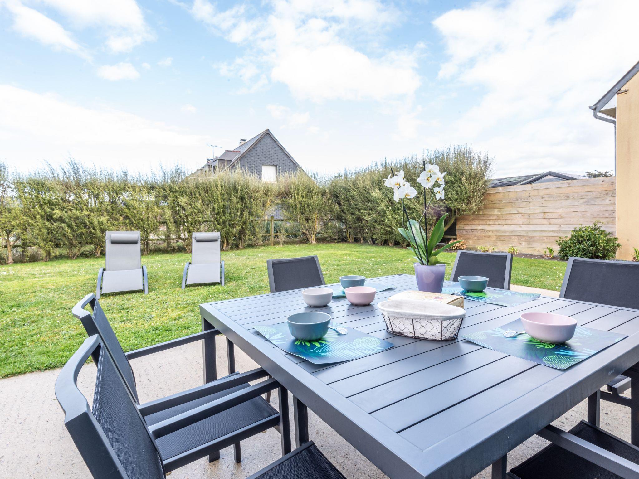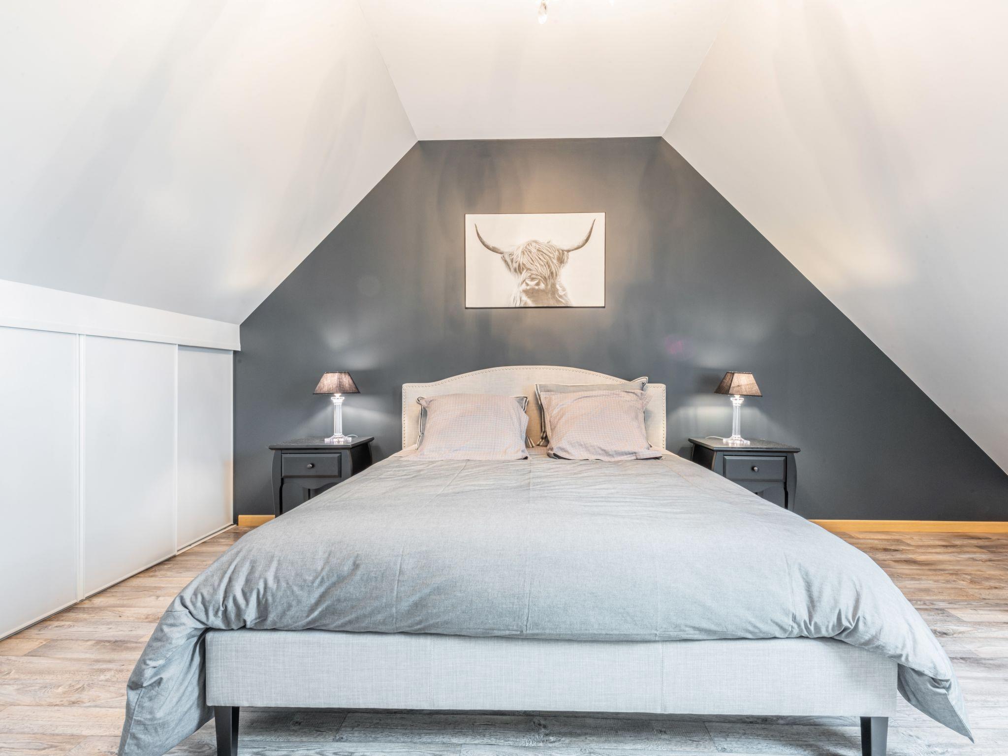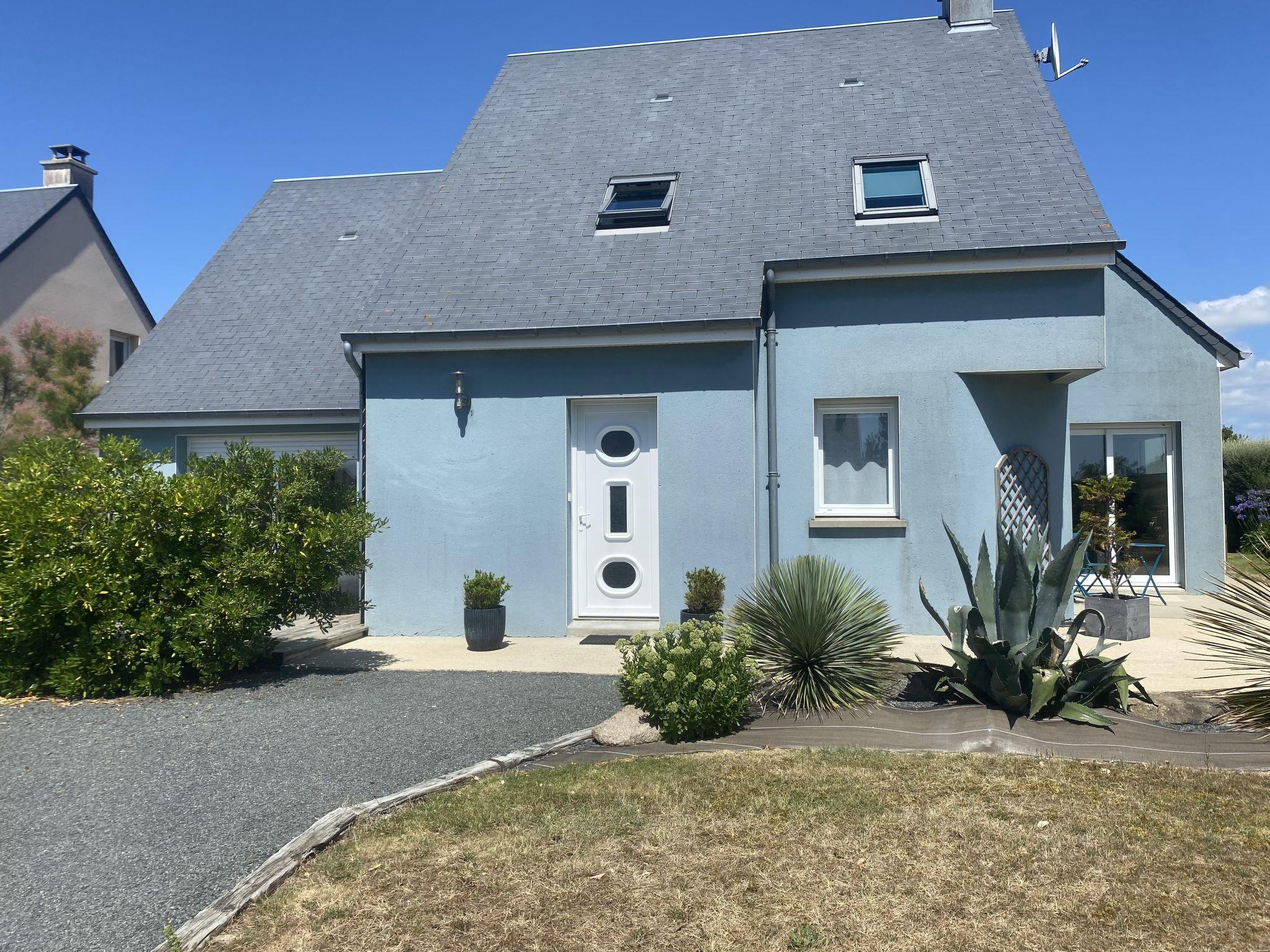 "Blue House", 4-room house 130 m2 on 2 levels. Modern and cosy furnishings: living/dining room with dining table and satellite TV. Exit to the terrace. 1 room with 1 french bed (160 cm), shower. Exit to the terrace. Open kitchen (oven, dishwasher, 4 induction hot plates, toaster, kettle, microwave, freezer, electric coffee machine) with small dining table. Exit to the garden. Sep. WC. Upper floor: 1 room with sloping ceilings with rooflight with 1 french bed (160 cm). 1 room with sloping ceilings with rooflight with 2 beds. Open gallery with sloping ceilings. Shower/WC. Electric heating. Terrace. Terrace furniture, barbecue (portable), deck chairs (4), box-room. Facilities: washing machine, dryer, children's high chair, baby cot. Internet (WiFi, free). Please note: non-smoking house. Maximum 1 pet/ dog allowed. Smoke alarm. Instead of an enclosed bedroom, some sleeping areas are located in an open-plan area (gallery, alcove, etc.). FR1977.604.1