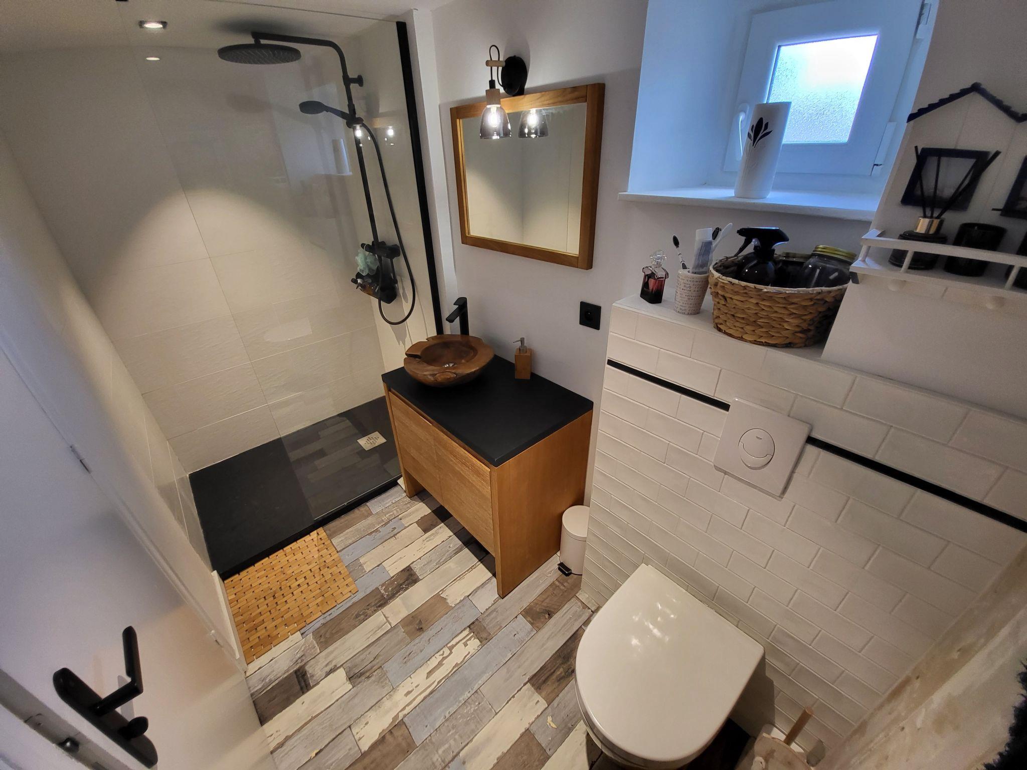 Inside, you'll find everything you need for a comfortable, carefree stay. The house has two welcoming bedrooms, allowing each guest to find their own resting place after a day of exploring. A bathroom equipped with a shower will meet your needs for refreshment and relaxation. The kitchen is fully equipped for home-style meal preparation, with induction hob, filter coffee maker, electric kettle and dishwasher, ensuring an easy and enjoyable dining experience. There is also a private washing machine, adding a touch of convenience to your stay.
