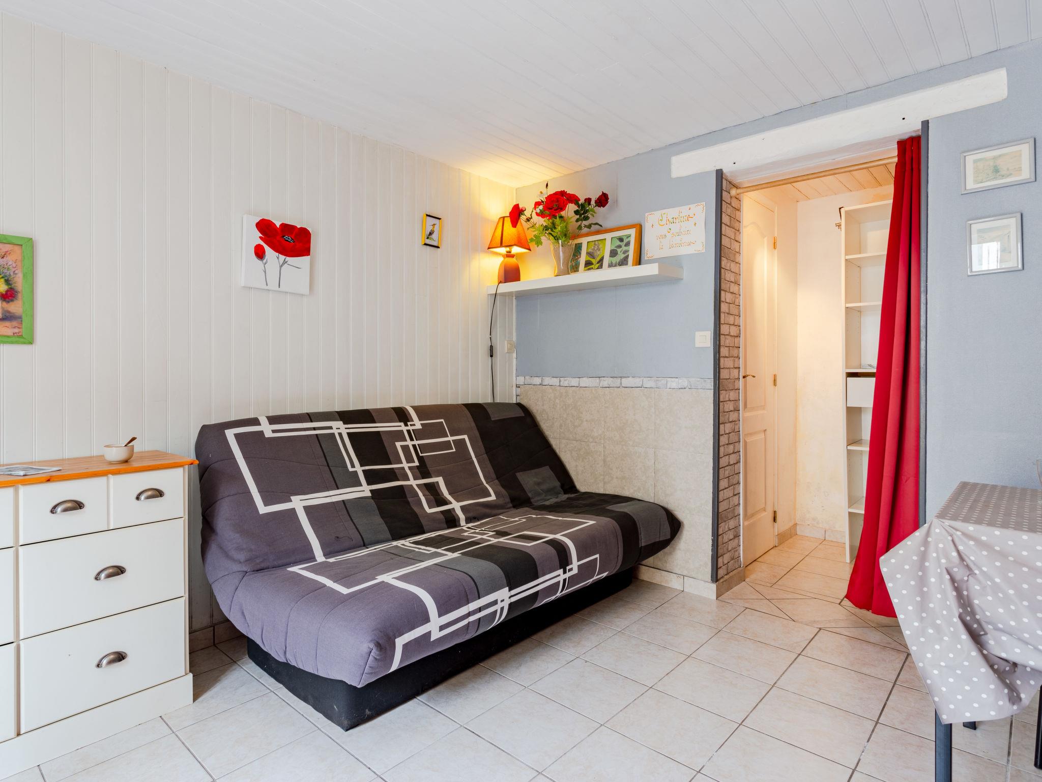 1-room apartment 22 m2, on the mezzanine, west facing position. Living/dining room with 1 double sofabed (140 cm, length 190 cm), TV (flat screen). Kitchenette (2 ceramic glass hob hotplates, toaster, kettle, microwave, electric coffee machine). Shower, sep. WC. Electric heating. Parking space n XX. Please note: smoke alarm. Offer by a private individual according to Art. 155, IV of CGI.