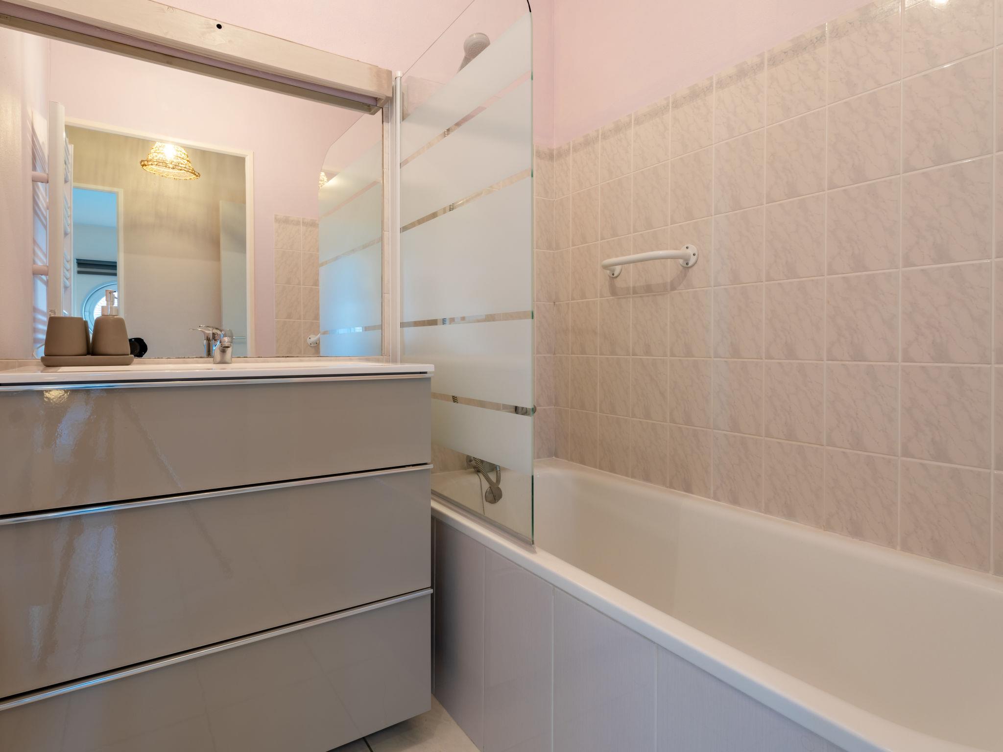 3-room apartment 53 m2 on 1st floor. Living/dining room with TV (flat screen). Exit to the balcony, south-west facing position. 1 room with 1 french bed (160 cm, length 190 cm). Exit to the balcony, north-west facing position. 1 room with 1 french bed (140 cm, length 190 cm). Exit to the balcony, north-west facing position. Kitchenette (oven, dishwasher, 3 induction hot plates, toaster, kettle, microwave, electric coffee machine). Bathroom, sep. WC. Electric heating. 2 terraces 4 m2. Balcony furniture. Very beautiful view of the river. Facilities: washing machine. Internet (WiFi, extra). Parking space n 541. Please note: smoke alarm, no lift. Offer by a private individual according to Art. 155, IV of CGI.