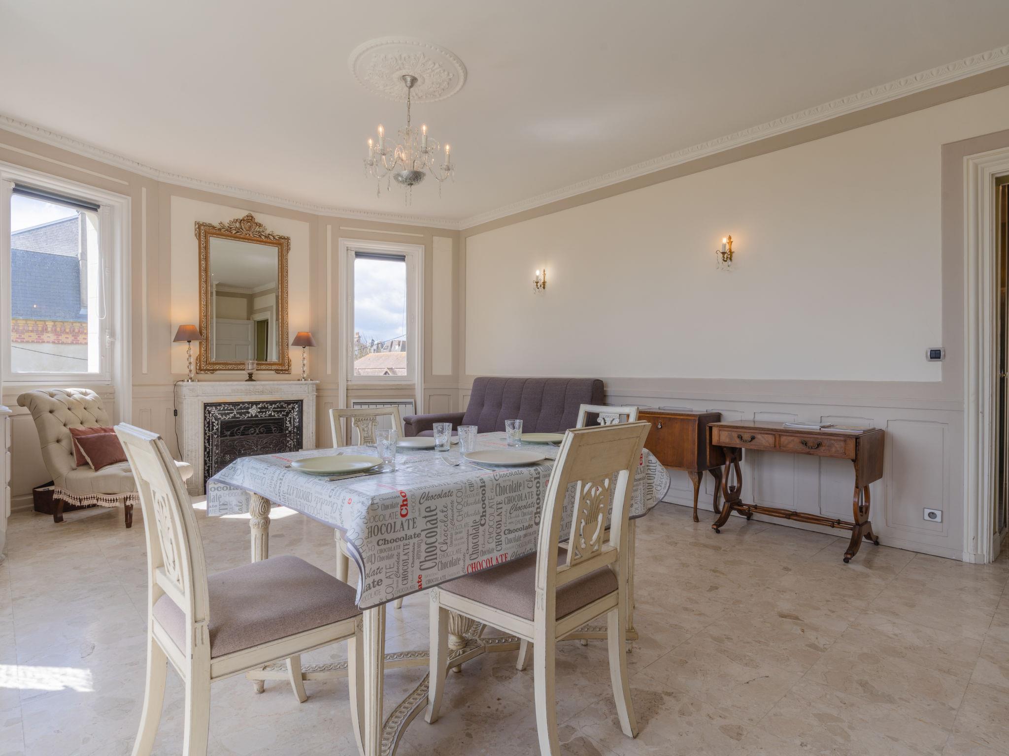 Residence "Marie Antoinette", 2 storeys. In the centre of Cabourg, in the resort, 200 m from the sea, 200 m from the beach. Public parking on the road. Shop 200 m, supermarket 1.7 km, restaurant 200 m, bus stop "Hôtel de Ville" 900 m, thermal baths "Thalazur" 900 m. Golf course (9 hole) 1.8 km. Please note: no lift.