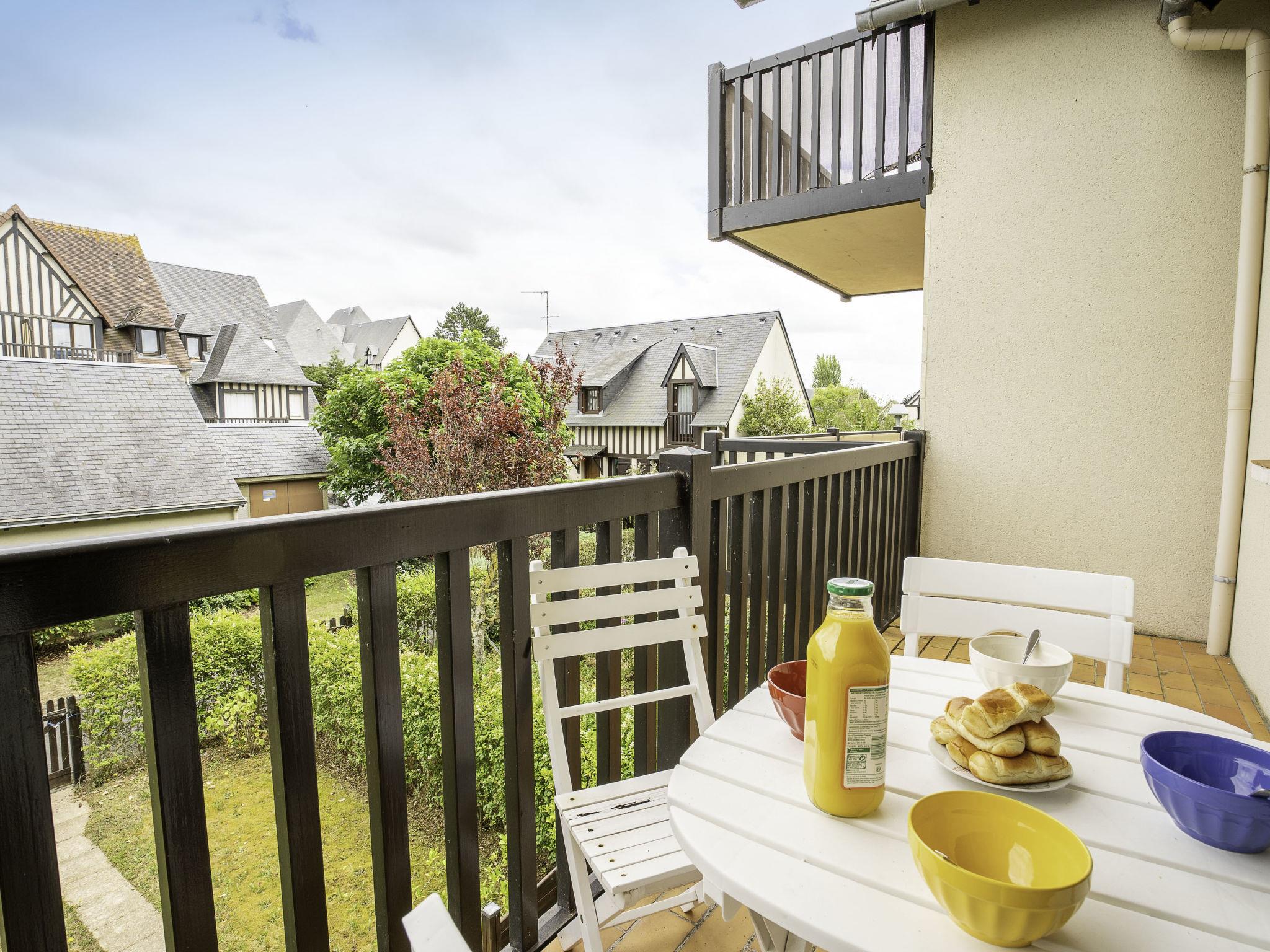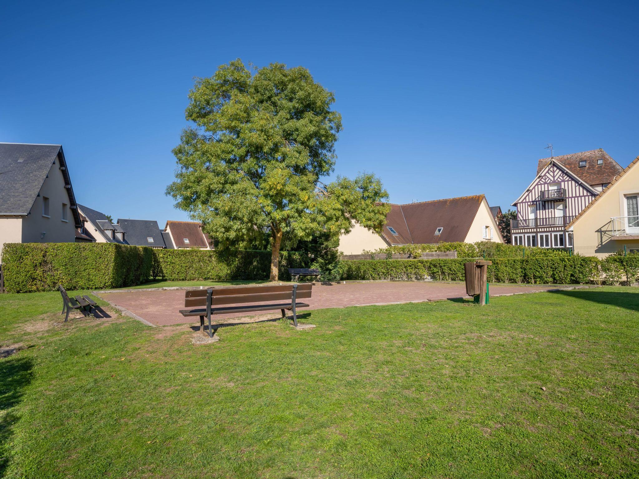 Residence "Fleur Marine". In the resort 1 km from the centre of Cabourg, 300 m from the sea, 300 m from the beach, direct access to the beach. For shared use: boccia, parking (limited number of spaces). Shop 1 km, grocery 1 km, supermarket 900 m, restaurant 1 km, bar 1 km, bicycle rental 550 m, bus stop "Plage" 450 m, sandy beach 300 m, thermal baths "Thalazur" 500 m. Sports harbour 3 km, golf course (9 hole) 1.2 km, tennis 700 m, minigolf 2.3 km, sports centre 500 m. Nearby attractions: Deauville 26 km, Honfleur 48 km, Caen 25 km. Please note: no lift. The photograph shows a typical example. Composed of 2-storey terraced houses and 3-storey buildings in Norman style.
