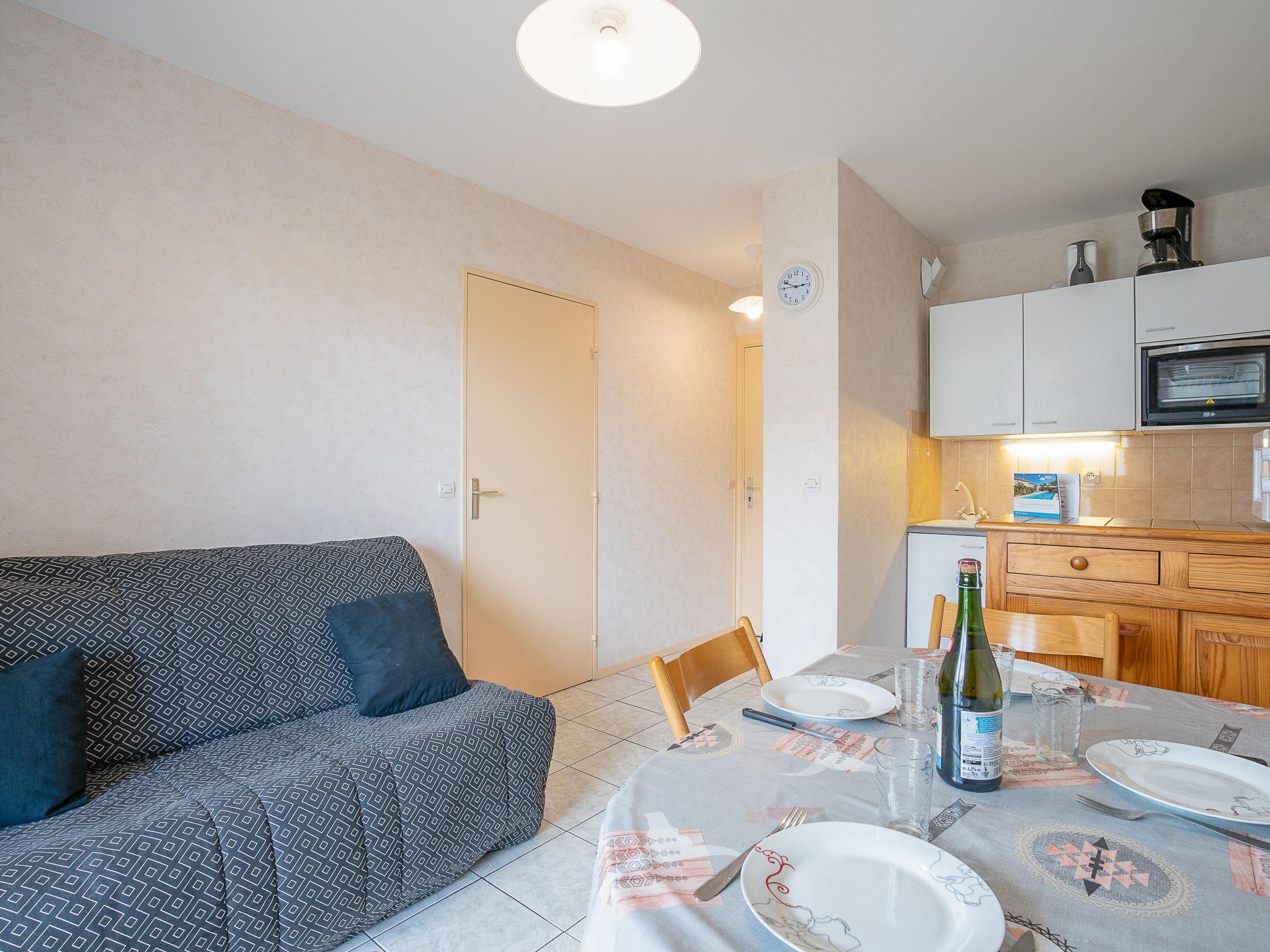 2-room apartment 24 m2 on 1st floor, east facing position. Living/dining room with 1 double sofabed (160 cm, length 190 cm), TV (flat screen). Exit to the balcony. 1 room with 1 french bed (140 cm, length 190 cm). Kitchenette (2 hot plates, mini-oven, kettle, microwave) with bar. Bath/WC. Electric heating, boiler. Balcony 8 m2. Balcony furniture. Facilities: washing machine, iron. Internet (WiFi, extra). Please note: non-smokers only. Smoke alarm. FR1807.251.27