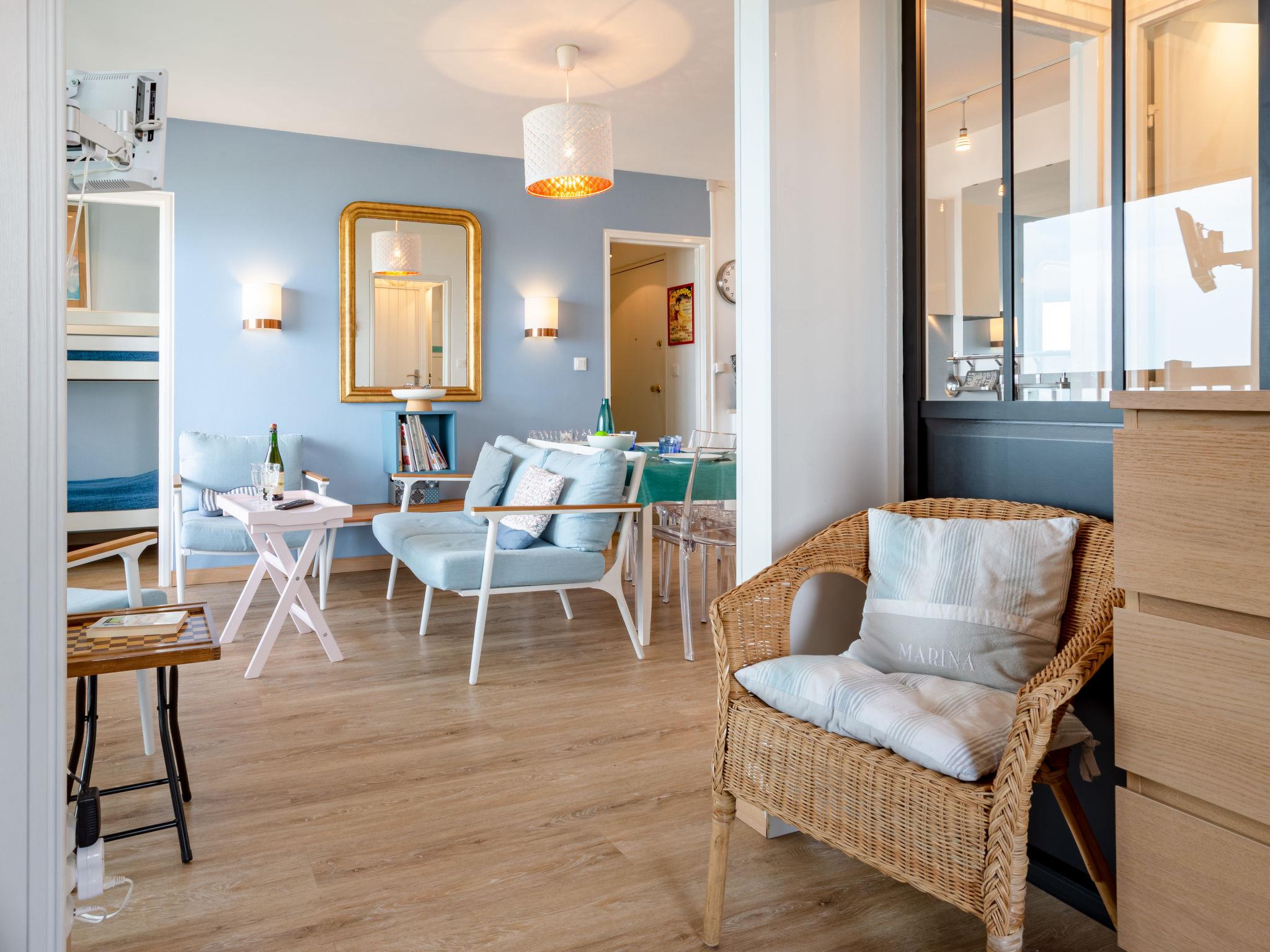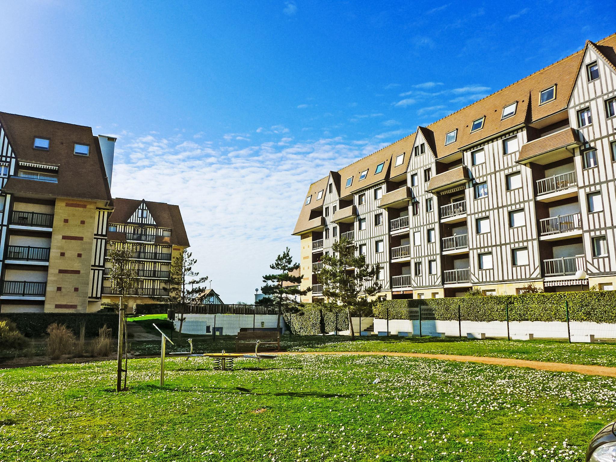 Residence "La Bizontine", 5 storeys. In the resort 2 km from the centre of Cabourg, 50 m from the sea, 50 m from the beach, direct access to the beach. In the complex: central heating system. Public parking on the road. Shop 2 km, supermarket 800 m, restaurant 2 km, bus stop "Thalasso" 400 m, thermal baths "Thalazur" 1 km. Golf course (18 hole) 1.1 km. Please note: lift to 4th floor. Additional accommodations can be booked.