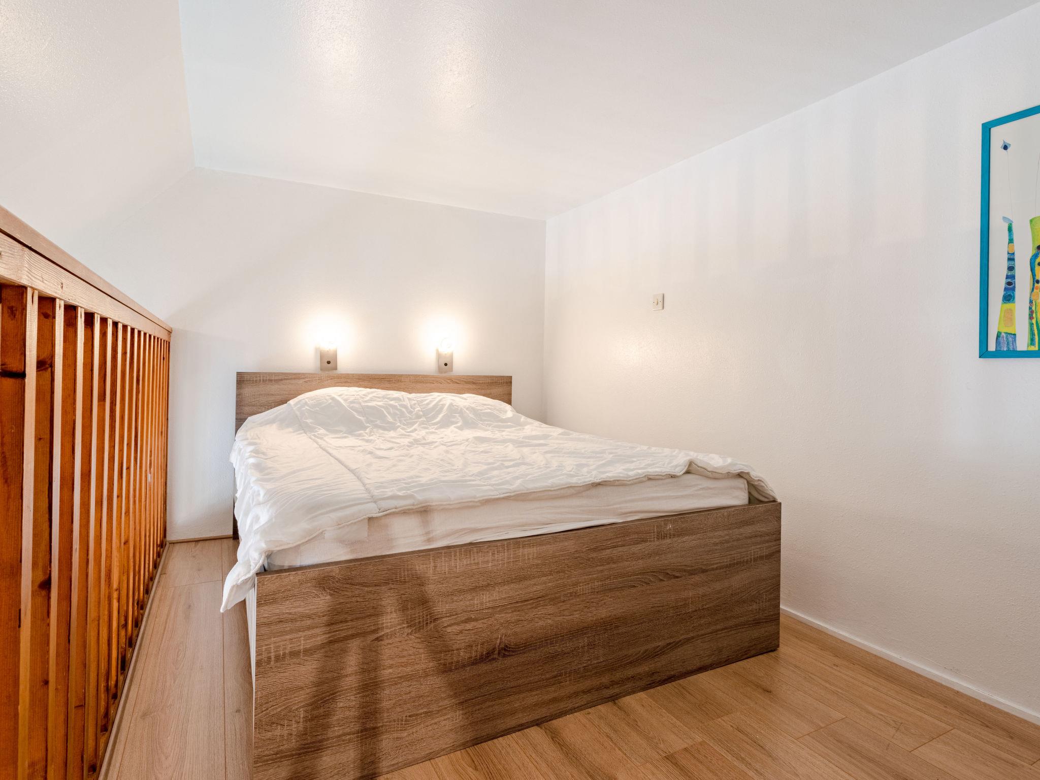 1-room studio 27 m2 on 2 levels on 3rd floor, east facing position. Living/dining room with TV (flat screen). Exit to the balcony. Kitchenette (4 hot plates, oven, toaster, kettle, microwave, electric coffee machine). Shower/WC. Electric heating. Upper floor: (steep stair) gallery with sloping ceilings with 1 x 2 bunk beds (90 cm, length 190 cm), 1 french bed (140 cm, length 190 cm). Balcony 5 m2. Facilities: washing machine. Internet (WiFi, extra). Please note: smoke alarm, no lift. Instead of an enclosed bedroom, some sleeping areas are located in an open-plan area (gallery, alcove, etc.). Offer by a private individual according to Art. 155, IV of CGI.