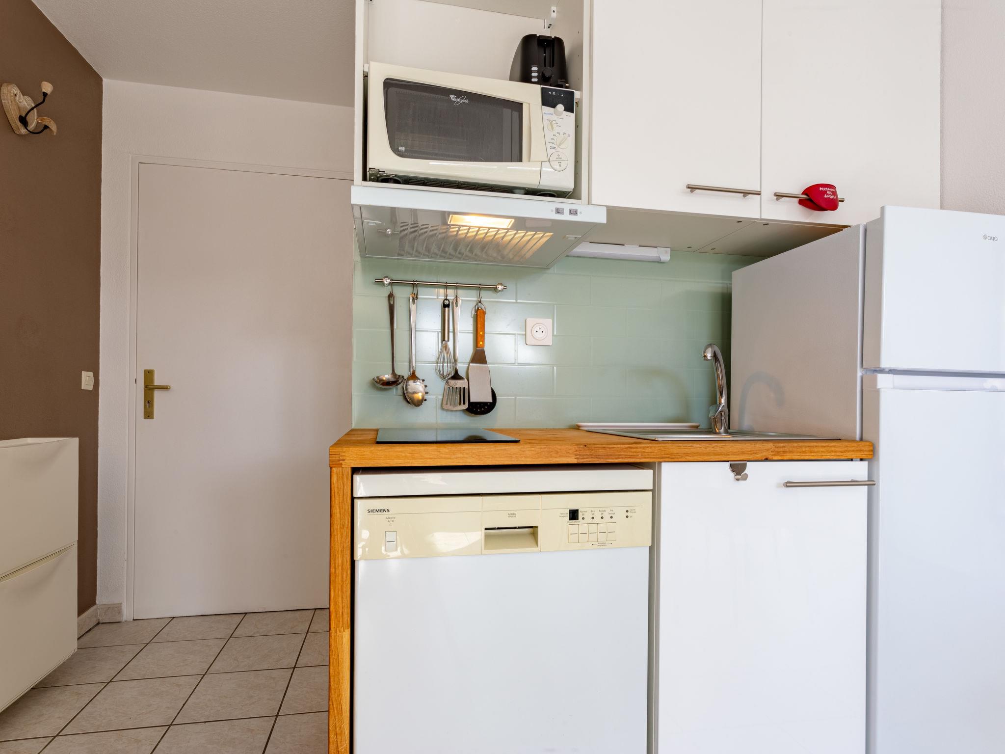 3-room apartment 37 m2, on the ground floor, south-east facing position. Living/dining room with TV (flat screen). Exit to the garden, to the terrace. 2 rooms, each room with 1 french bed (140 cm, length 190 cm). Kitchenette (dishwasher, 2 induction hot plates, toaster, kettle, microwave, freezer, electric coffee machine). Shower, sep. WC. Electric heating. Terrace 15 m2, garden 100 m2. Terrace furniture, barbecue. Facilities: washing machine, children's high chair, baby cot for up to 3 year olds, hair dryer. Internet (WiFi, free). Parking space n 503. Please note: maximum 1 small pet/ dog allowed. Smoke alarm. Offer by a private individual according to Art. 155, IV of CGI.