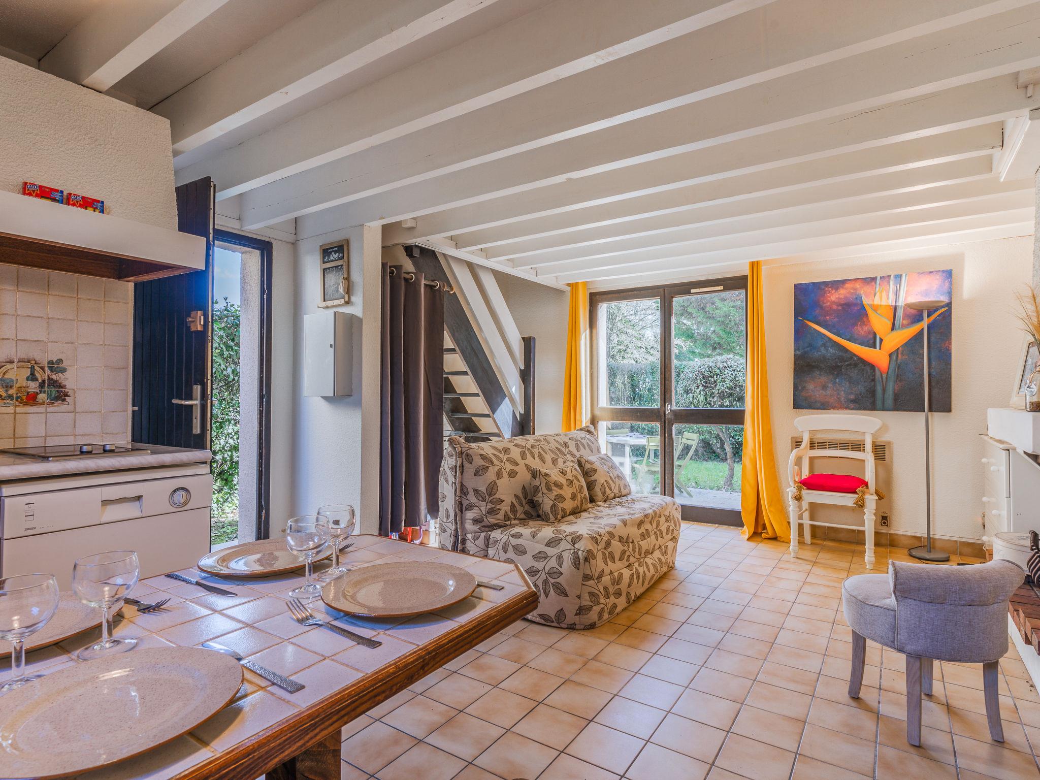 Residence "Le Clos du Golf". In the resort, 1.6 km from the centre of Cabourg, 2.3 km from the sea, 2.3 km from the beach. For shared use: swimming pool angular heated, fenced (10 x 16 m, depth 180 cm, seasonal availability: 15.Jun. - 15.Sep. pool opening hours: 09:00-20:00). Shower/WC in the pool area, outdoor shower, tennis (2 x hard court), children's playground, parking on the premises, public parking on the road. Shop 1.6 km, supermarket 1 km, restaurant 1.6 km, bus stop "guillaume le conquérant" 1.9 km, thermal baths "Thalazur" 1.7 km. Golf course (9 hole) 300 m. Please note: no lift. The photograph shows a typical example. Composed of terraced houses and small buildings of 2 floors of Norman style.
