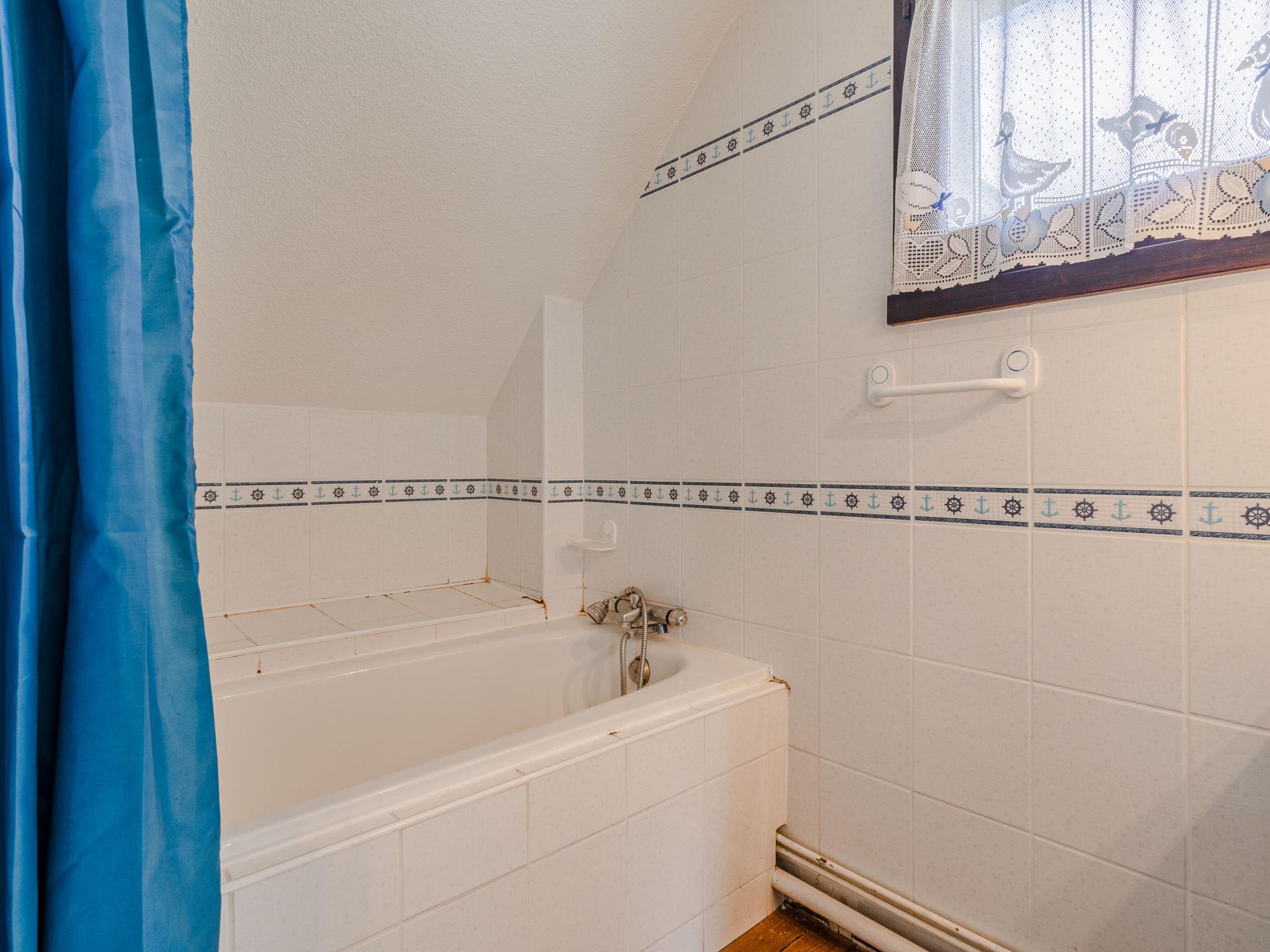 3-room terraced house 40 m2 on 2 levels, south facing position. Living/dining room with 1 double sofabed (130 cm, length 190 cm), TV (flat screen). Exit to the garden. Kitchenette (2 hot plates, oven, dishwasher, toaster, kettle, microwave, electric coffee machine) with dining table. Sep. WC. Boiler. Upper floor: 1 room with sloping ceilings with 1 x 2 bunk beds (90 cm, length 190 cm). 1 room with sloping ceilings with 1 french bed (140 cm, length 190 cm). Bathroom. Electric heating. Small terrace, garden 50 m2. Terrace furniture. Facilities: Internet (WiFi, extra). Parking space n 12. Please note: smoke alarm.