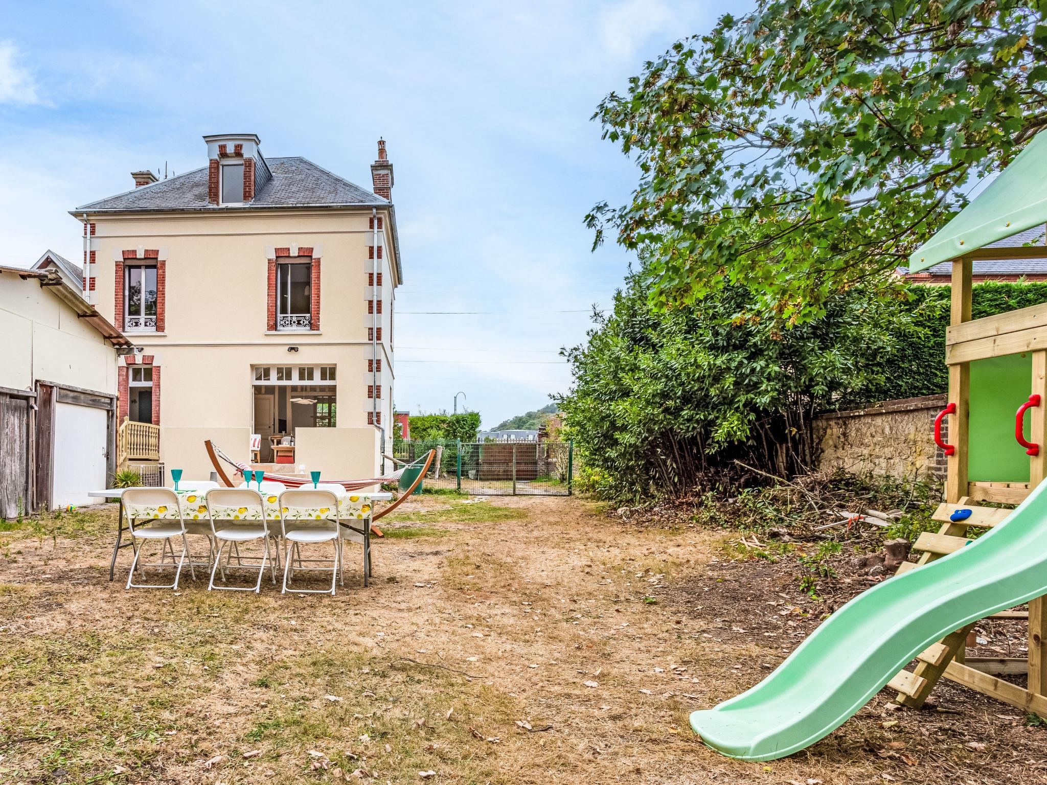 Manor house "Villa Amour", 2 storeys. In the resort 600 m from the centre of Dives sur Mer, 1.2 km from the sea, 1.2 km from the beach. Private: garden 700 m2 (fenced). Shop, grocery 600 m, supermarket 1.6 km, restaurant, bar 600 m, bakery 750 m, café 600 m, bus stop "Roseraie" 400 m, sandy beach 1.2 km, thermal baths "Thalazur Cabourg" 3.2 km. Sports harbour 650 m, golf course (9 hole) 3 km, indoor tennis centre 2.9 km, minigolf 3.3 km, riding stable 5.2 km. Nearby attractions: Deauville 21 km, Honfleur 47 km, Caen 33 km.