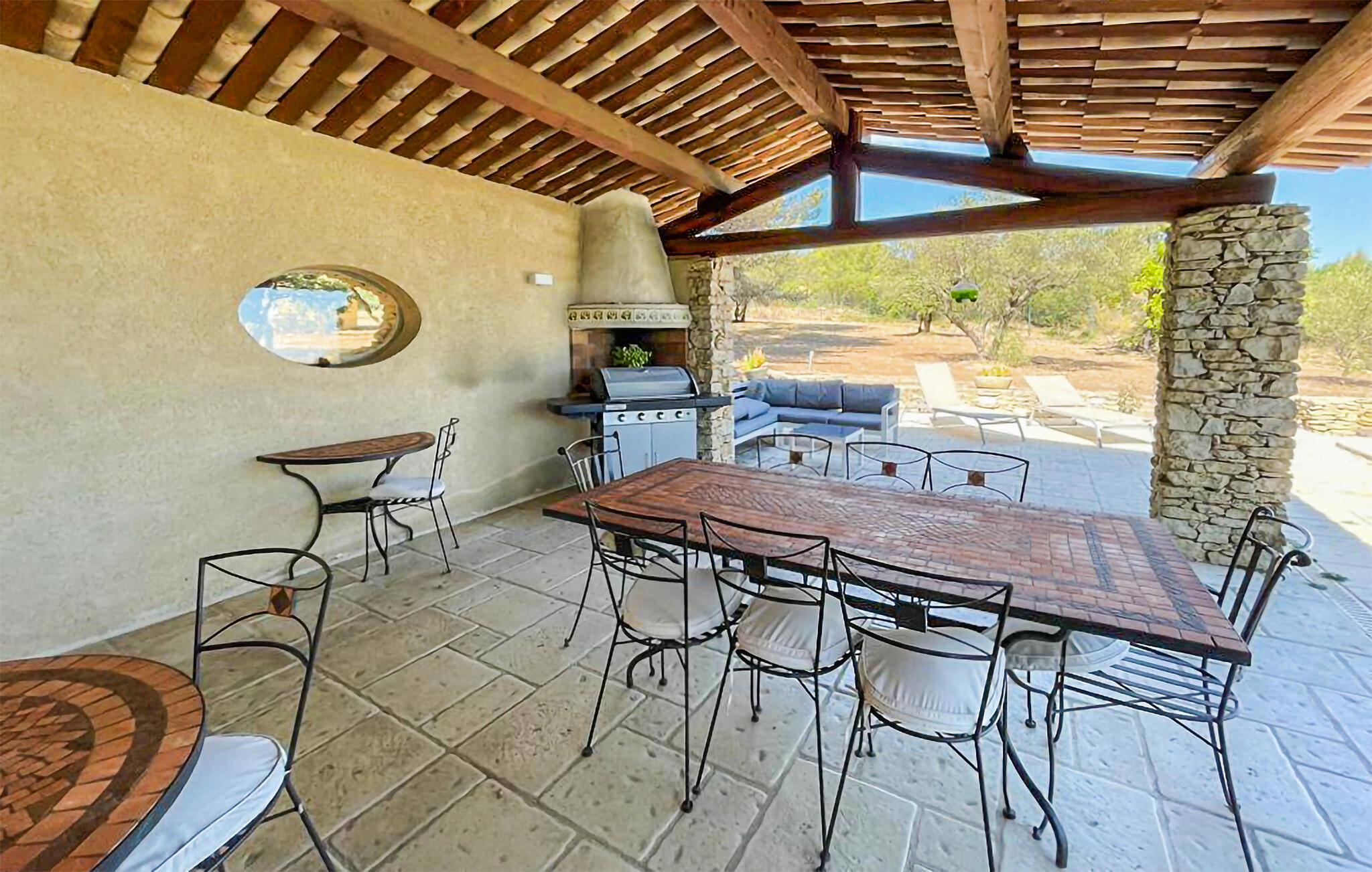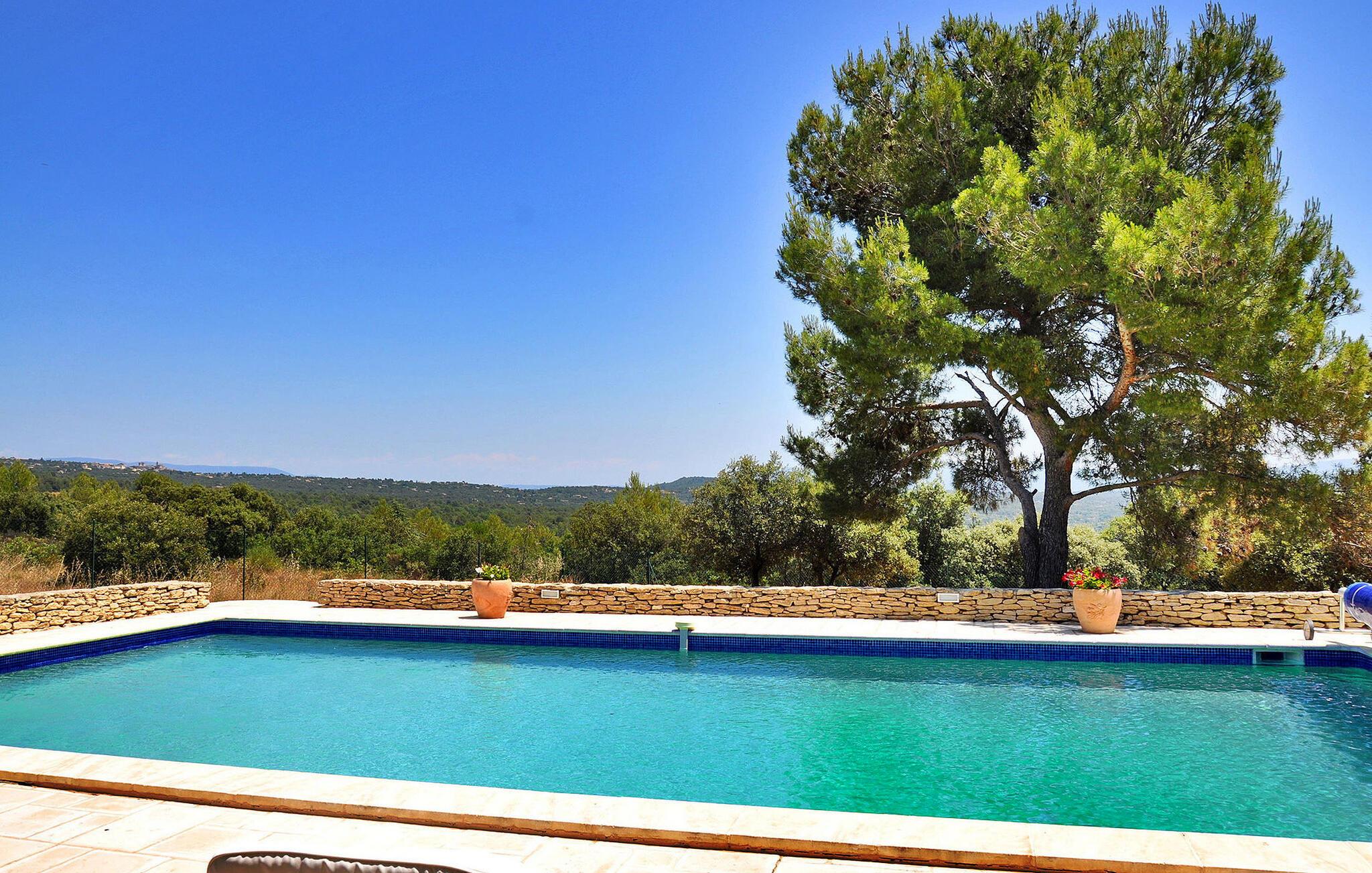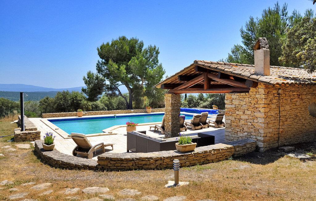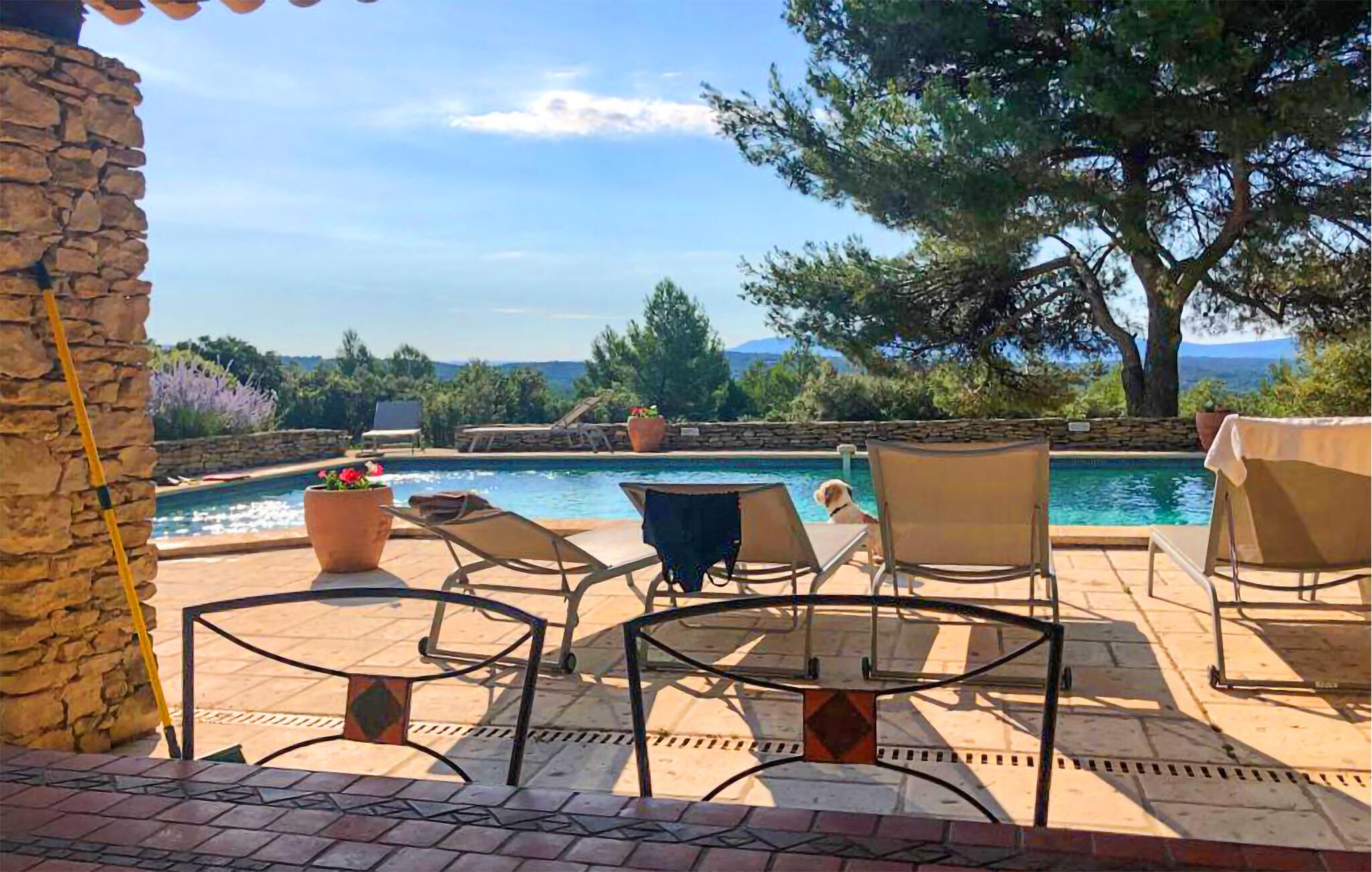 Oplev denne charmerende ferievilla i Cabrières d'Avignon, perfekt beliggende mellem Gordes og Isle sur la Sorgue, med en fantastisk udsigt over Luberon. Gemt i et fredfyldt, lukket område, sikrer denne villa et roligt, men tilgængeligt feriested. Villaens indbydende funktioner inkluderer et veludstyret poolhus med sommerkøkken, gasgrill og praktisk brusebad med toilet, perfekt til dejlige udendørs sammenkomster. Inde i villaen finder du et fuldt udstyret køkken og en rummelig spiseplads, der åbner ud til terrassen. Det komfortable opholdsområde suppleres af en pejs, som er ideel til hyggelige aftener. Træd udenfor for at nyde den ekspansive lukkede ejendom, omfavnet af cederskoven. Du vil finde rigelig parkering, en petanqueplads og en carport for ekstra bekvemmelighed. Stjerneattraktionen er den opvarmede private pool, der byder på et pragtfuldt landskab og udsigt over landsbyen Gordes. Poolhuset, et knudepunkt for fritid, har et sommerkøkken, gasgrill og et dejligt opholdsområde til mindeværdige øjeblikke med dine kære. Ejendommen er beliggende 1 km fra Cabrieres i hjertet af et begrænset område (kun adgang for beboere) "Foret des Cèdres" (Cederskoven). Forskellige vandre- og cykelstier i skoven i nærheden af ejendommen. Cabrieres d'Avignon ligger tæt på berømte landsby Gordes. Dette område er især kendt for "Bories": Små tørstenshytter fra det 18. århundrede. Ejendommen er beliggende nær Gordes og andre charmerende landsbyer i Luberon: Bonnieux, Ménerbes, Lacoste. I nærheden kan du også besøge: Fontaine de Vaucluse, Isle sur la Sorgue Nyd din ferie i Vaucluse i Provence.