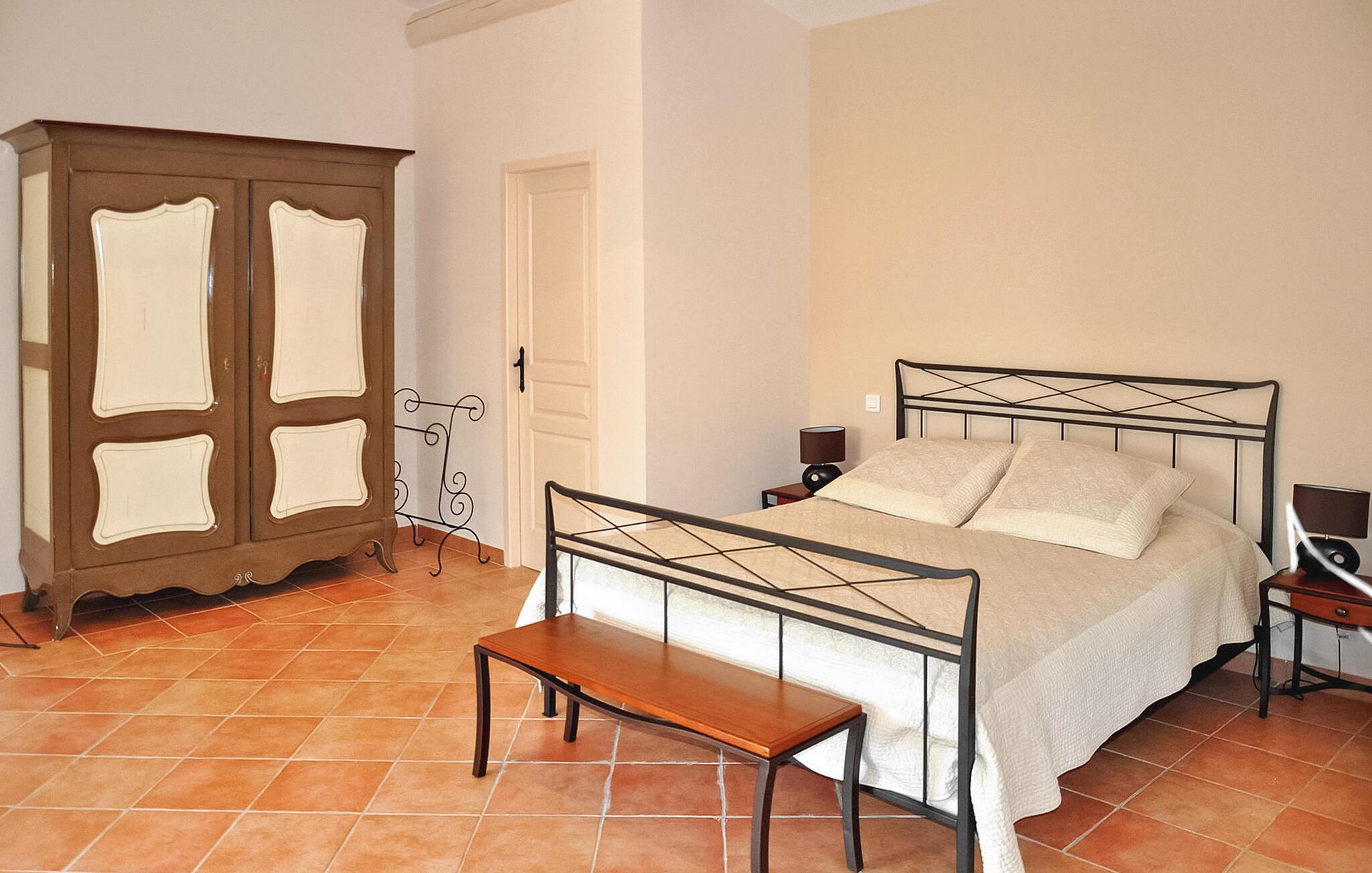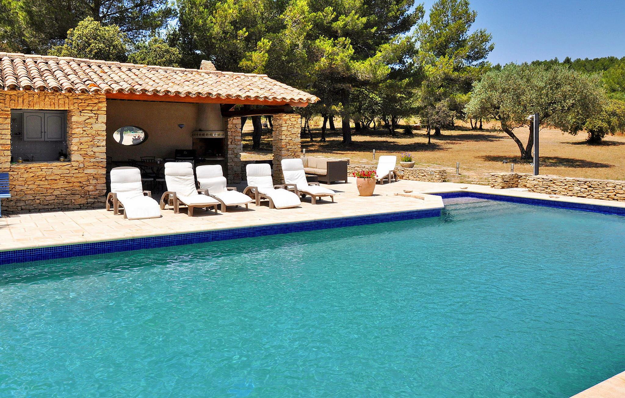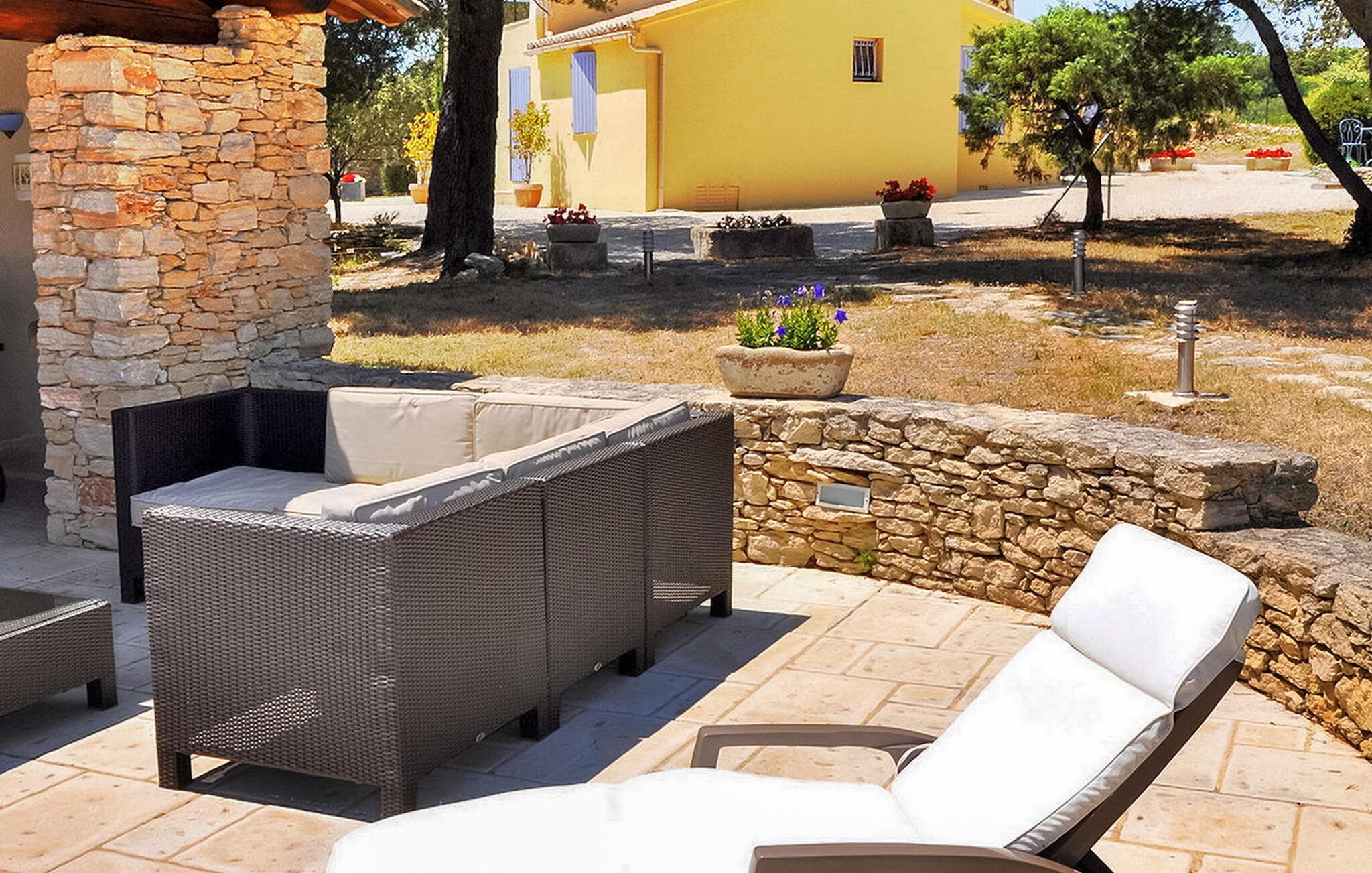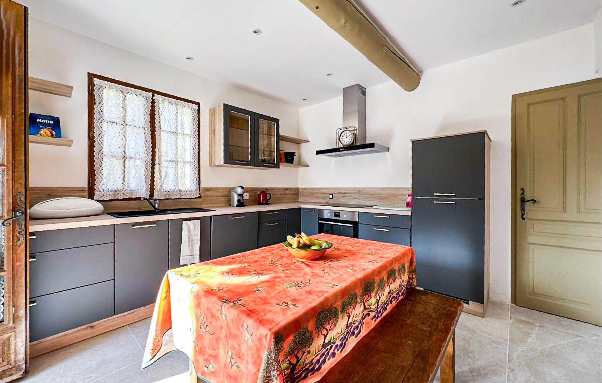 Oplev denne charmerende ferievilla i Cabrières d'Avignon, perfekt beliggende mellem Gordes og Isle sur la Sorgue, med en fantastisk udsigt over Luberon. Gemt i et fredfyldt, lukket område, sikrer denne villa et roligt, men tilgængeligt feriested. Villaens indbydende funktioner inkluderer et veludstyret poolhus med sommerkøkken, gasgrill og praktisk brusebad med toilet, perfekt til dejlige udendørs sammenkomster. Inde i villaen finder du et fuldt udstyret køkken og en rummelig spiseplads, der åbner ud til terrassen. Det komfortable opholdsområde suppleres af en pejs, som er ideel til hyggelige aftener. Træd udenfor for at nyde den ekspansive lukkede ejendom, omfavnet af cederskoven. Du vil finde rigelig parkering, en petanqueplads og en carport for ekstra bekvemmelighed. Stjerneattraktionen er den opvarmede private pool, der byder på et pragtfuldt landskab og udsigt over landsbyen Gordes. Poolhuset, et knudepunkt for fritid, har et sommerkøkken, gasgrill og et dejligt opholdsområde til mindeværdige øjeblikke med dine kære. Ejendommen er beliggende 1 km fra Cabrieres i hjertet af et begrænset område (kun adgang for beboere) "Foret des Cèdres" (Cederskoven). Forskellige vandre- og cykelstier i skoven i nærheden af ejendommen. Cabrieres d'Avignon ligger tæt på berømte landsby Gordes. Dette område er især kendt for "Bories": Små tørstenshytter fra det 18. århundrede. Ejendommen er beliggende nær Gordes og andre charmerende landsbyer i Luberon: Bonnieux, Ménerbes, Lacoste. I nærheden kan du også besøge: Fontaine de Vaucluse, Isle sur la Sorgue Nyd din ferie i Vaucluse i Provence.