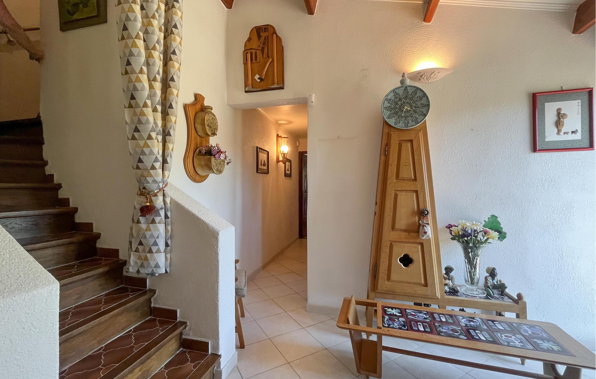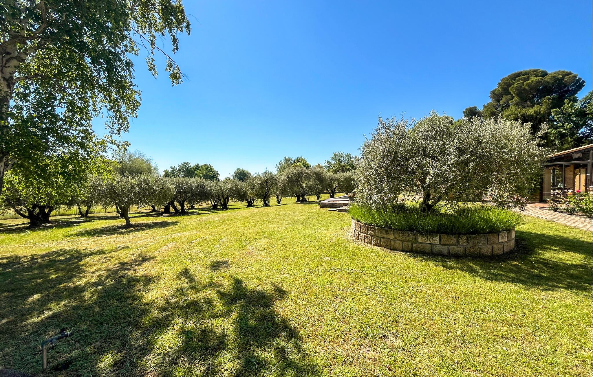 Det velholdte udendørsområde er perfekt til at nyde det solrige klima fuldt ud. Tag en afslappende svømmetur i poolen om morgenen, læs i skyggen af ??olivenlunden, lad børnene boltre sig på den rummelige græsplæne i den beskyttede have, og brug pizzaovnen eller grillen til stemningsfulde måltider på den smukke veranda.