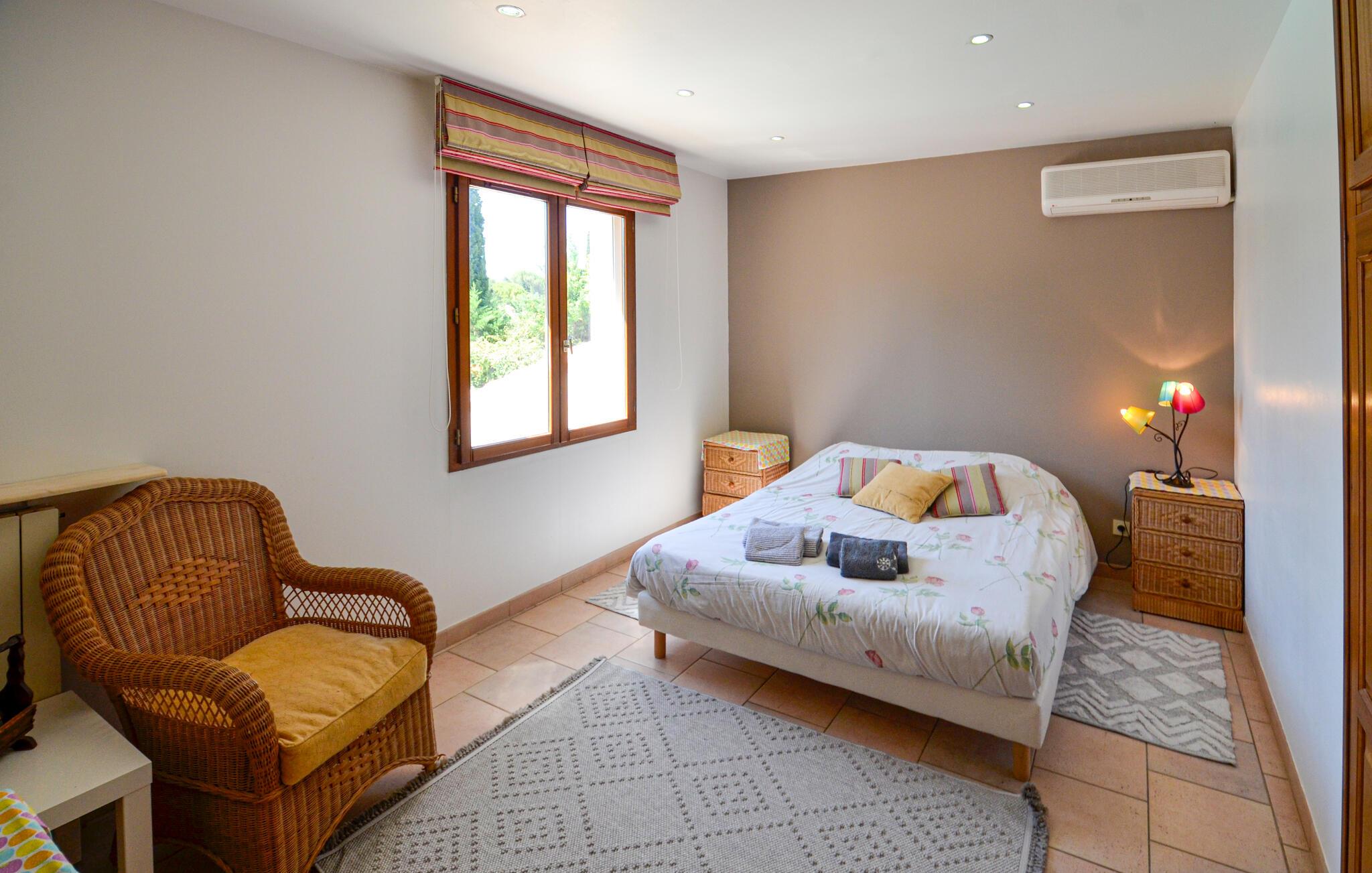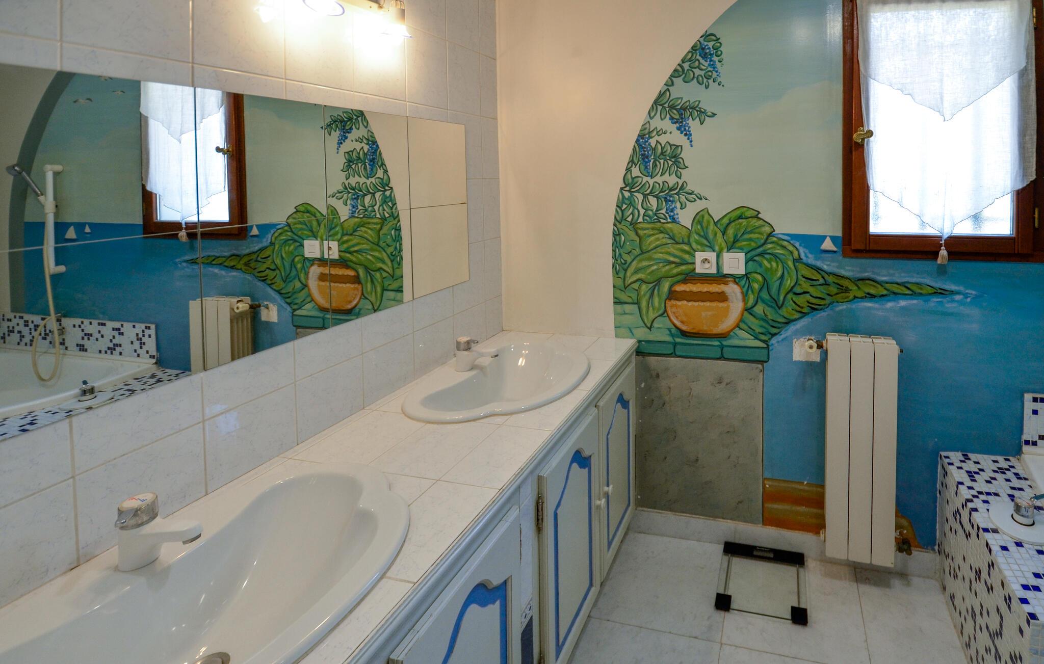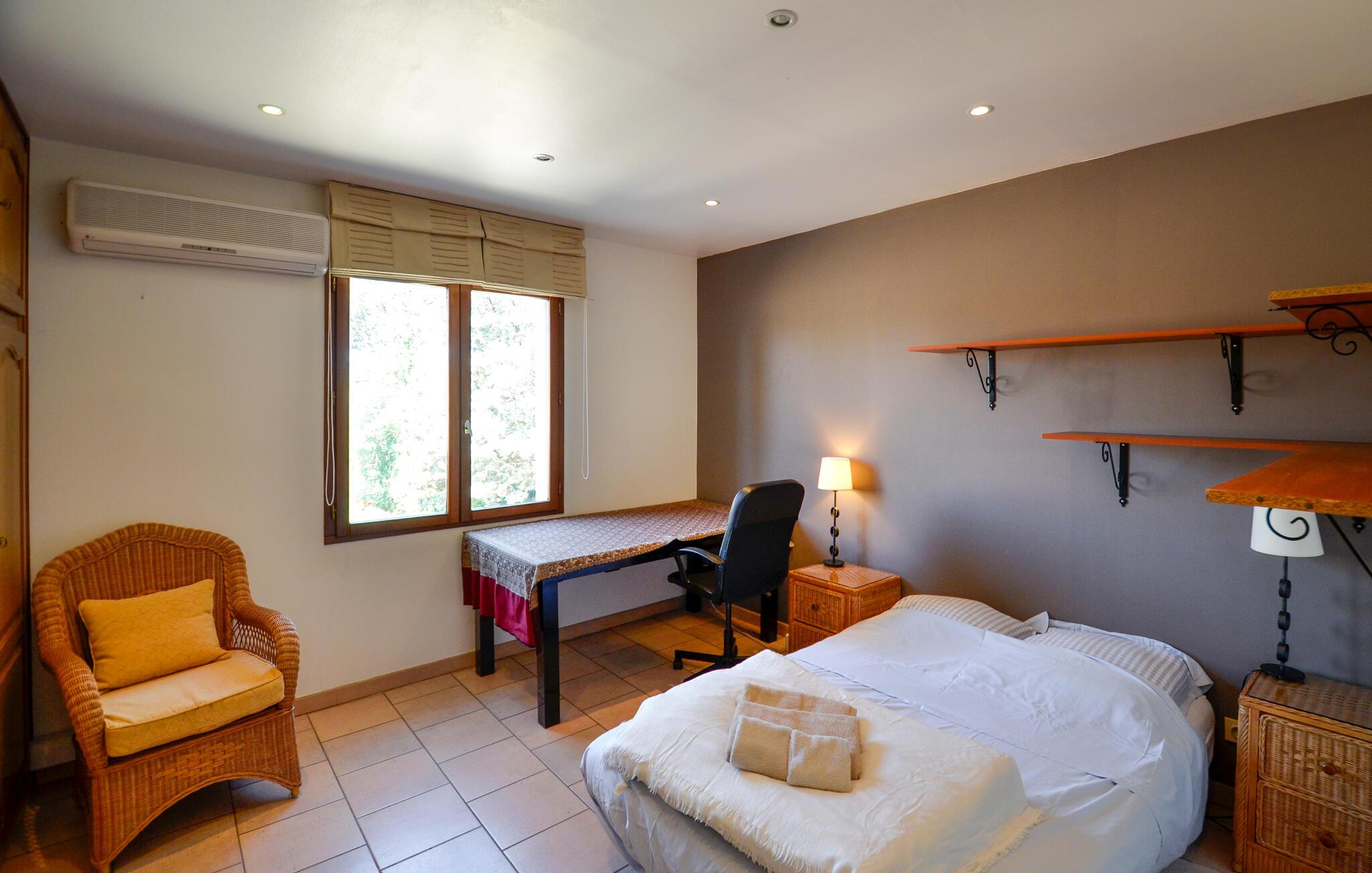 Dette fortryllende feriehus tilbyder masser af plads til en afslappende og foryngende ferie i Provence, selv med en større familie eller en gruppe venner. Eksperimentér med friske krydderurter i det rummelige køkken under hyggelige madlavningsaftener og glæd jer til stemningsfulde måltider i den indbydende spisestue. Find sammen til sjove spilleaftener i stuen eller træk jer tilbage til jeres yndlingshjørne med en god bog.