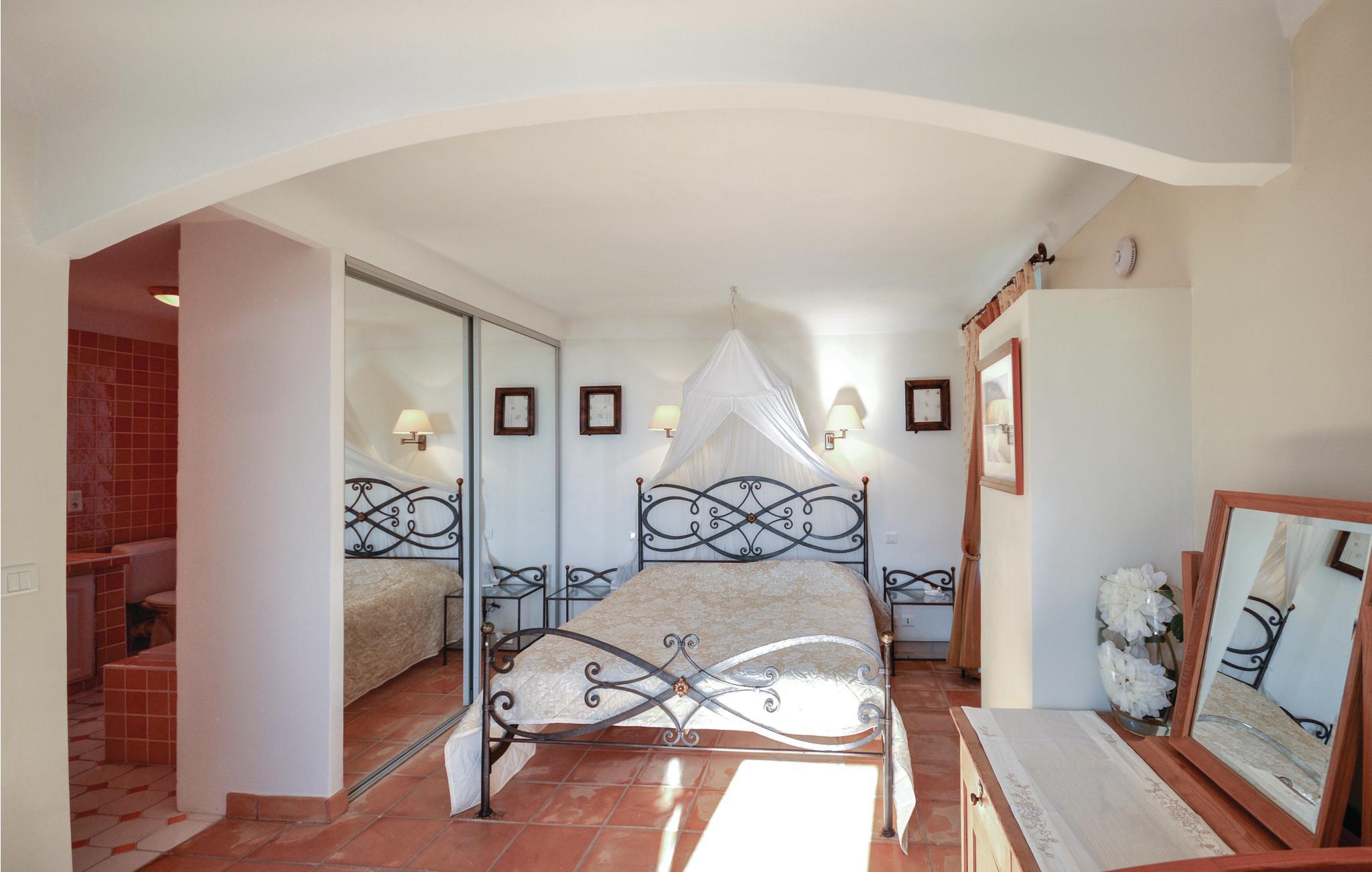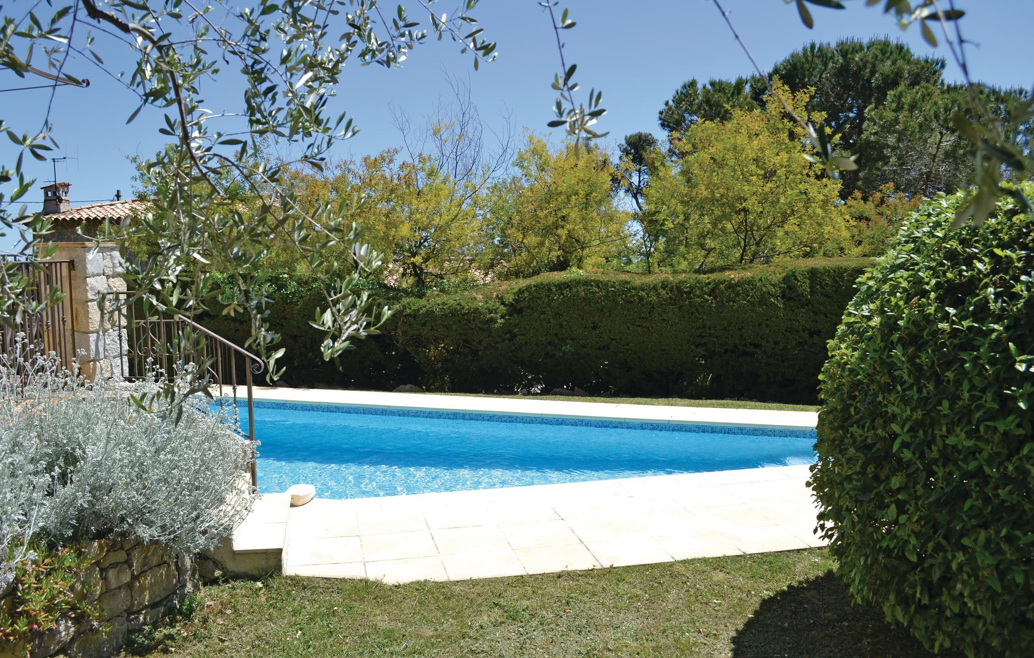 Dette feriehus er smagfuldt indrettet og møbleret. Det har beliggenhed på en fredelig bakketop i en landsby, hvor der er fantastisk udsigt. Huset har en privat swimmingpool, en vidunderlig have og en overdækket terrasse, hvor I kan nyde dagens måltider. Værelserne er rummelige, lyse og veludstyrede med diverse faciliteter. Huset ligger inden for en rimelig gåafstand til en landsby samt en kort køretur fra parfumebyen Grasse. Lidt længere væk ligger den spektakulære sø i Saint Cassien, hvor der er strand. Oplev også det kendte Antibes og Juan les Pins. Der er adskillige golfbaner inden for 30 minutters kørsel (den nærmeste er inden for 10 minutter), og en tennisklub i udkanten af landsbyen Cabris. Hvis I ønsker at shoppe er det et must at besøge Monaco, Nice eller endda tage til Italien, da den italienske grænse kun ligger en times kørsel væk. Nærmeste butikker, barer, caféer og restauranter er inden for 600 meter, men nærmeste strand er 35 km væk.