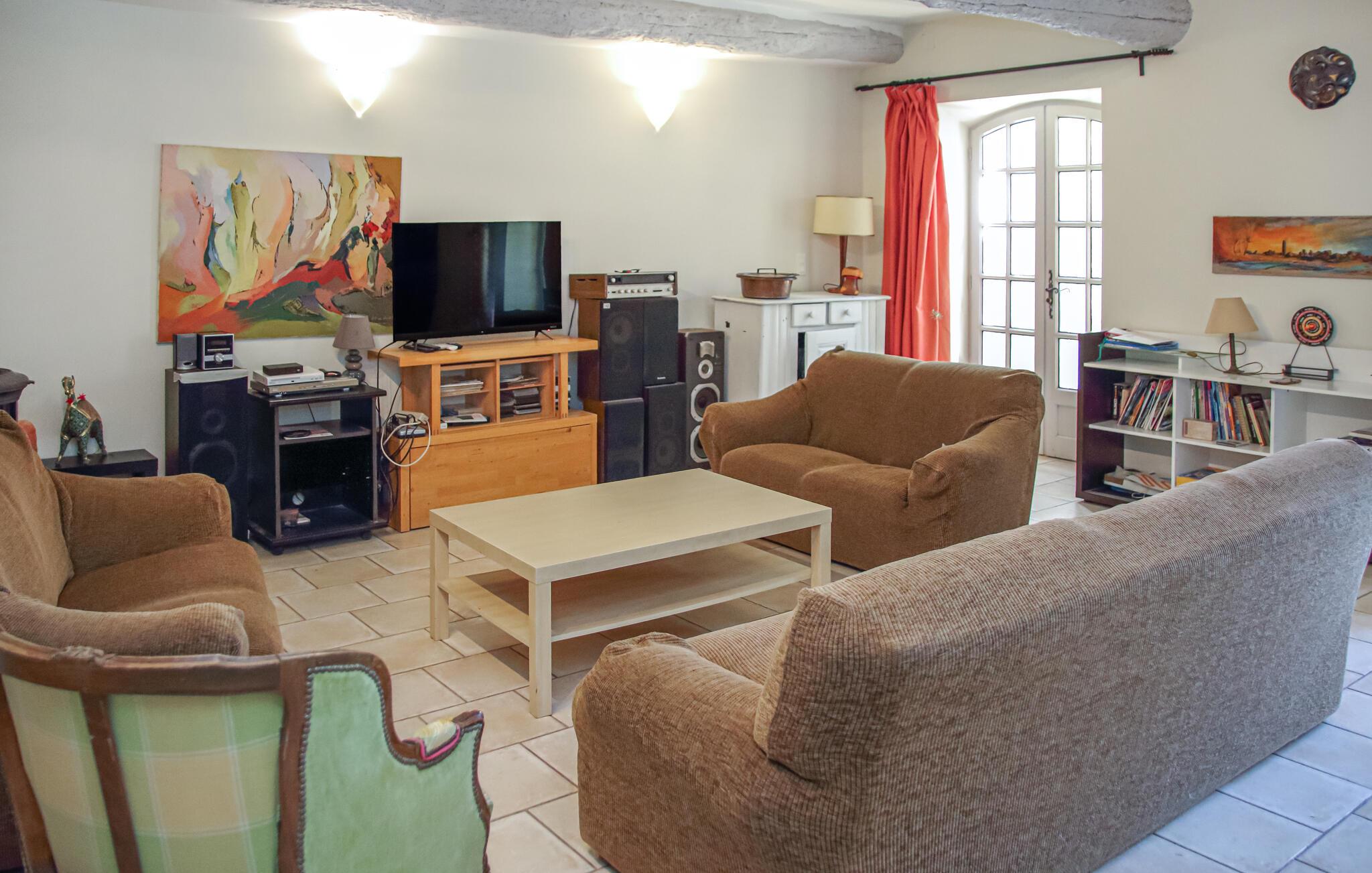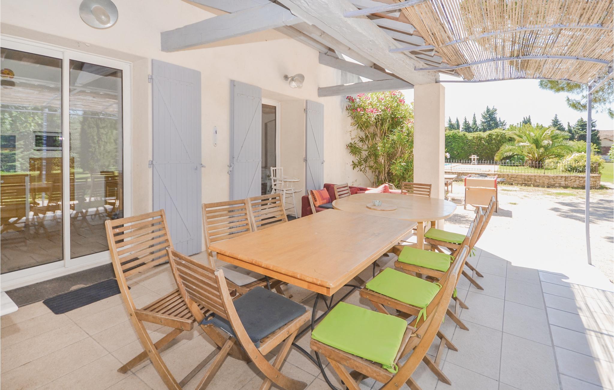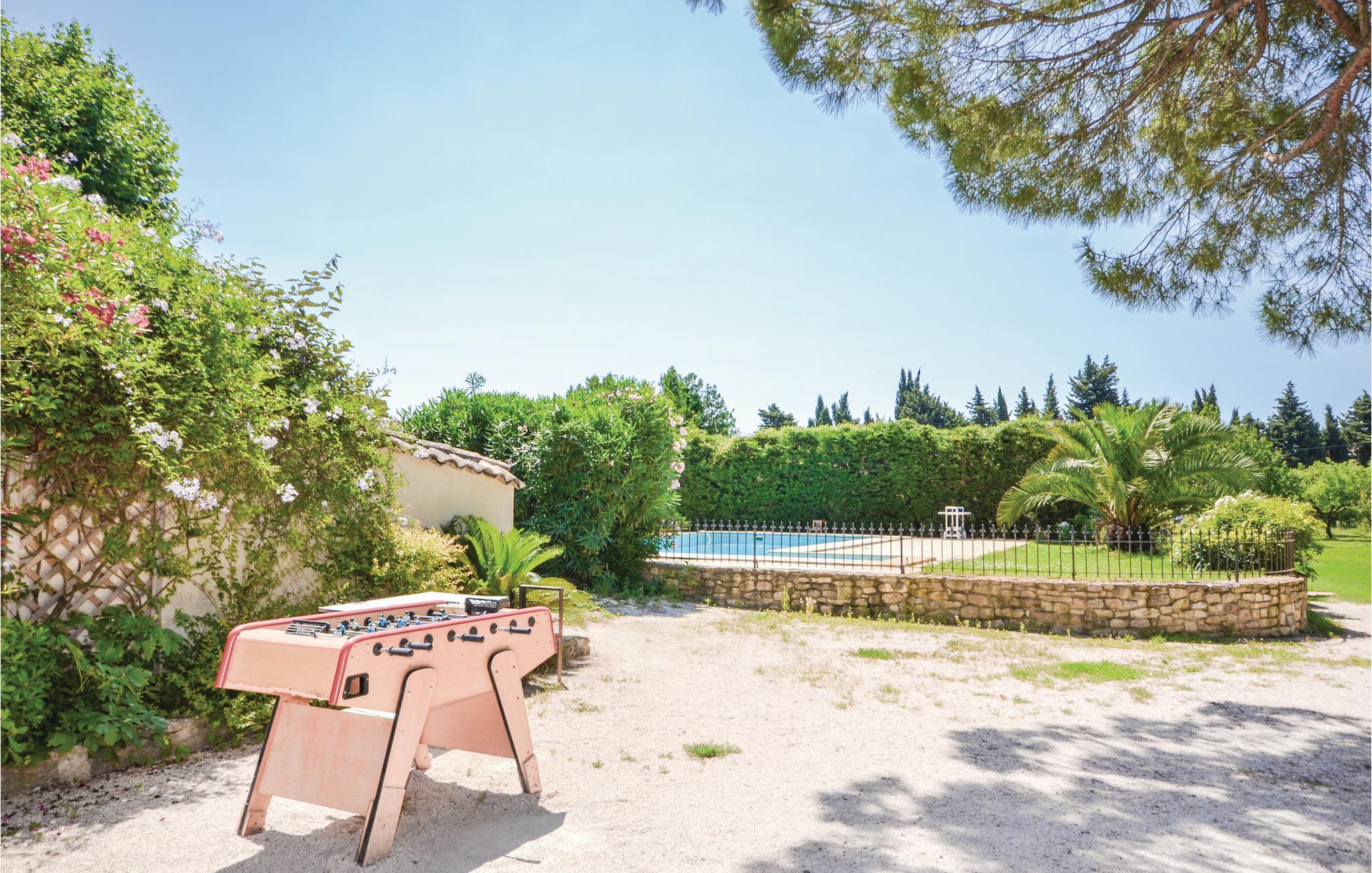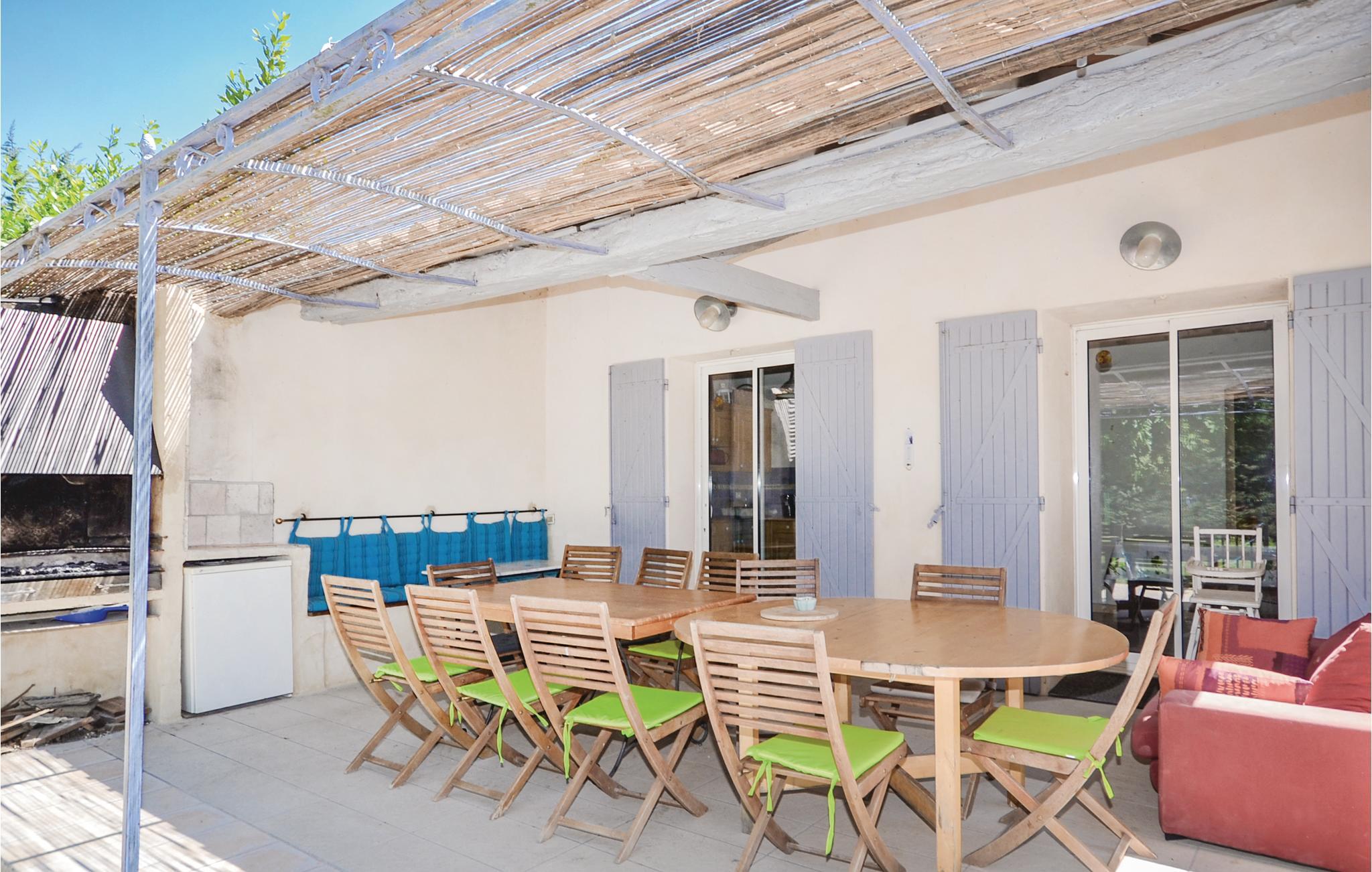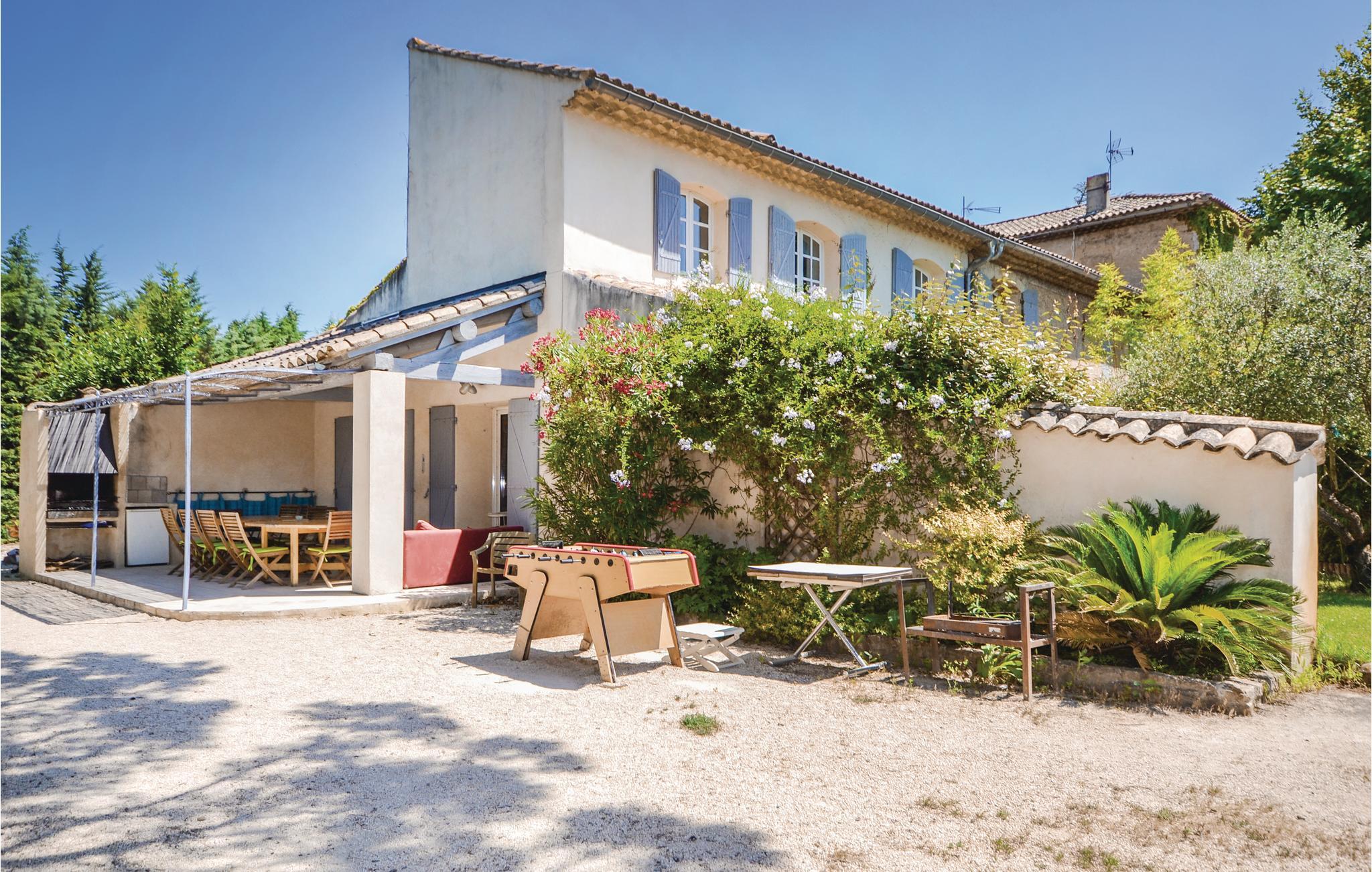 Lyst til sol, varme og Savoir-vivre i Vaucluse? Så er dette familievenlige feriehus med privat pool i landlige omgivelser sikkert det helt rigtige. Det er på hele 210 m² hvad der gør det muligt for 15 personer at holde ferie i Orange med god plads til alle. Slap af i haven med ture i poolen og slut dagen af med noget godt fra grillen. Perfekt beliggenhed, når I vil besøge Orange og Avignon, som er to af de skønneste byer i Vaucluse. Til centrum i Orange er der 3,5 km. Her er der først og fremmest et imponerende amfiteater fra romertiden, der nu danner passende rammer om den årlige klassiske musikfestival Les Chorégies. Se også den monumentale romerske port med tre buer samt museet for kunst og historie. Der er 23 km til Avignon, med sit majestætiske oprindelige pavepalads og den berømte Saint-Bénézetbro. Gå gennem markedshallen med mange lækre lokale produkter, Rue des Teinturiers og parken på klippeforspringet Rocher des Doms. Hvert år i juli afholder byen festival med teater, dans og sang der kan opleves overalt på gader, i gårde og på pladser. Vil I dyrke sport er det også nemt: Golfbane (8 km) og I kan vandre, køre mountainbike og dyrke vansport i fritidsparken Splashworld (25 km). Ejer bor i den anden halvdel af huset. Jernbanelinje med højhastighedstog (TGV) forløber 500 m fra huset.