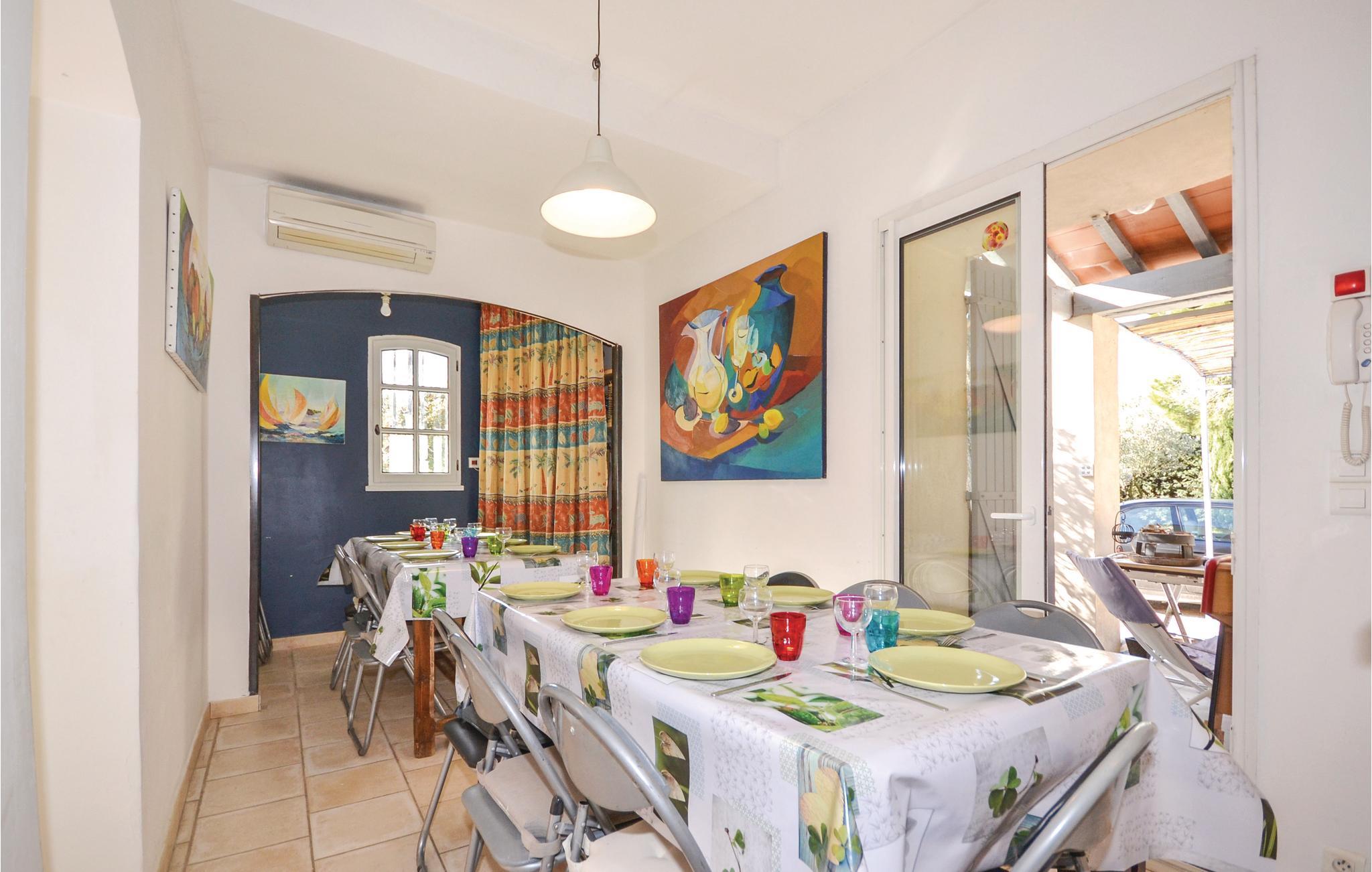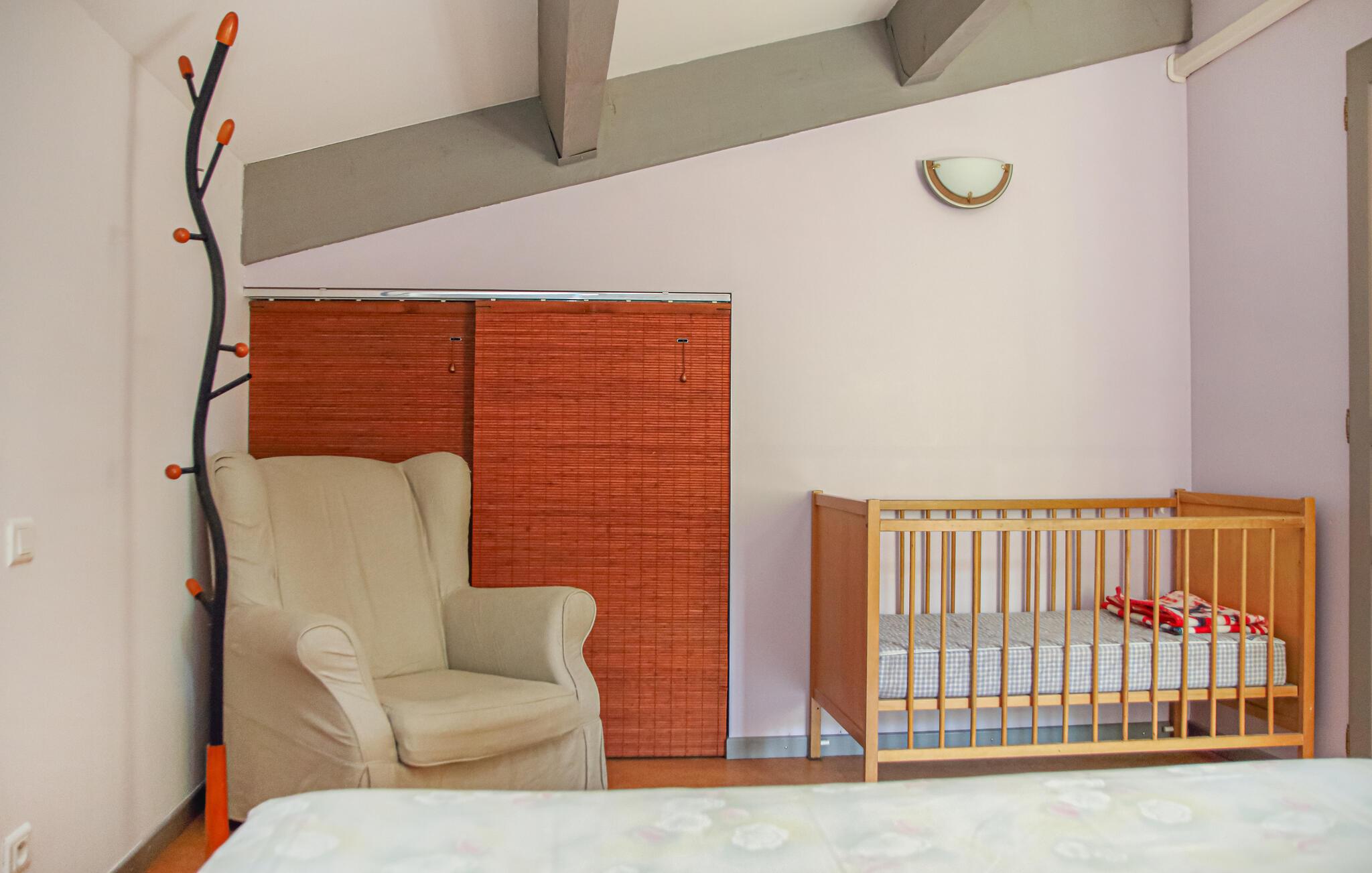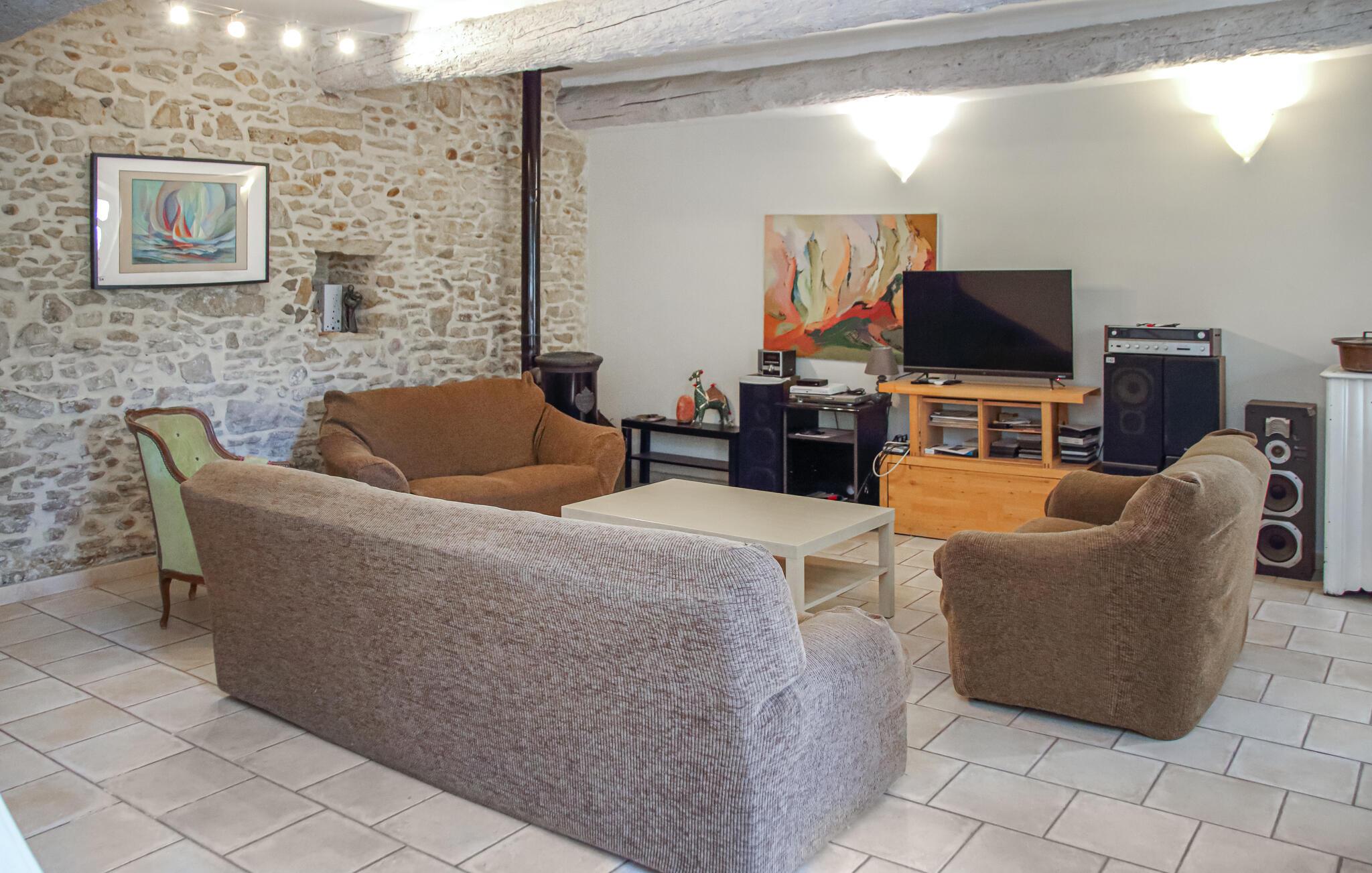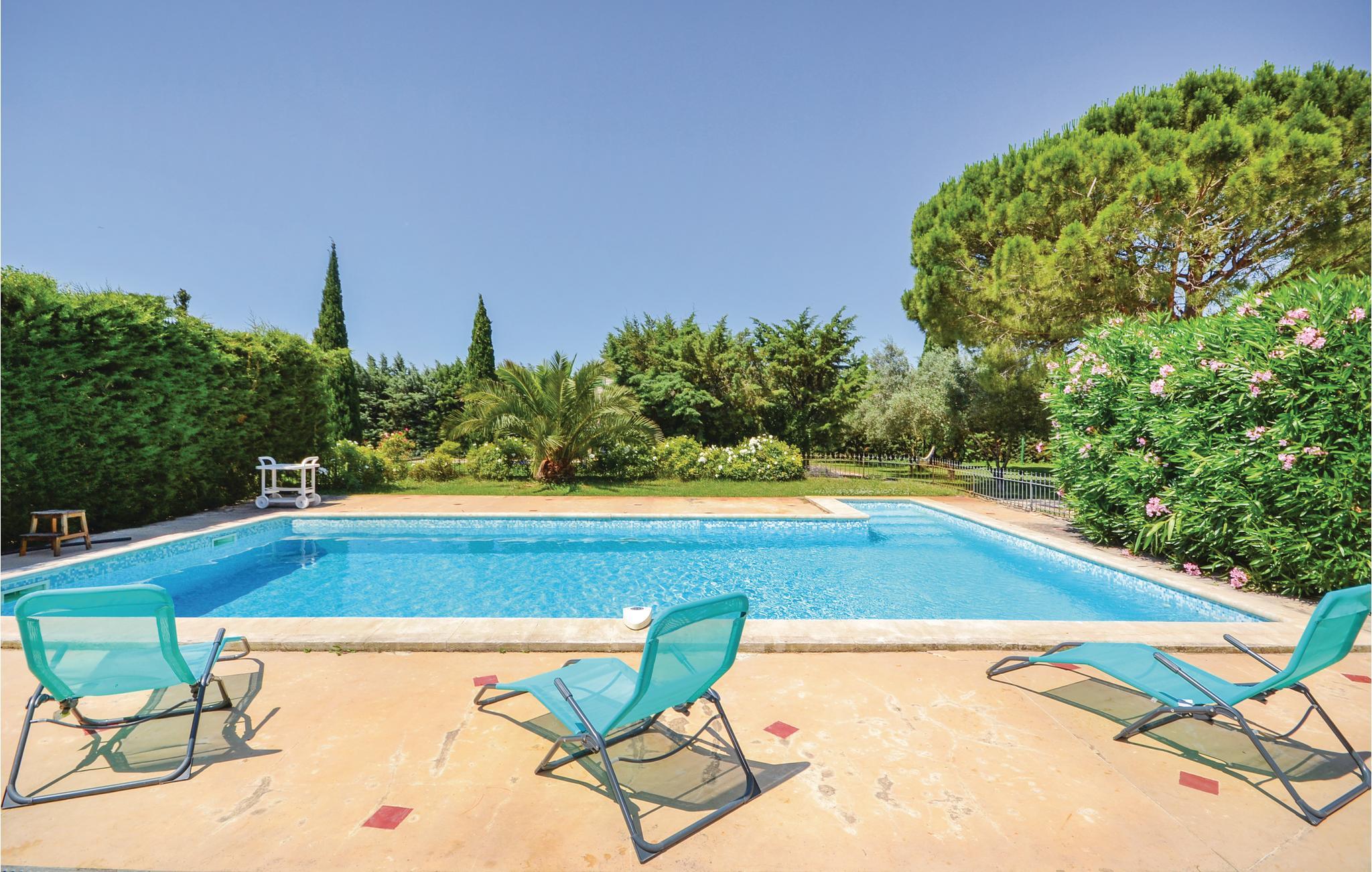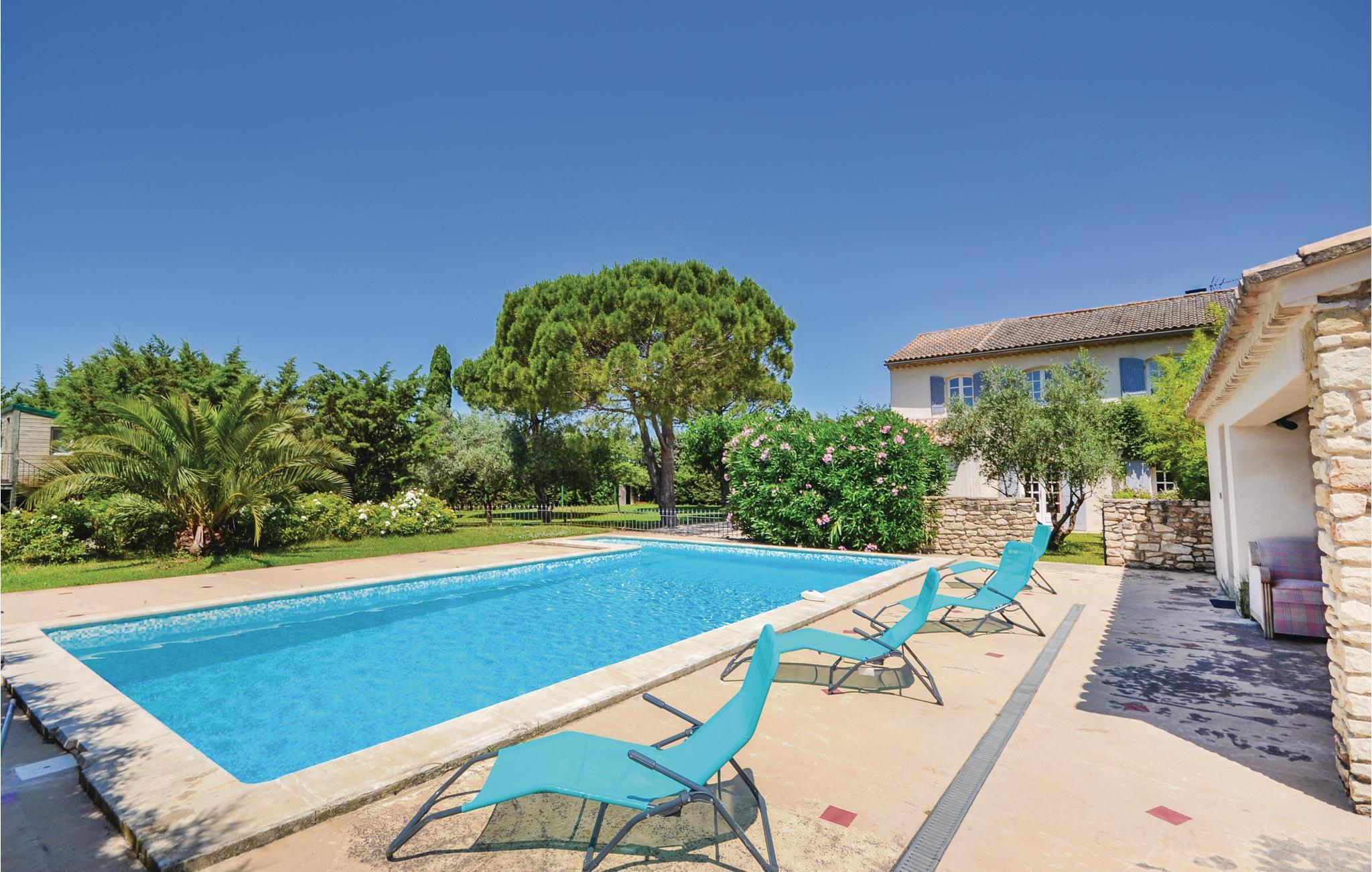 Lyst til sol, varme og Savoir-vivre i Vaucluse? Så er dette familievenlige feriehus med privat pool i landlige omgivelser sikkert det helt rigtige. Det er på hele 210 m² hvad der gør det muligt for 15 personer at holde ferie i Orange med god plads til alle. Slap af i haven med ture i poolen og slut dagen af med noget godt fra grillen. Perfekt beliggenhed, når I vil besøge Orange og Avignon, som er to af de skønneste byer i Vaucluse. Til centrum i Orange er der 3,5 km. Her er der først og fremmest et imponerende amfiteater fra romertiden, der nu danner passende rammer om den årlige klassiske musikfestival Les Chorégies. Se også den monumentale romerske port med tre buer samt museet for kunst og historie. Der er 23 km til Avignon, med sit majestætiske oprindelige pavepalads og den berømte Saint-Bénézetbro. Gå gennem markedshallen med mange lækre lokale produkter, Rue des Teinturiers og parken på klippeforspringet Rocher des Doms. Hvert år i juli afholder byen festival med teater, dans og sang der kan opleves overalt på gader, i gårde og på pladser. Vil I dyrke sport er det også nemt: Golfbane (8 km) og I kan vandre, køre mountainbike og dyrke vansport i fritidsparken Splashworld (25 km). Ejer bor i den anden halvdel af huset. Jernbanelinje med højhastighedstog (TGV) forløber 500 m fra huset.