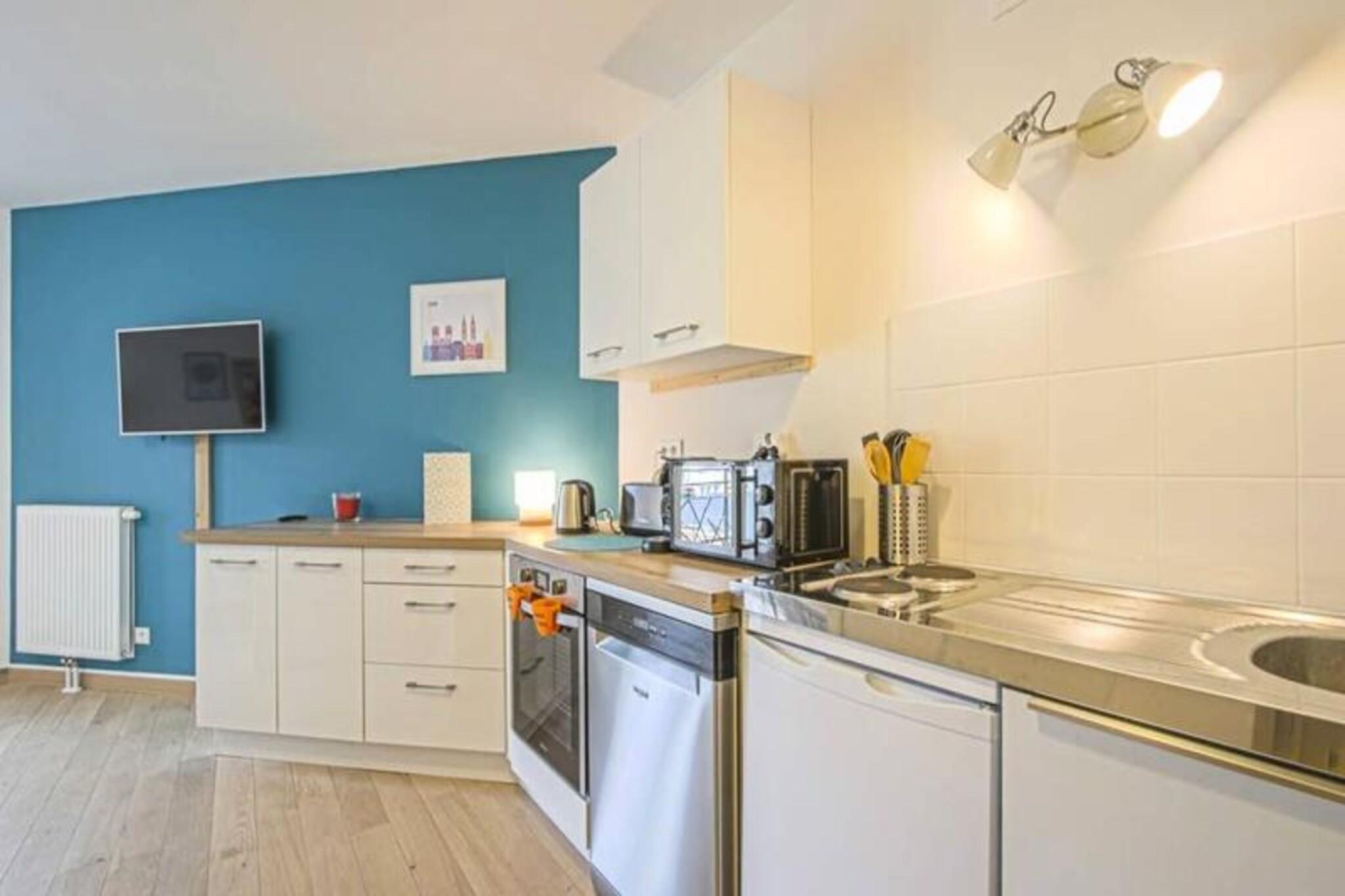 Dette charmerende studie, beliggende på 3. sal i en luksusbolig i Caen, tilbyder et fredeligt oase med naturlige omgivelser og en balkon. Det har en rummelig åben stue/soveværelse med en queen-size seng (160x200 cm) og UHD-tv. Ejendommen er ikke kæledyrsvenlig, og støjen skal holdes på et minimum mellem kl. og kl. 07.00 for kvarterets komfort. Sengetøj og lagner leveres, og et depositum på EURO 300 kræves ved ankomst. Lejligheden er ideelt beliggende ved foden af ??Port de Plaisance og tilbyder nem adgang til byens centrum og dens mange butikker, restauranter og Caen-marinaen. Placeringen er godt betjent af offentlig transport, herunder togstationen, sporvognen og bybusser, hvilket gør den perfekt til både fritids- og professionelle ophold. Kvalitetsrestauranter og lokale butikker ligger kun få skridt væk, hvilket sikrer en levende og fornøjelig oplevelse i Normandiet. Studiet er fuldt møbleret med et fuldt udstyret køkken, inklusive et køleskab, ovn, induktionskomfur og kaffemaskine, der giver alle hjemmets bekvemmeligheder. Det rummelige badeværelse har bruser, vaskeskab og opbevaringsplads. Gratis højhastigheds-Wi-Fi er tilgængelig i hele lejligheden, hvilket sikrer et problemfrit ophold.