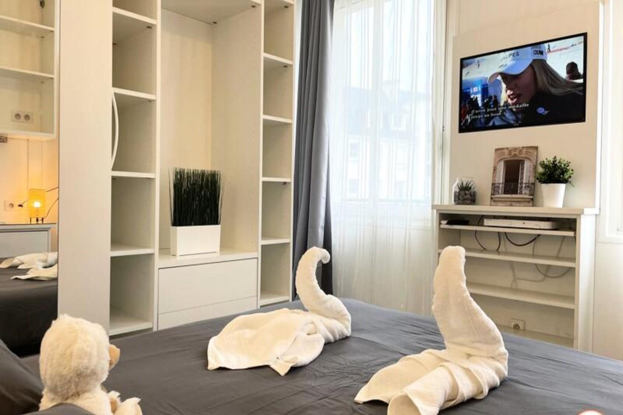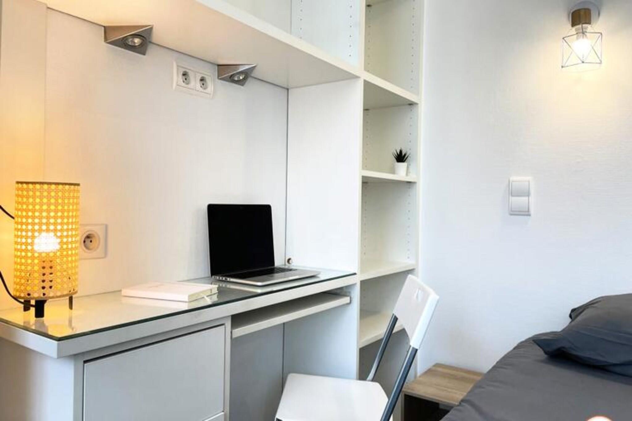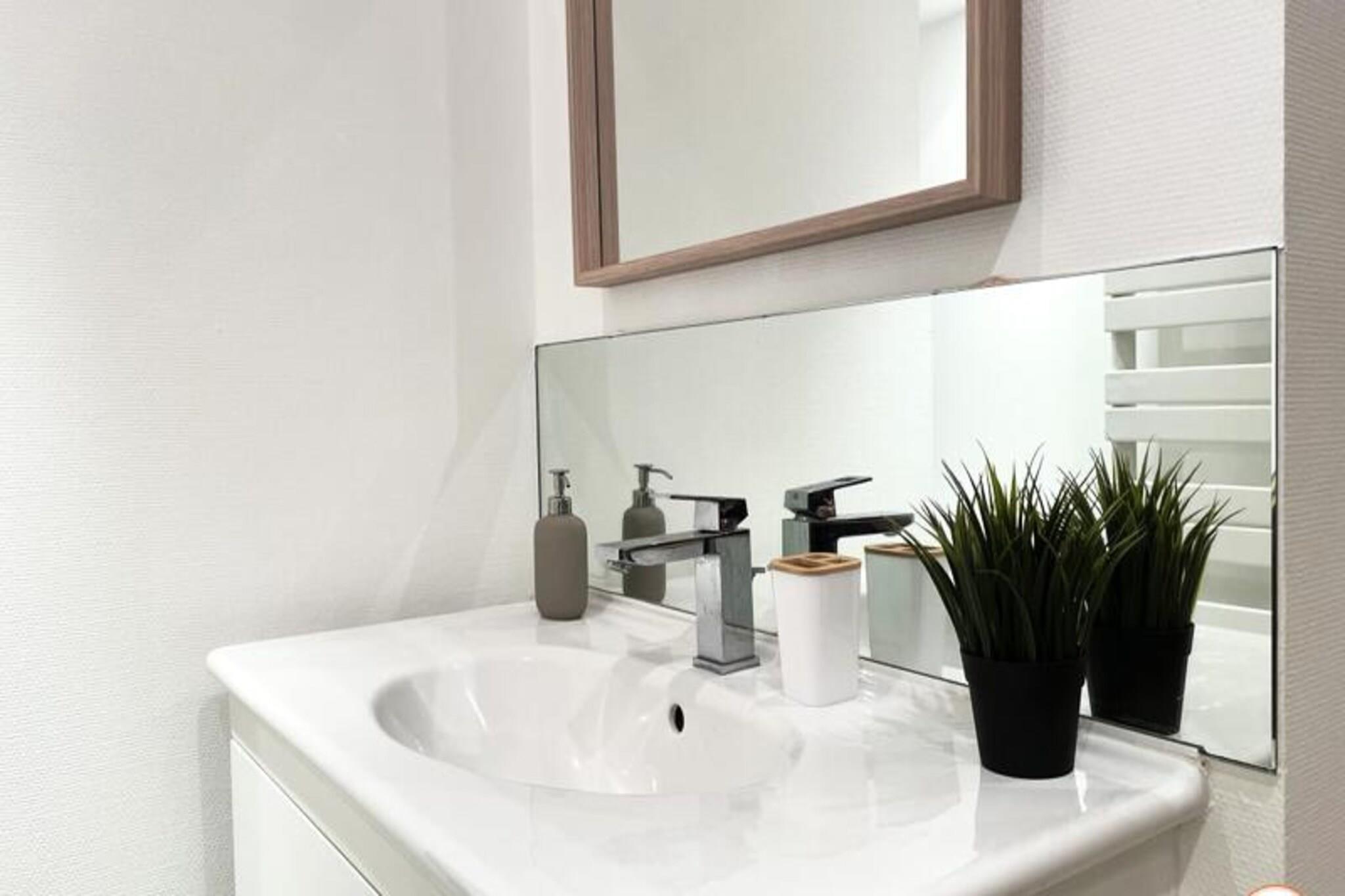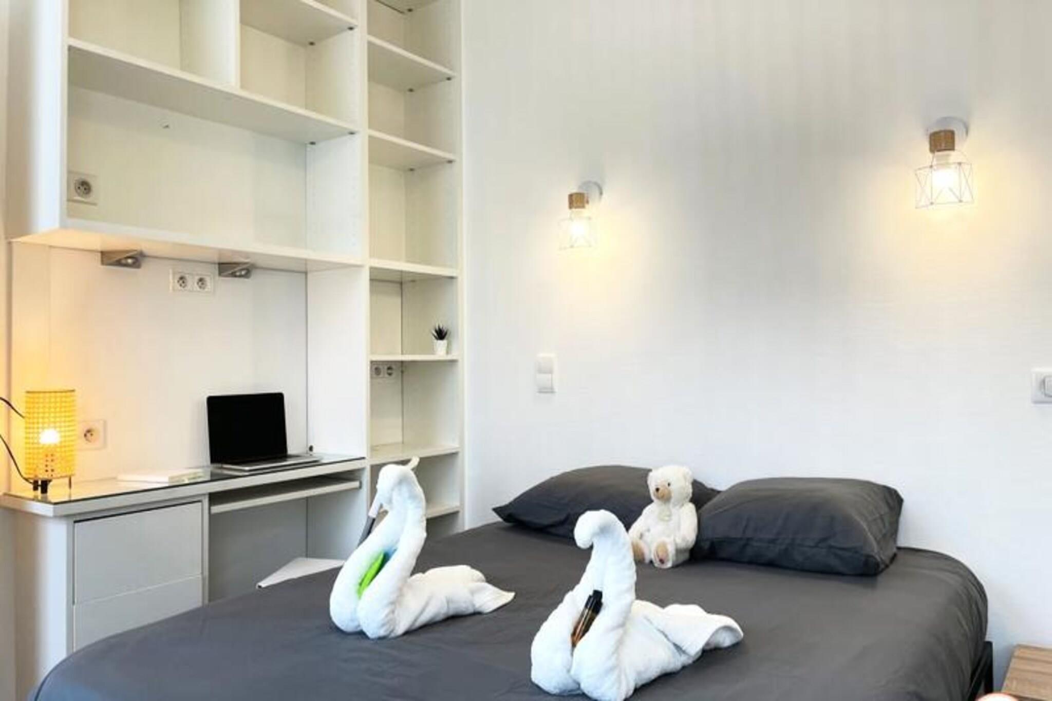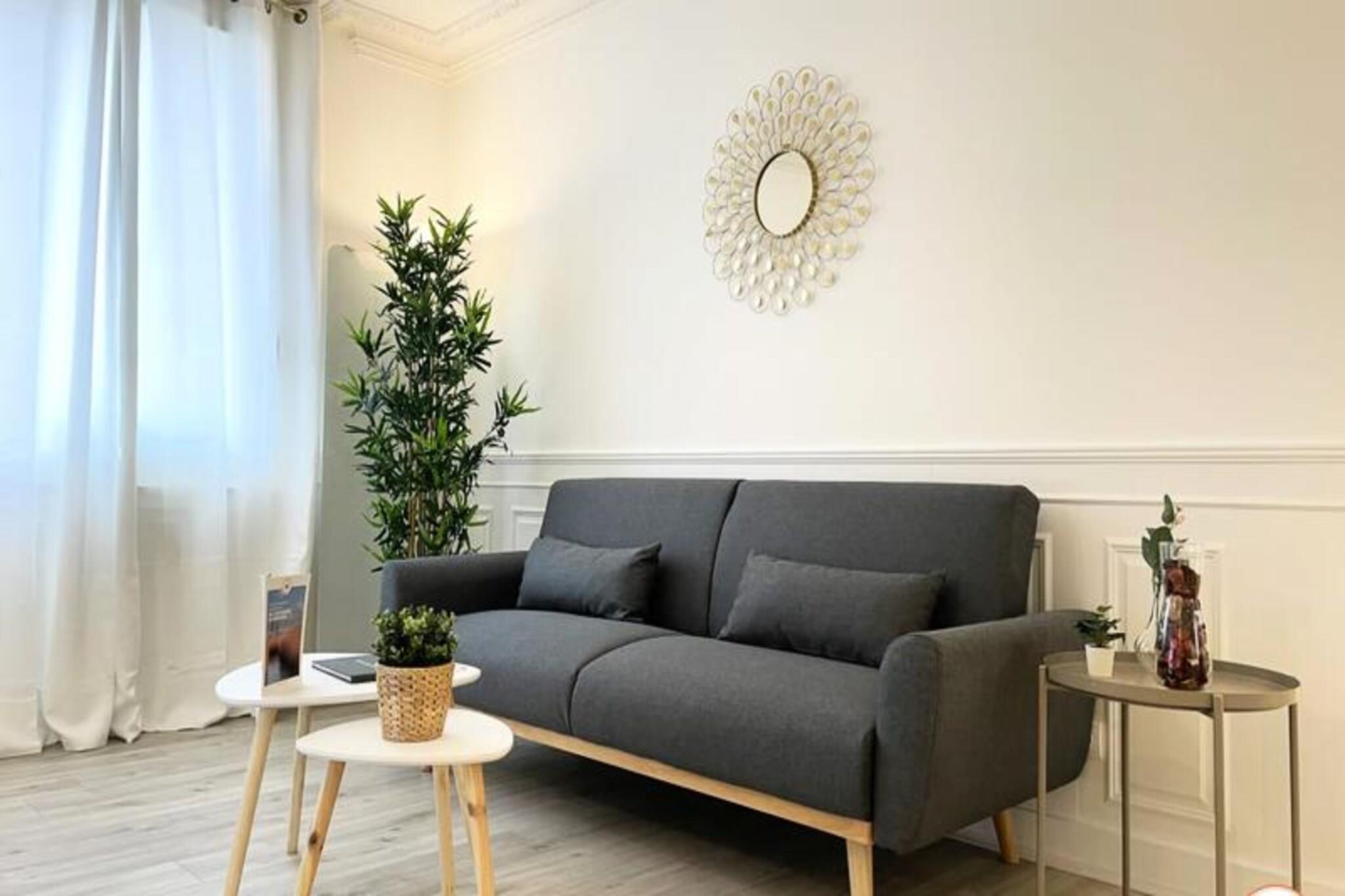Denne charmerende lejlighed, ideelt beliggende i hjertet af Caen, tilbyder et hyggeligt og behageligt ophold for op til 3 gæster. Soveværelset har en dobbeltseng af høj kvalitet med rigelig opbevaringsplads, mens opholdsstuen har en sovesofa, perfekt til en ekstra gæst. For ekstra komfort medfølger en topmadras. Lejligheden er ikke-ryger og tillader ikke kæledyr. Sengetøj, badehåndklæder, Wi-Fi og grundlæggende essentielle ting som te og kaffe er gratis, hvilket sikrer et afslappende ophold. Lejligheden er beliggende ved foden af ??den pulserende Quai Vendeuvre, med nem adgang til byens hovedattraktioner. Det ligger kun en kort gåtur fra Leroy-tårnet, sporvognsstoppestedet Bernière/St Pierre og byens butikker, gourmetrestauranter og caféer. Den travle bymidte, fyldt med historiske steder og kulturelle steder, ligger kun få minutter væk, og byder på masser at udforske og nyde under dit ophold. Lejligheden er fuldt udstyret til et ophold med egen forplejning med åbent køkken med køleskab, ovn/mikroovn og kaffemaskine. Badeværelset har bruser og toilet. Selvom der ikke er privat parkering, er betalingsparkeringsmuligheder tilgængelige i nærheden. Ejendommen er perfekt til både fritids- og forretningsrejsende med et dedikeret arbejdsområde til fjernarbejde og et fuldt funktionelt køkken til tilberedning af dine måltider.