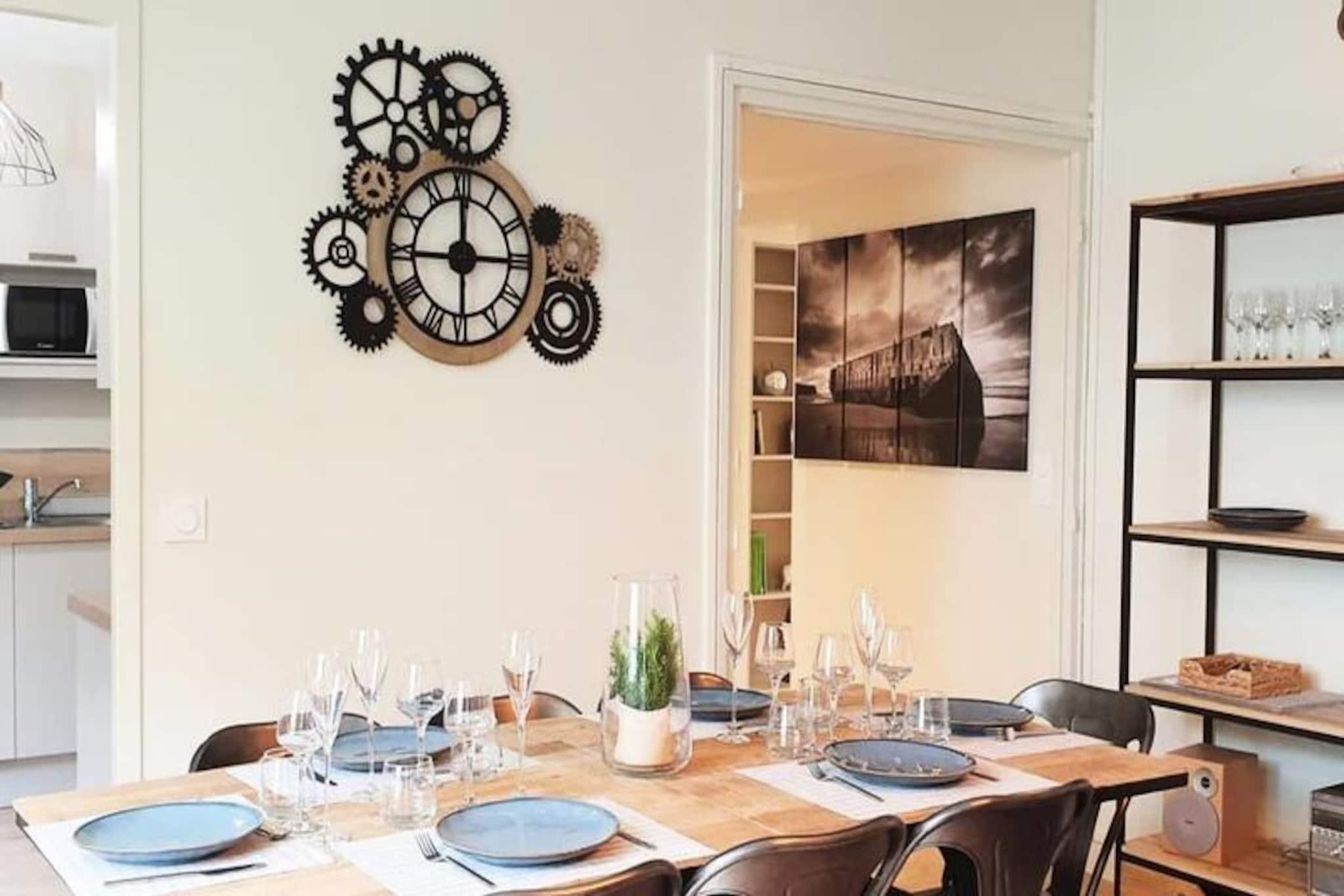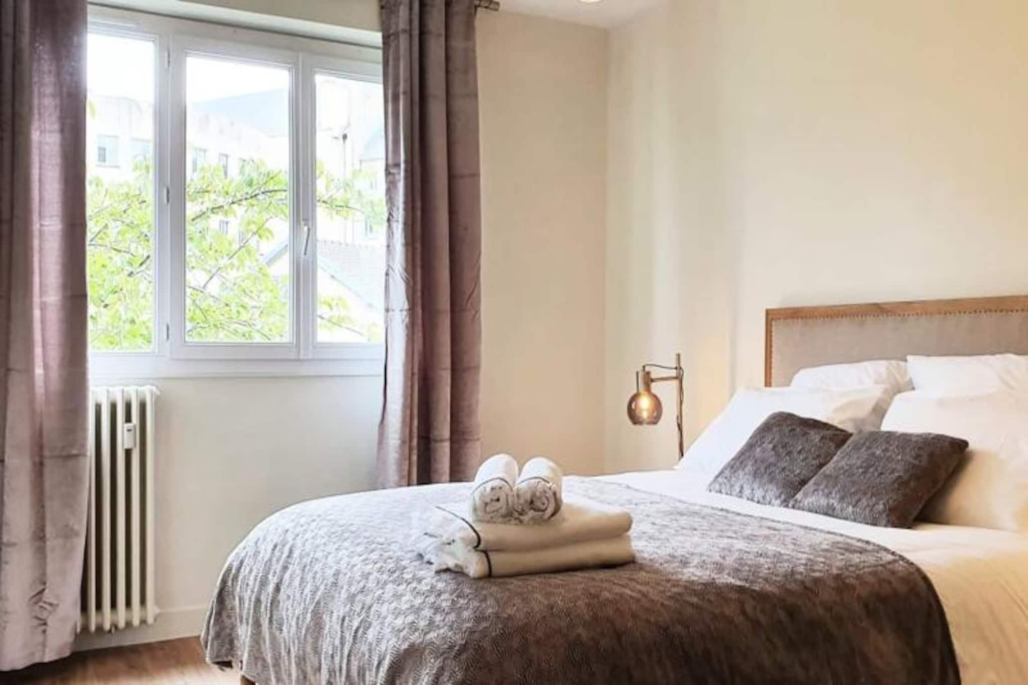I hjertet af Caen, overfor den historiske Banque de France og få skridt fra den pulserende Place Maréchal Foch, tilbyder denne smukt renoverede lejlighed et roligt tilflugtssted midt i den livlige bymidte. Uanset om du er på forretningsrejse, på familieferie eller på tur med venner, kombinerer denne rummelige ejendom på 100 m² moderne komfort med tidløs charme, hvilket gør den til den perfekte base for at udforske Normandiets skatte. Indenfor finder du en lys og indbydende opholdsstue komplet med spiseplads og et Ultra High Definition-tv, ideelt til afslappende aftener. Det fuldt udstyrede køkken med køleskab, ovn, mikrobølgeovn, opvaskemaskine og Nespresso-kaffemaskine inviterer dig til nemt at tilberede lækre måltider. Lejligheden har plads til op til seks gæster fordelt på tre gennemtænkt designede soveværelser: et med en kingsize-seng, et andet med en queensize-seng og et tredje med to udtrækssenge af høj kvalitet, perfekt til familier. Yderligere faciliteter inkluderer et moderne brusebad, et vaskerum med vaskemaskine og tørretumbler samt gratis Wi-Fi. Sengelinned og lagner er inkluderet for din bekvemmelighed, og en babyseng, højstol og babybadekar er tilgængelige efter anmodning. Træd udenfor og fordyb dig i charmen i Caens prestigefyldte præriedistrikt. Gå en tur til gourmetrestauranter, butikker og kulturelle vartegn såsom Château de Caen. Offentlig transport er let tilgængelig, hvilket gør det nemt at udforske længere væk, fra D-dagsstrandene til det maleriske normanniske landskab. Med en personlig velkomst, en digital guide til lokale anbefalinger og opmærksom service under hele dit ophold sikrer denne lejlighed en problemfri og mindeværdig oplevelse. Uanset om du er her for at nyde historien, nyde køkkenet eller blot slappe af, tilbyder denne ejendom den perfekte blanding af byliv og ro.