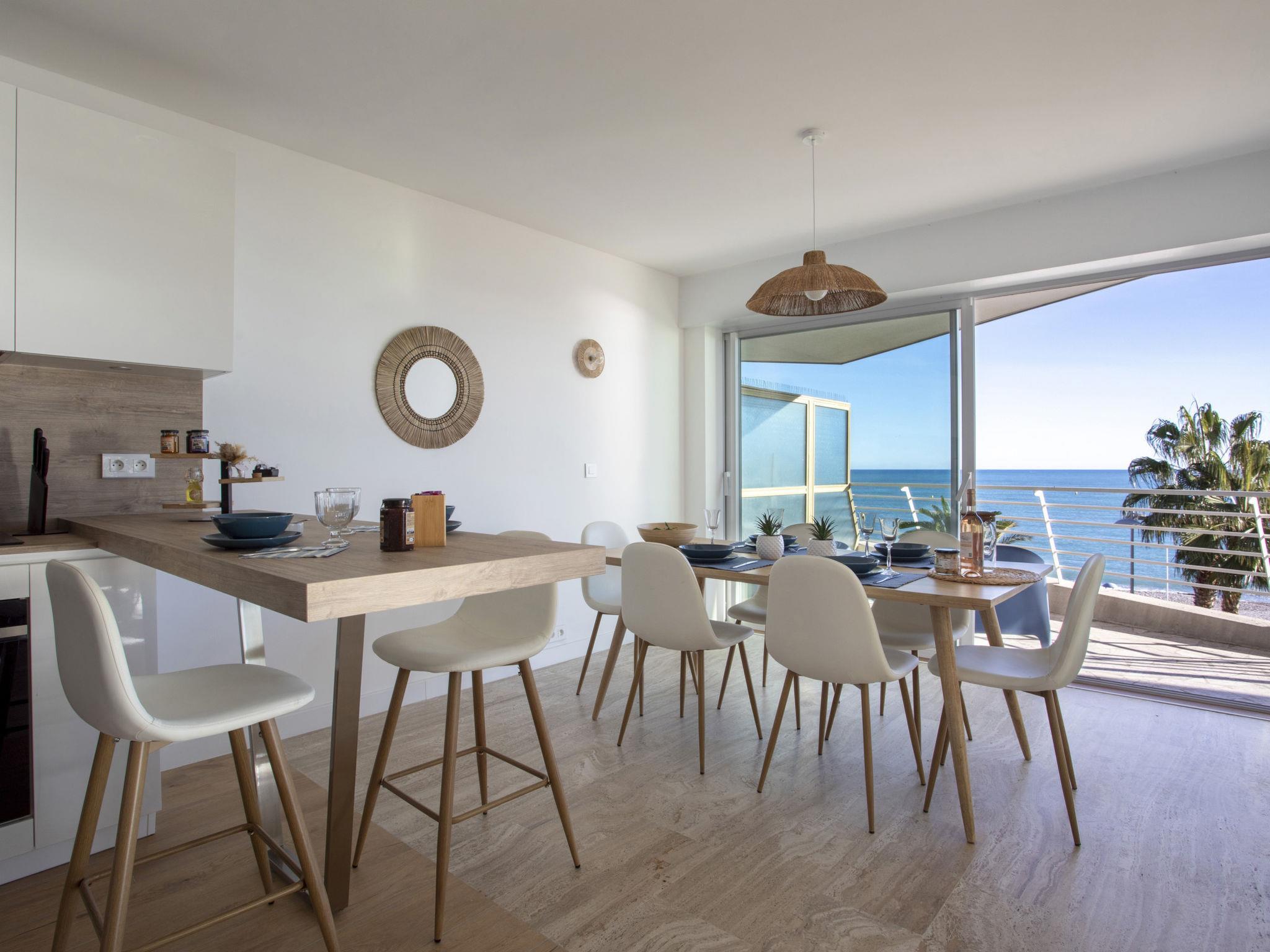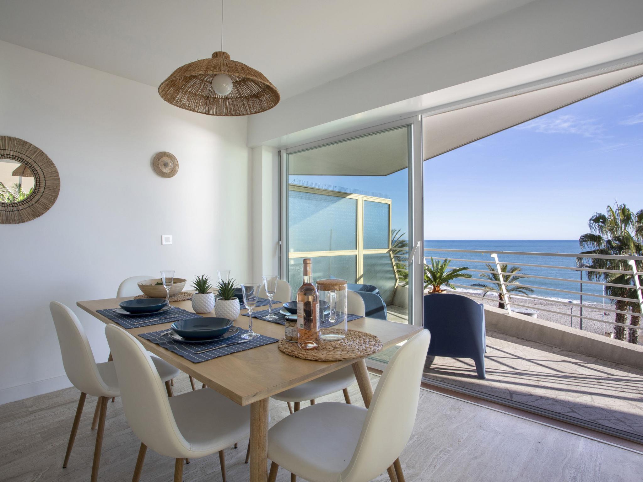 3-room apartment 80 m2 on 3rd floor, south-west facing position. Comfortable and modern furnishings: large living/dining room with TV (flat screen). Exit to the terrace. 1 large room with 1 french bed (1 x 140 cm, length 190 cm). Exit to the terrace. 1 large room with 1 french bed (1 x 160 cm, length 200 cm). Exit to the terrace. Open kitchen (oven, dishwasher, 3 induction hot plates, toaster, kettle, microwave, electric coffee machine). Exit to the terrace. Shower/WC. Heating, air-conditioning. Large balcony 10 m2, north facing position and west facing position, large terrace 15 m2, south facing position and west facing position. Terrace furniture. Very beautiful panoramic view of the sea. Facilities: iron, hair dryer. Internet (WiFi, free). Please note: non-smoking house. Smoke alarm. Offer by a private individual according to Art. 155, IV of CGI. 06027034453DP