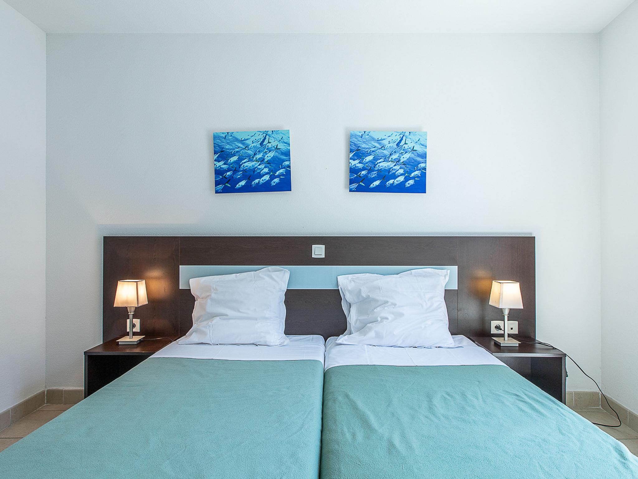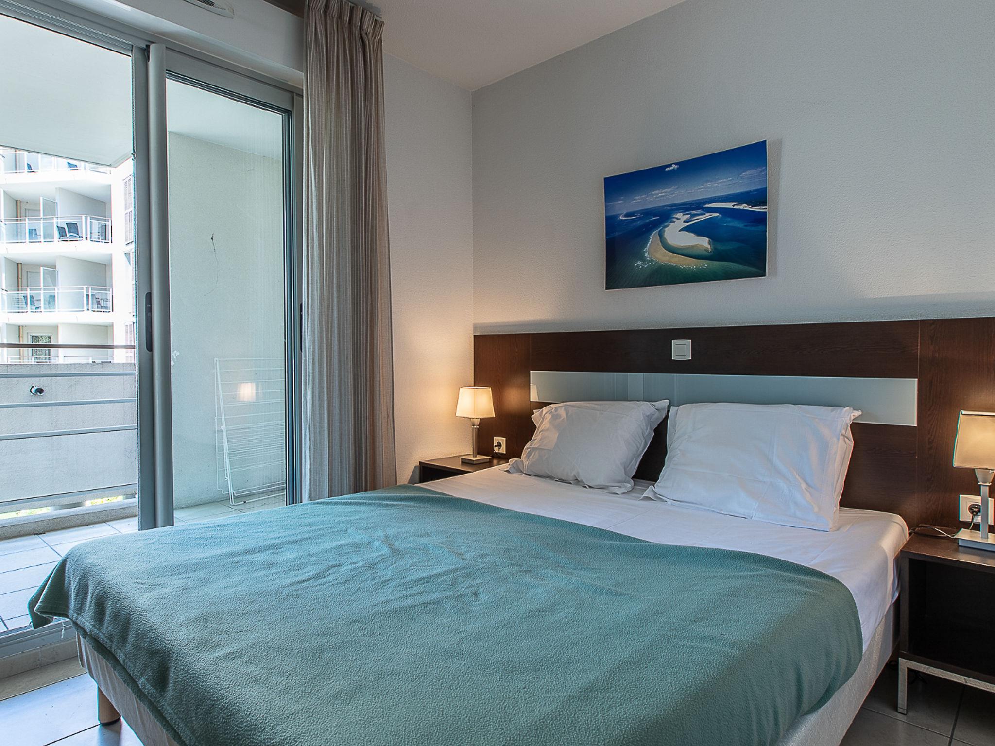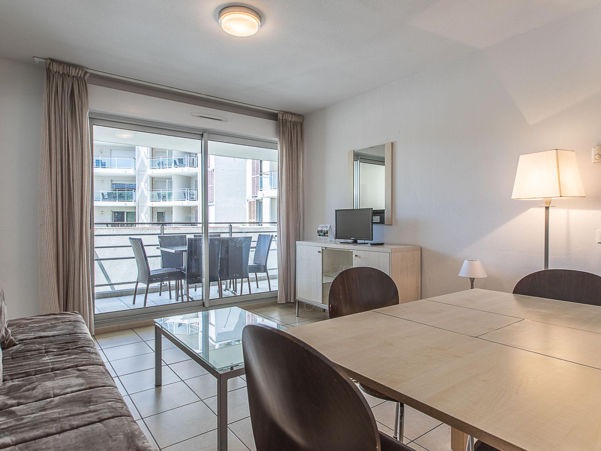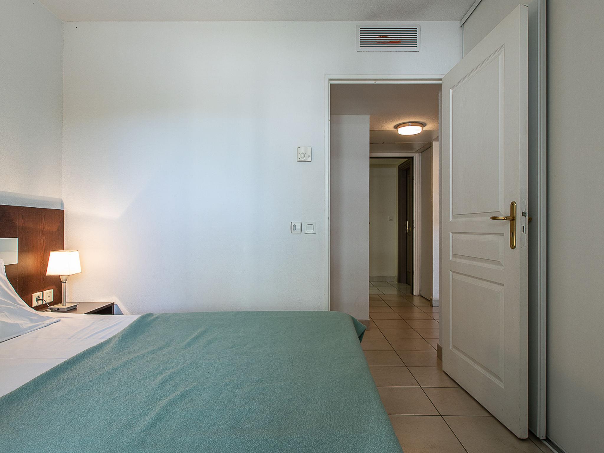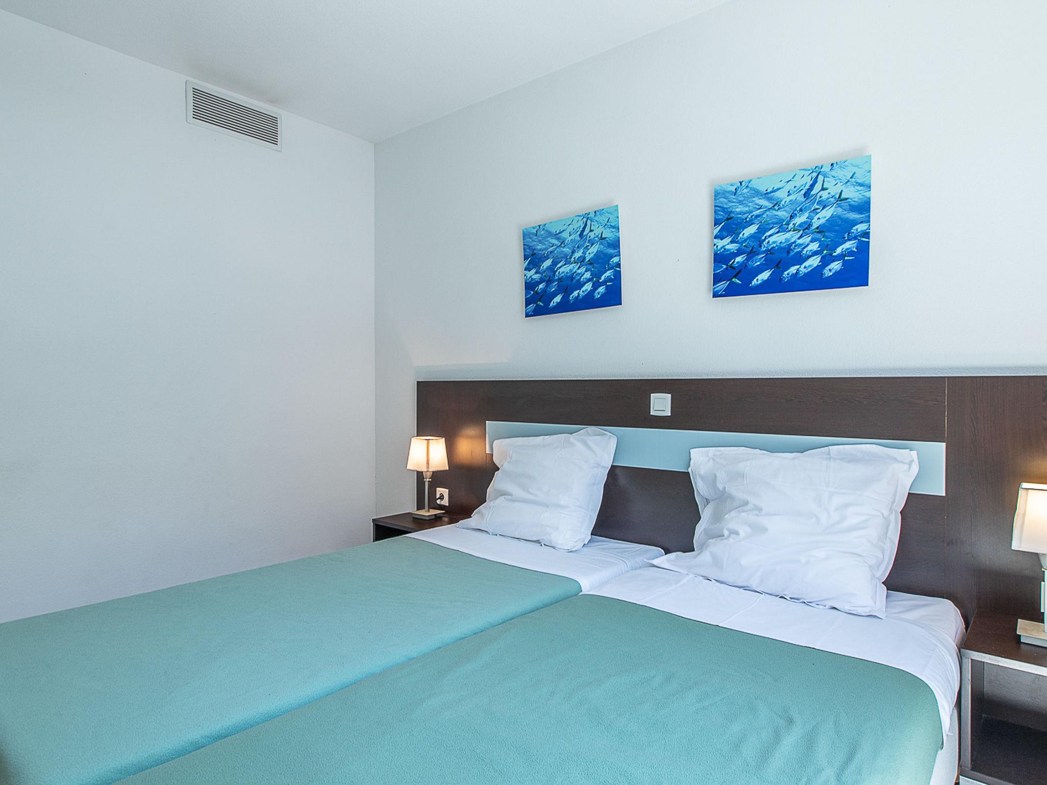 "Le Crystal", 3-room apartment 45 m2. Bright, modern furnishings: living/sleeping room with 1 sofabed, 1 pull-out bed, dining table and TV. 1 room with 1 french bed (160 cm). 1 room with 2 beds. Open kitchen (dishwasher, 4 ceramic glass hob hotplates, kettle, electric coffee machine, combination microwave). Bath/WC. Heating, air-conditioning. Balcony. Balcony furniture. Facilities: iron. Internet (WiFi, free). Please note: maximum 1 small pet/ dog allowed. Smoke alarm, fire extinguisher.