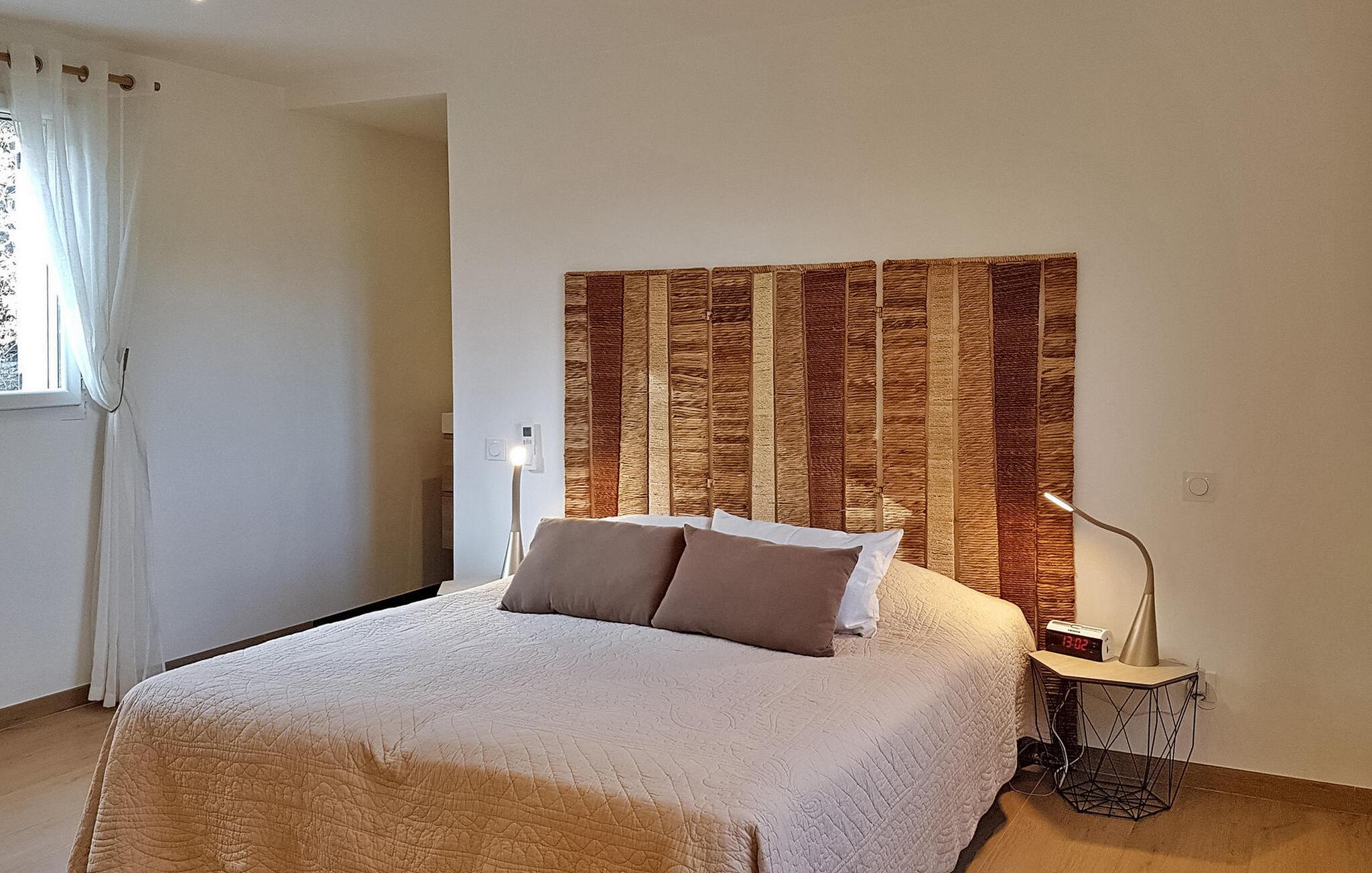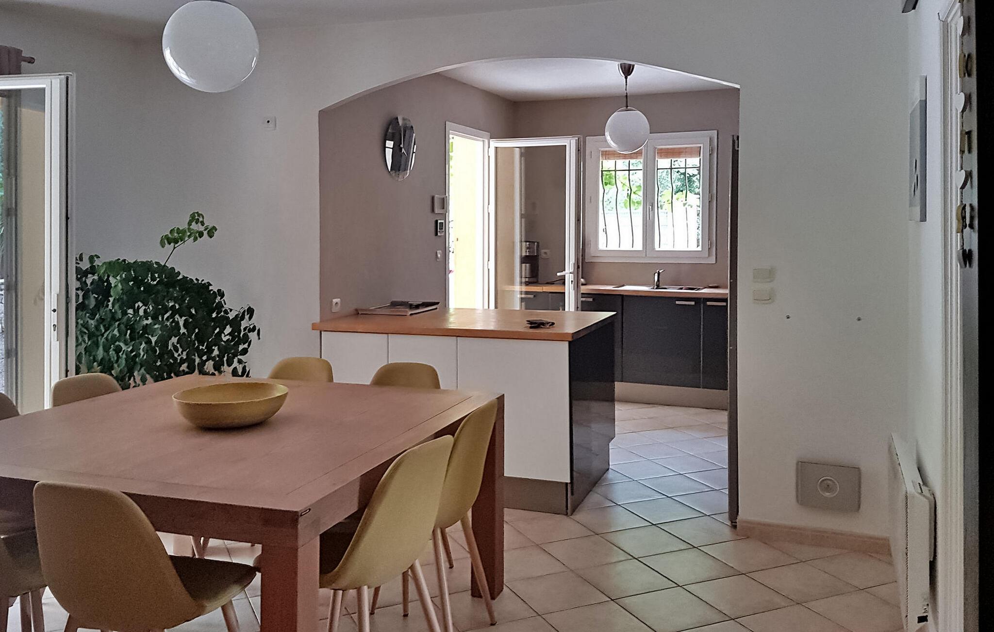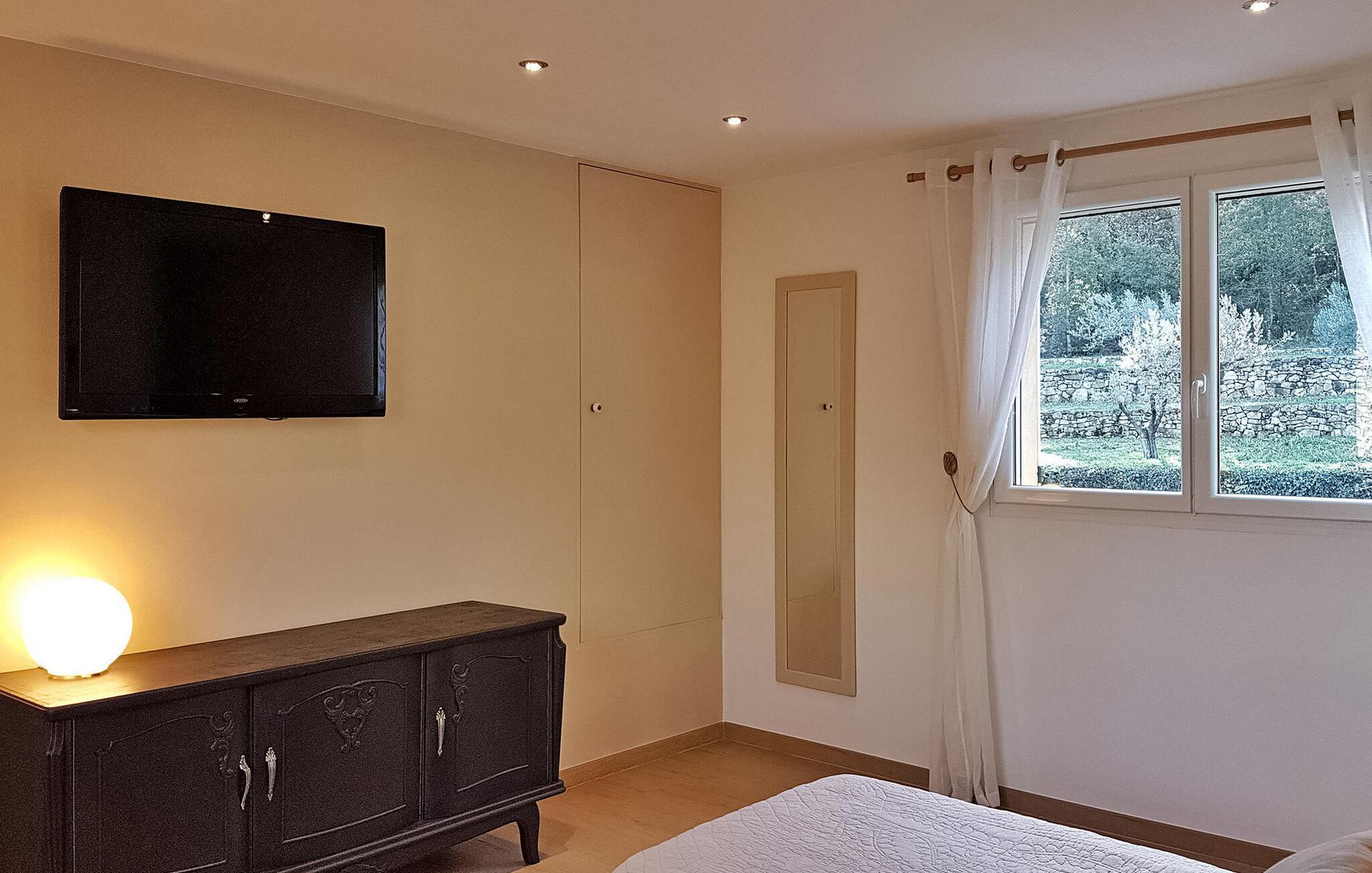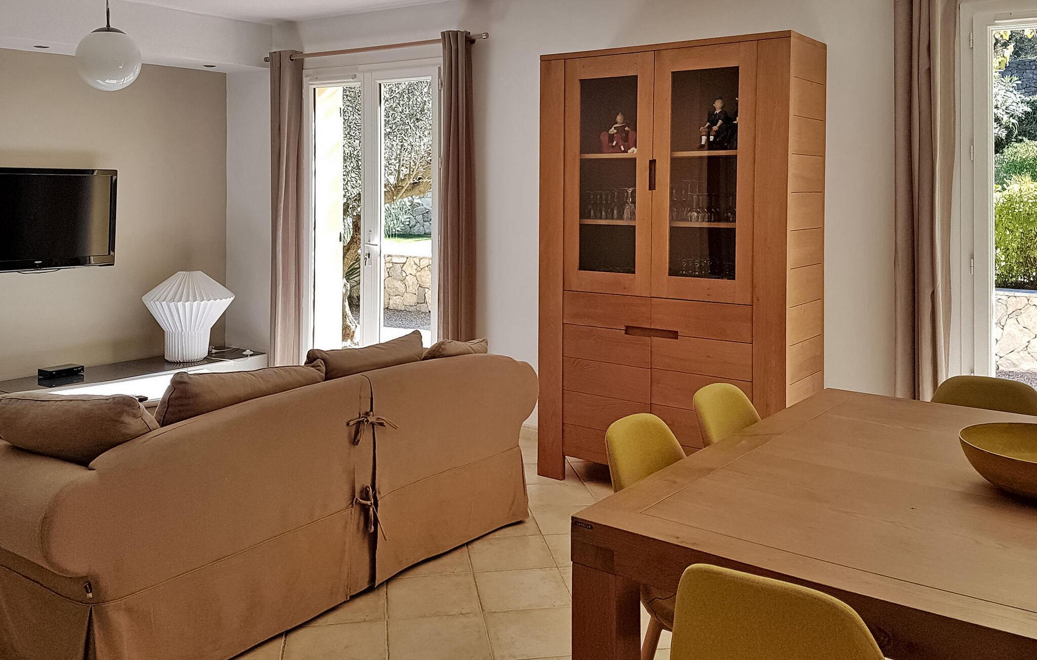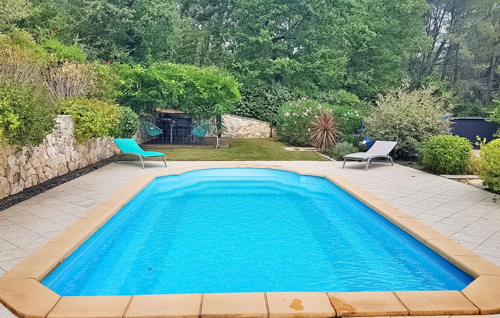 Slap af i en fredfyldt ferievilla beliggende i Callas, tæt på Draguignan i den naturskønne Var-region. Dette indbydende tilflugtssted ligger lige uden for landsbyen i et fredeligt beboelsesområde, med en fængslende udsigt over de omkringliggende Var-bakker. Denne hyggelige villa har en stueetage med en komfortabel stue/spisestue med brændeovn og et åbent køkken udstyret med moderne bekvemmeligheder. Franske vinduer åbner ud til en terrasse og terrasse, ideel til afslapning og udendørs spisning. På dette niveau giver tre værelser med aircondition komfort og ro. Den øverste etage kan prale af et rummeligt dobbeltværelse med aircondition og eget badeværelse - et fredfyldt tilflugtssted, der emmer af komfort og afslapning. Træd udenfor for at udforske det vidtstrakte land prydet med oliventræer og blomster. Nyd de udendørs terrasser, forkæl dig selv med den private pool (6,8 mx 4 m), eller dase på liggestolene for ultimativ afslapning. Bemærk venligst, at en del af jorden er delvist indhegnet, med en uindhegnet del med udsigt over naboens have, hjemsted for en lille hund. Villaen ligger i Callas i Var. Den nærmeste strand er i Fréjus (40 km), Cannes er 73 km, Saint Tropez er 58 km.