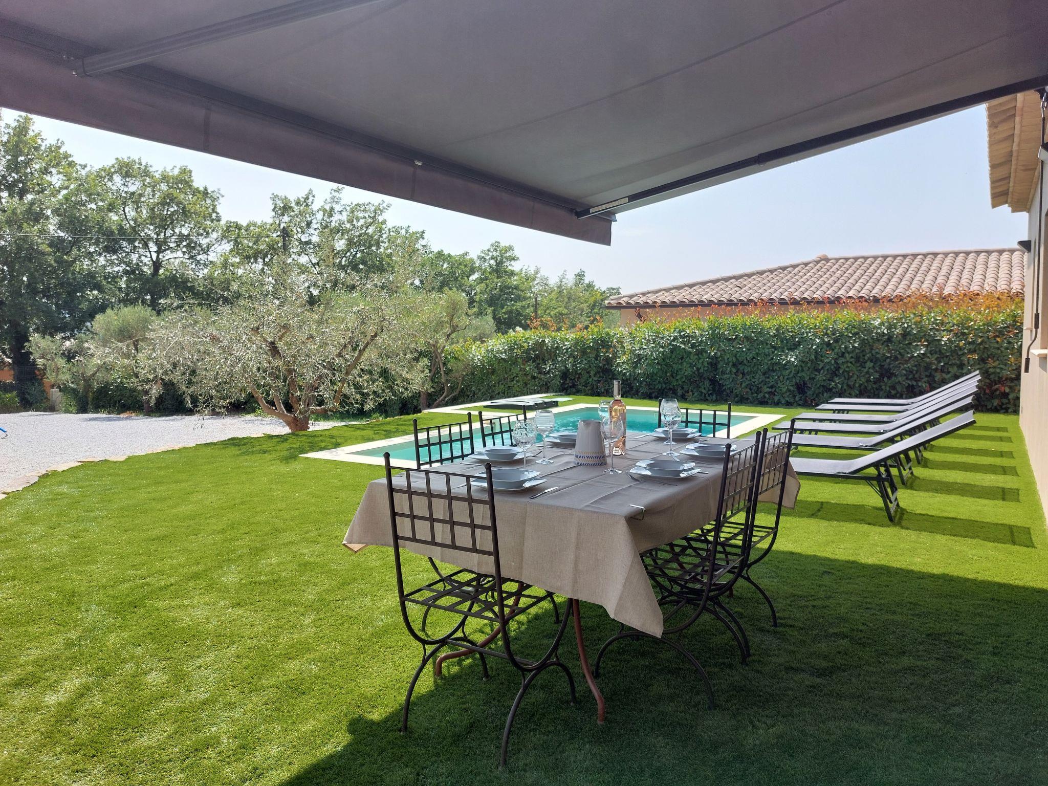 3 km from the centre of Callas, 12 km from the centre of Draguignan, 32 km from the centre of Fréjus, in the residential district, 32 km from the sea, 26 km from the lake. Private: property 800 m2 (fenced), swimming pool angular (6 x 3 m, depth 145 cm, seasonal availability: 01.Apr. - 30.Oct.) with alarm system. Parking (for 2 cars) on the premises. Grocery 3 km, supermarket 1400 km, restaurant 3 km, bar 3 km, bakery 3 km, café 3 km, bus stop 1.2 km, railway station "Les Arcs Draguignan" 23 km, sandy beach "Fréjus Plage" 32 km. Golf course (18 hole) 15 km, riding stable 3.2 km. Nearby attractions: Gorges du Verdon, Grottes de Villecroze, La cascade de Sillans, Cotignac, Tourtour, Abbaye du Thoronet. Well-known lakes can easily be reached: Lac de Sainte Croix 48 km, Lac de Saint Cassien 26 km. Hiking paths: Gorges de Pennafort, Gorges du Verdon, Gorges du Blavet. The owner does not accept any youth groups.