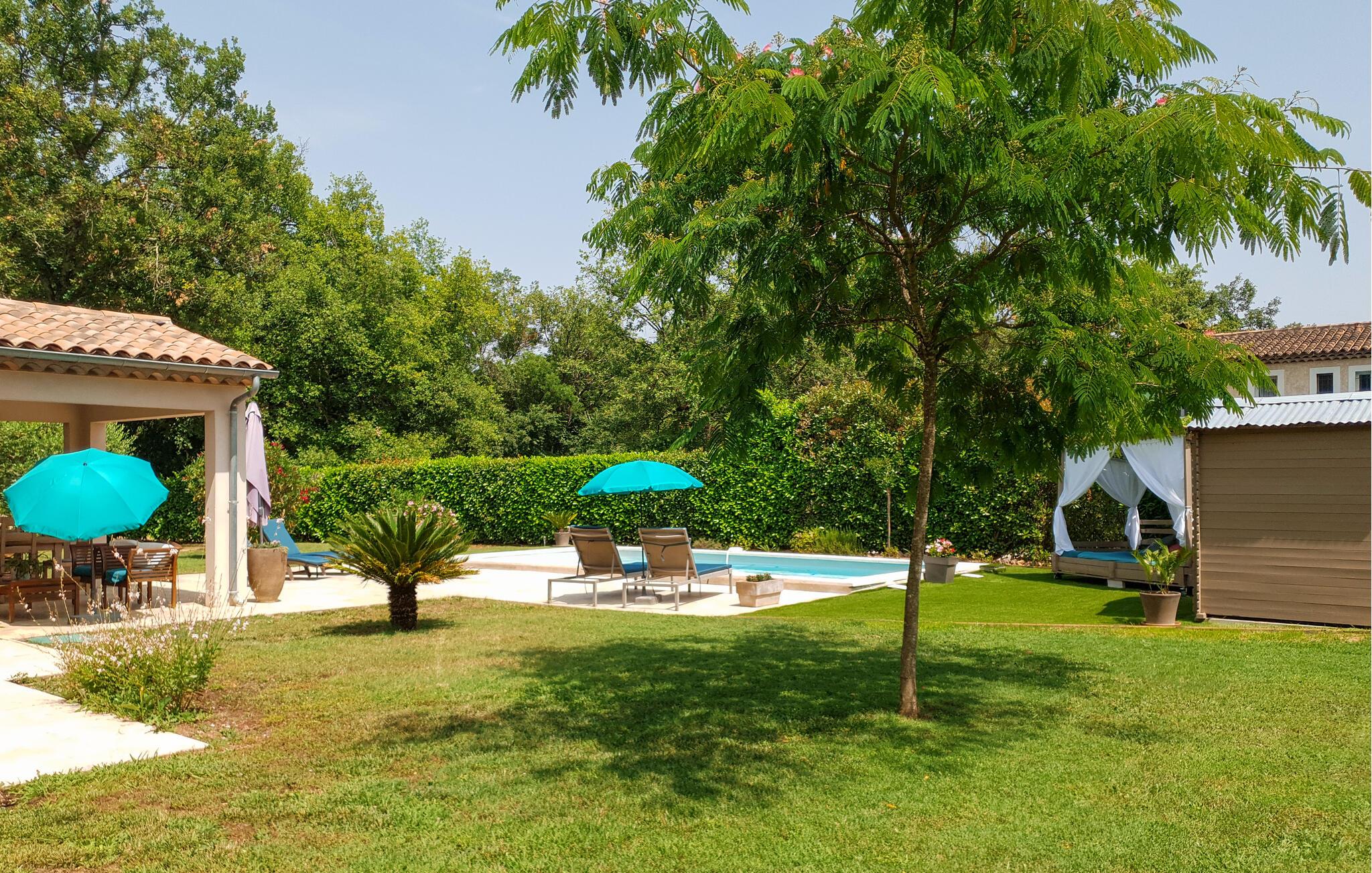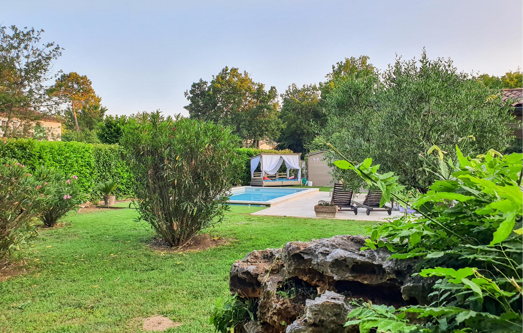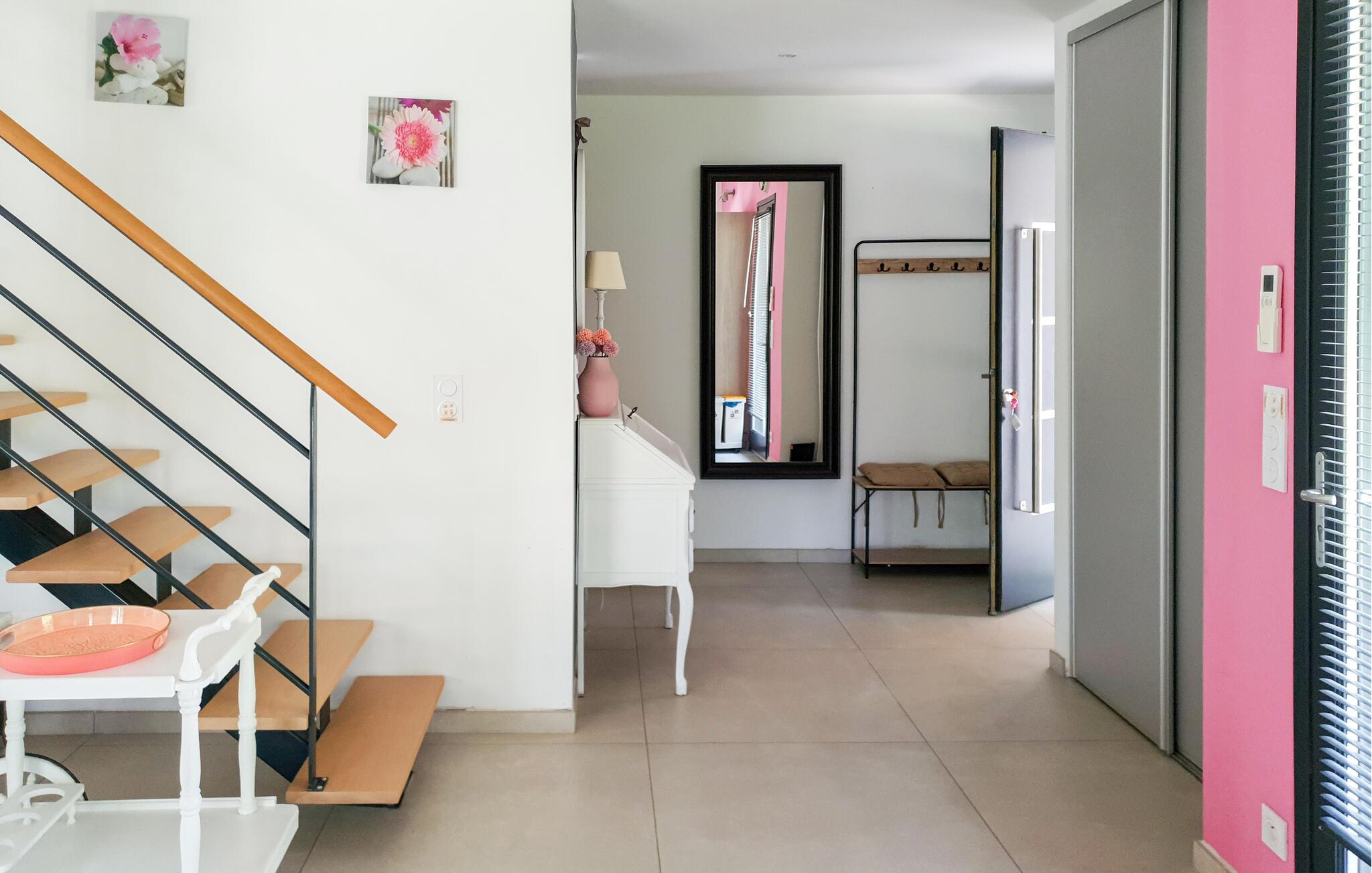 Vidunderligt feriehus med egen pool. Huset ligger i Callian og og dermed er det kun beliggende 33 km fra Cannes og byens smukke strande. Det er moderne indrettet og dens planløsning gør det muligt for store familier og vennegrupper at tilbring en dejlig ferie her. Her kan I have en rolig base for jeres ferie. I kan slappe af i den grønne have og tage en forfriskende dukkert i ny og næ. Her er selvfølgelig også en grill hvor I kan tilberede jeres måltider i det fri, ligesom hunden har god plads til at lege på den store grund. Callian er I sig selv en hyggelig udflugt værd, med de små gyder og stræder, men I bør også tage på nogle ture til Haute Siagnes kløfter og naturseværdigheder. I Fayence kan I opleve byens Saracenske port og en fantastisk panoramaudsigt til dalen. Ved Lac de Saint-Cassien venter der jer et skønt udbud af vandsportsdiscipliner, men det er også et skønt sted at afholde picknick. I cannes er der ikke kun den smukke strand, men også den elegante boulevard de la Croisette og den gamle bymidte Le Suquet. Langs kysten er der flere skønne strande ved f.eks. Saint-Raphaël. Hele året er det et skønt sted at holde ferie.