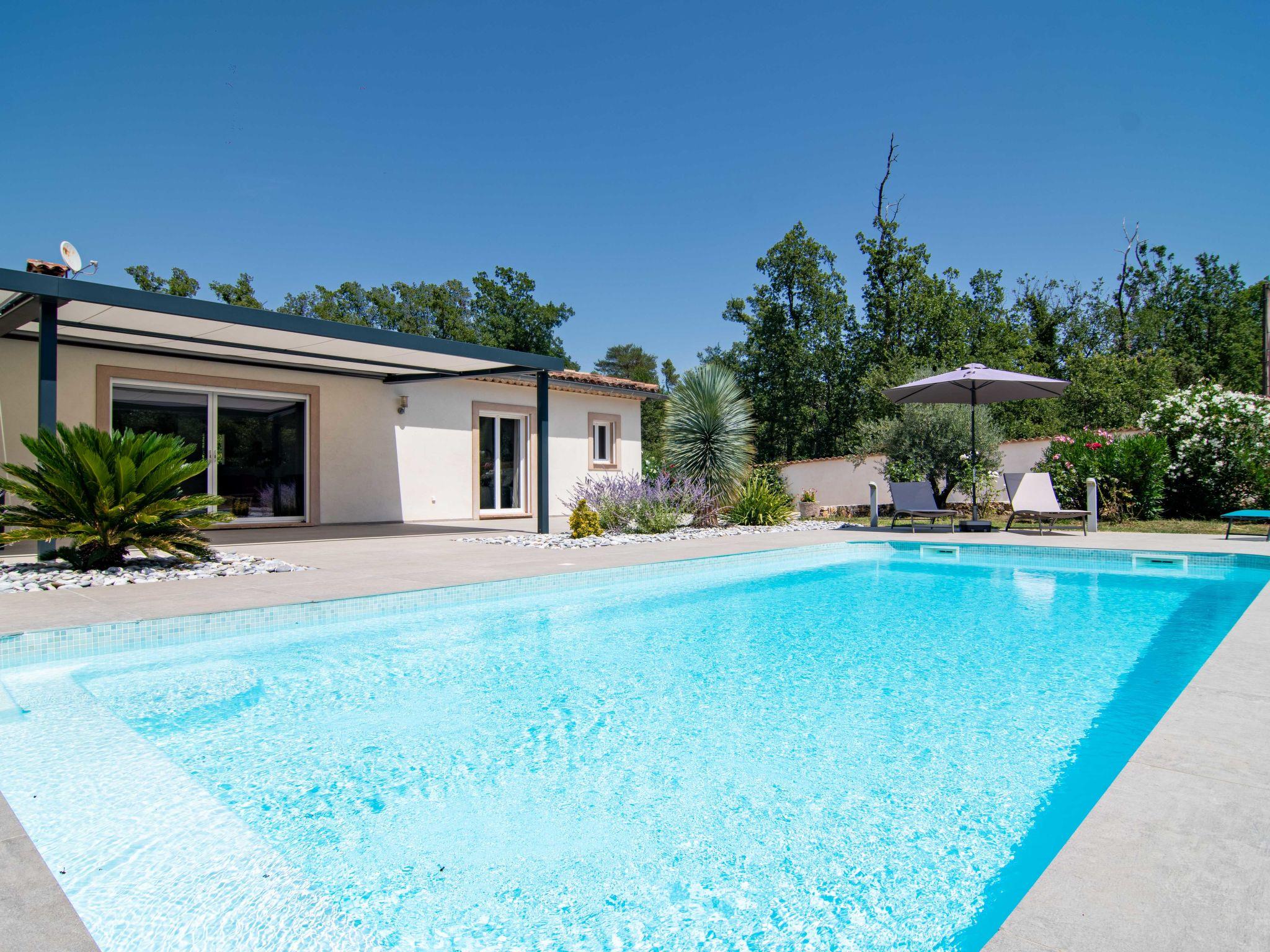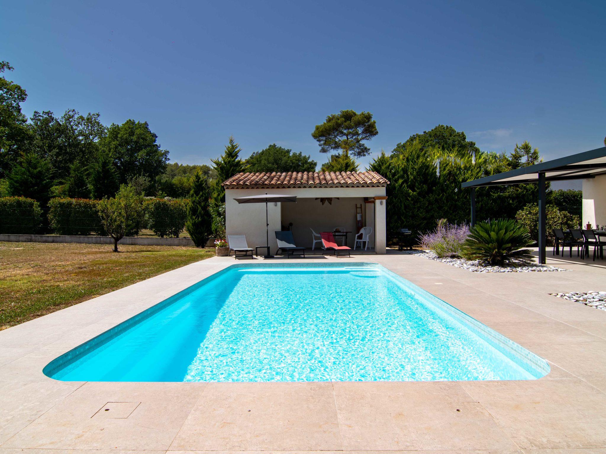 Beautiful single-family house "Villa D'Allongue". 3 km from the centre of Callian, 5.4 km from the centre of Fayence, 36 km from the centre of Cannes, 7 km from the lake. Private: property 2'500 m2 (fenced), well-kept garden, swimming pool angular (9 x 10 m, depth 90 - 200 cm, seasonal availability: 01.Jan. - 31.Dec.) with alarm system. Boules. Bumpy motor access (300 m via unmade road). Roofed, parking (for 2 cars). Supermarket 1.4 km, restaurant 3 km, café 3 km, bus stop 800 m, railway station "Cannes" 39 km, sandy beach "La Bocca" 31 km, lake Saint Cassien 7 km. Golf course (18 hole) 3 km. Nearby attractions: Aérodrome de Fayence 6 km. Well-known lakes can easily be reached: Saint Cassien 7.5 km. Please note: car recommended. The owner does not accept any youth groups. Part of the house is closed and unoccupied.