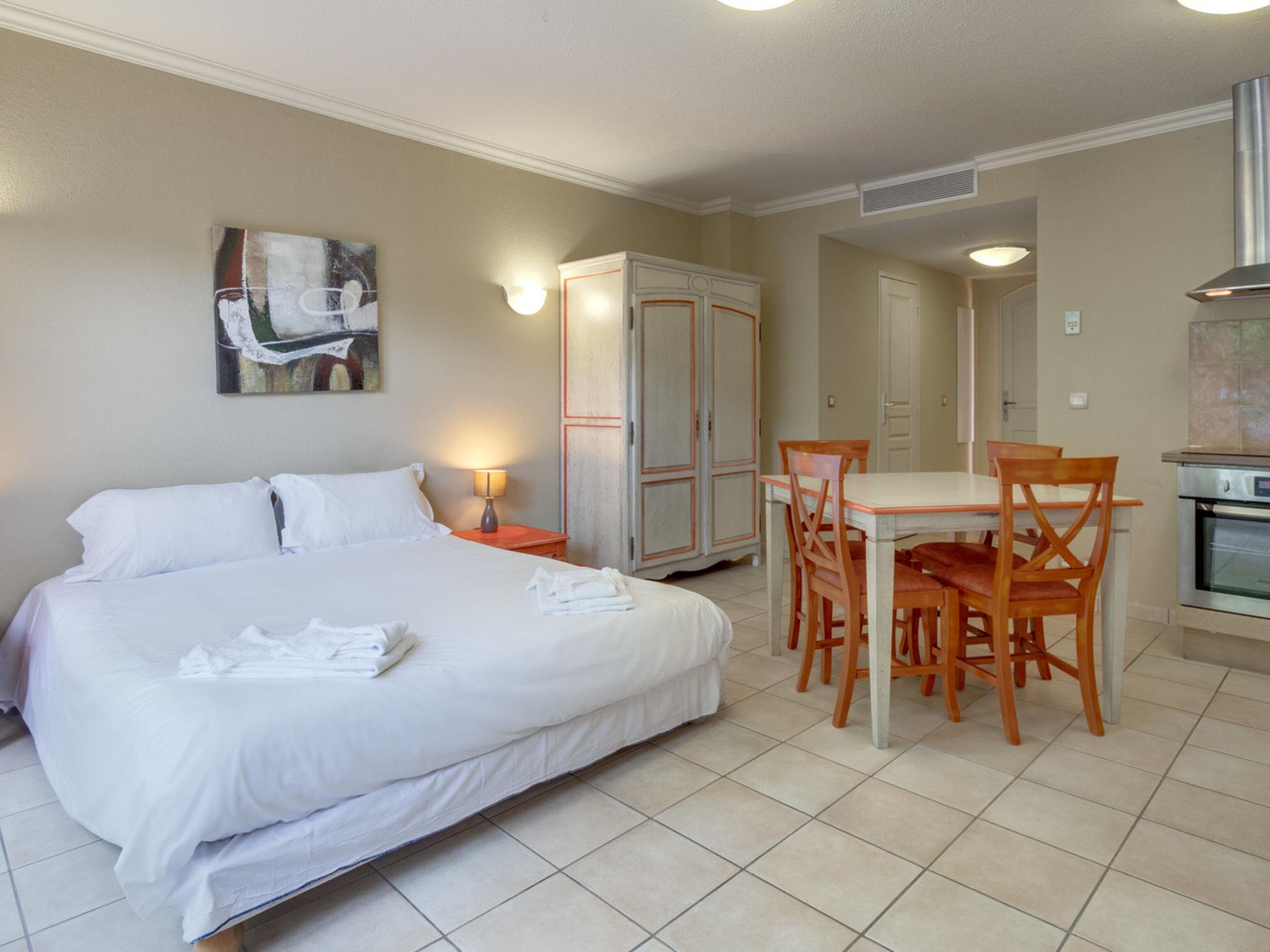 "Domaine de Camiole", 1-room apartment 20 m2. Tasteful furnishings: living/sleeping room with 2 sleeping facilities, dining table and satellite TV. Open kitchen (dishwasher, 2 ceramic glass hob hotplates, electric coffee machine, combination microwave). Bath or shower/WC. Heating, air-conditioning. Balcony. Balcony furniture. Facilities: Internet (WiFi, free). Please note: non-smokers only. Maximum 1 pet/ dog allowed. Smoke alarm, fire extinguisher. The property is one of a type of property or apartment.
