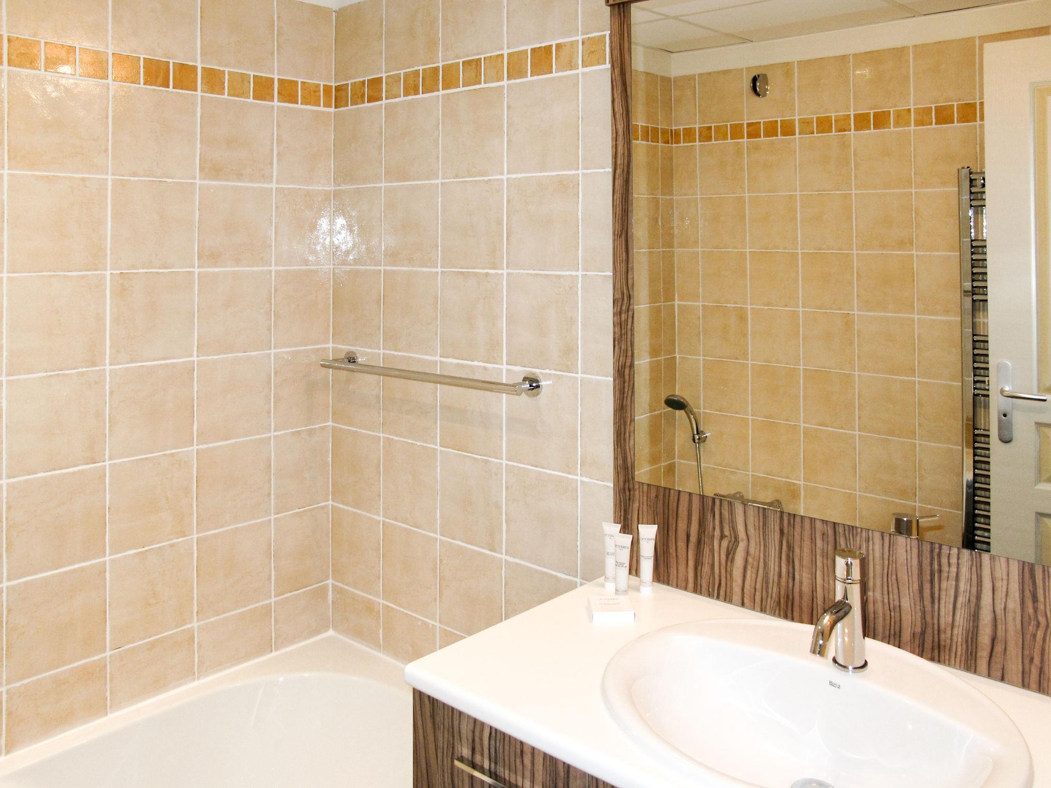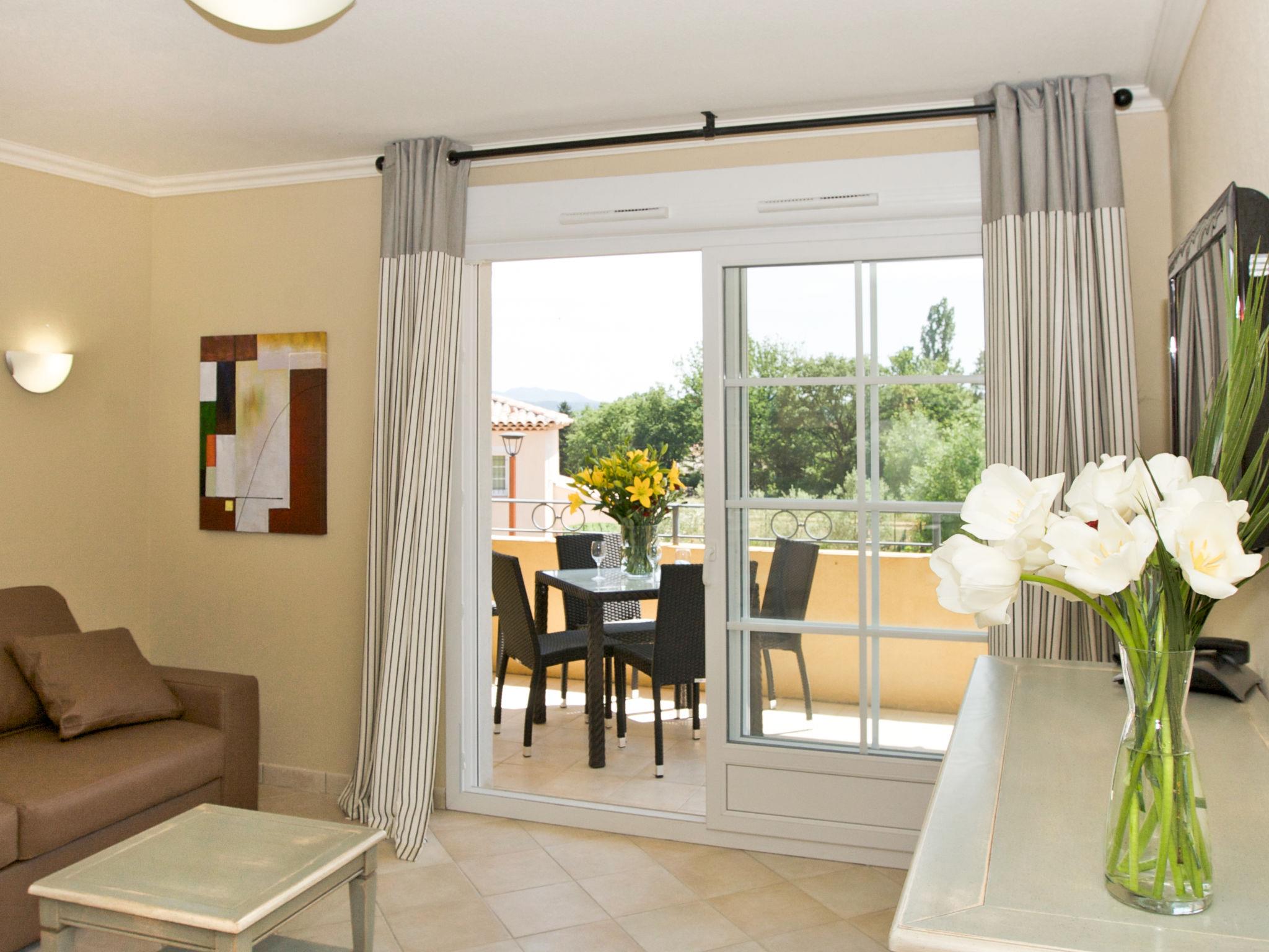 "Domaine de Camiole", 3-room apartment 46 m2. Tasteful furnishings: living/sleeping room with 1 double sofabed, dining table and satellite TV. 1 room with 1 french bed. 1 room with 2 sleeping facilities. Open kitchen (oven, dishwasher, 4 ceramic glass hob hotplates, microwave, electric coffee machine). Sep. WC, bath or shower. Heating, air-conditioning. Balcony. Balcony furniture. Facilities: Internet (WiFi, free). Please note: non-smokers only. Maximum 1 pet/ dog allowed. Smoke alarm, fire extinguisher.