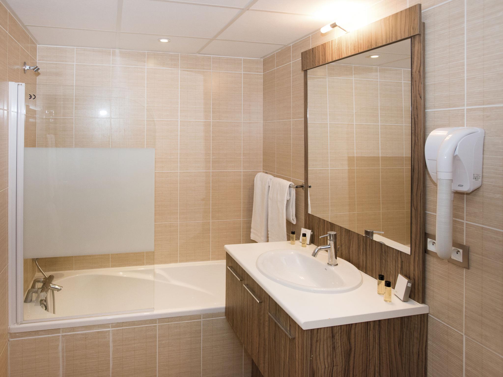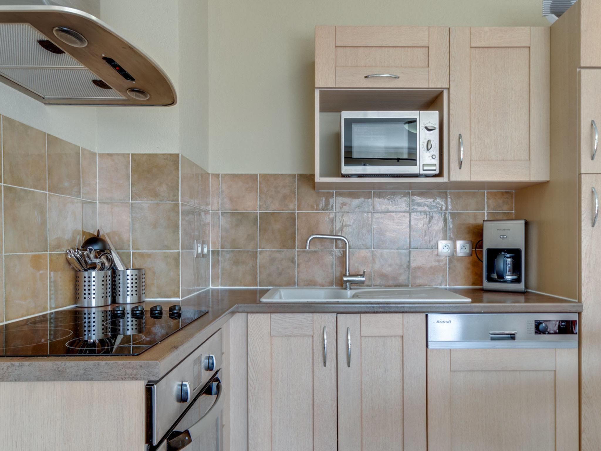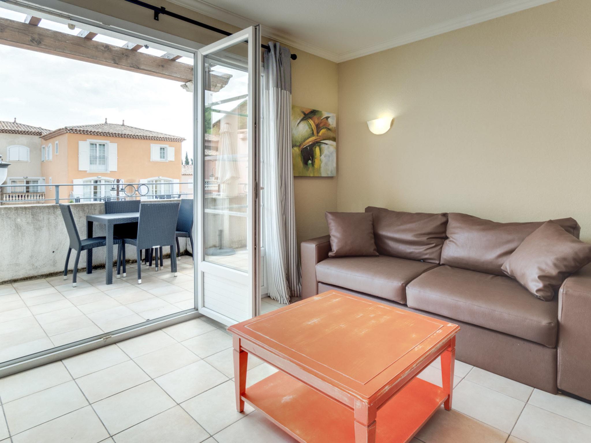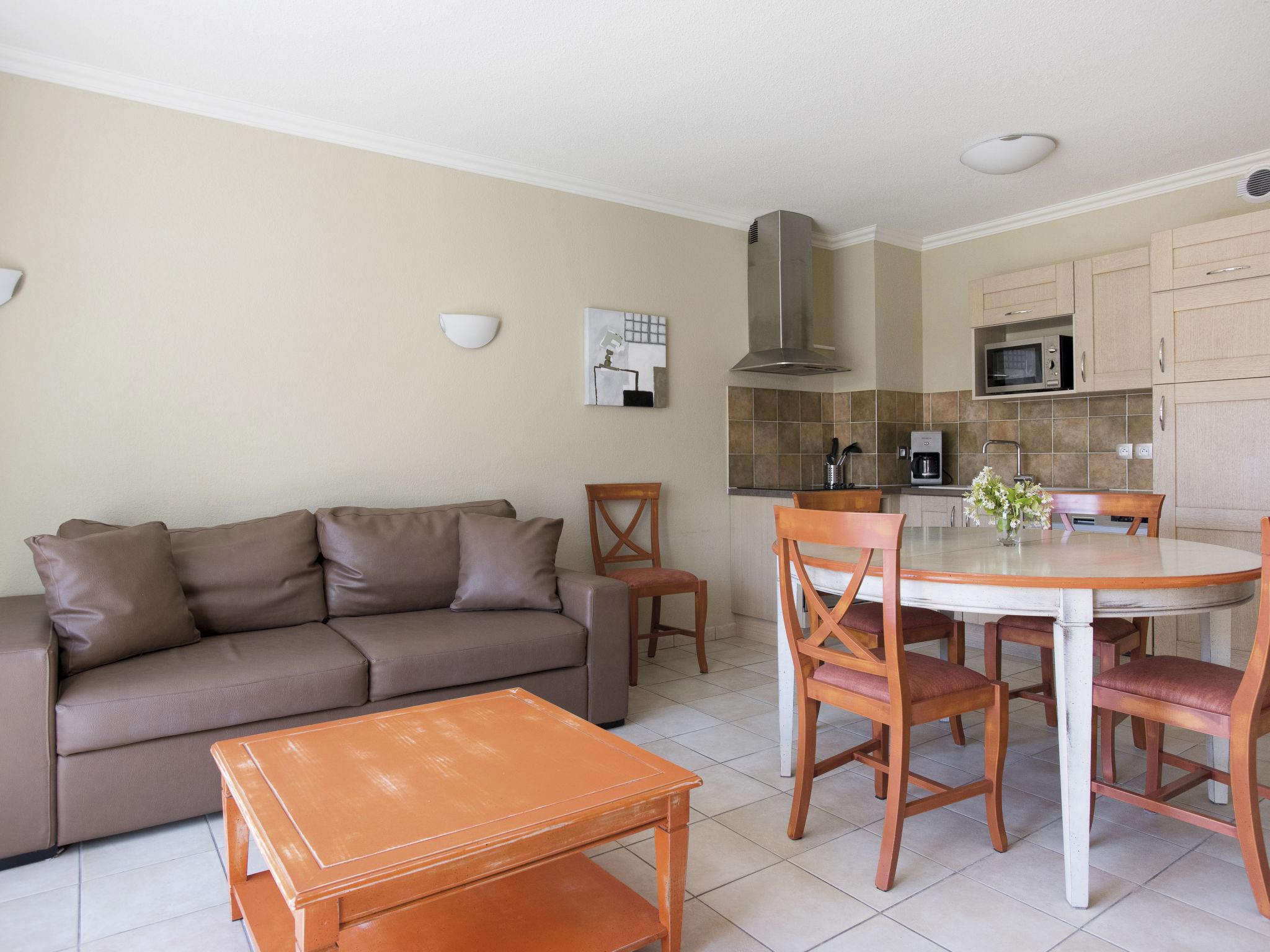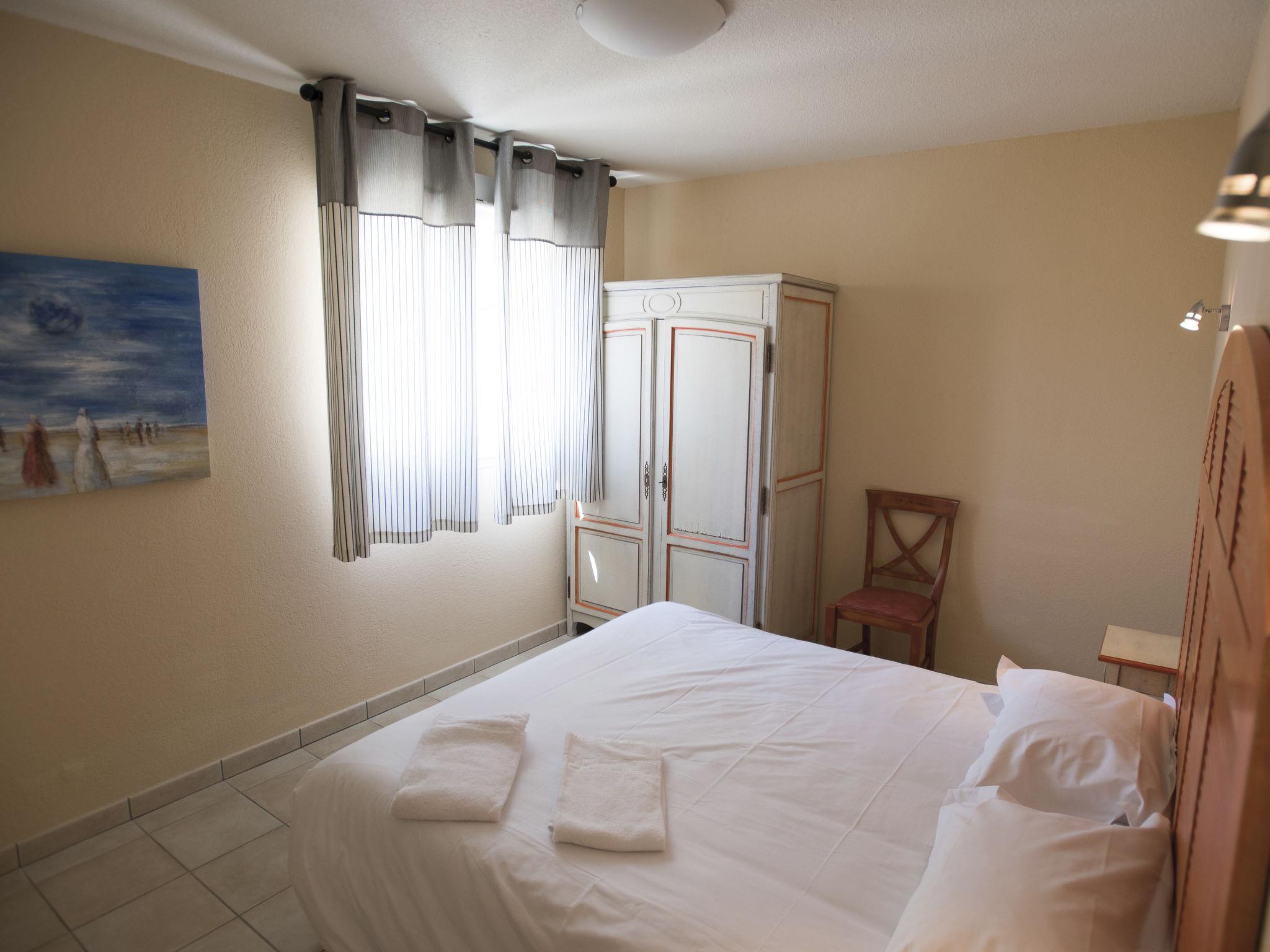 "Domaine de Camiole", 4-room apartment 60 to 66 m2. Tasteful furnishings: living/sleeping room with 1 double sofabed, dining table and satellite TV. 1 room with 1 french bed. Exit to the balcony. 1 room with 1 french bed. 1 room with 1 x 2 bunk beds. Exit to the balcony. Open kitchen (dishwasher, 4 ceramic glass hob hotplates, microwave, electric coffee machine). Sep. WC, bath or shower. Heating, air-conditioning. Balcony. Balcony furniture. Facilities: Internet (WiFi, free). Please note: non-smokers only. Maximum 1 pet/ dog allowed. Smoke alarm, fire extinguisher. The property is one of a type of property or apartment.
